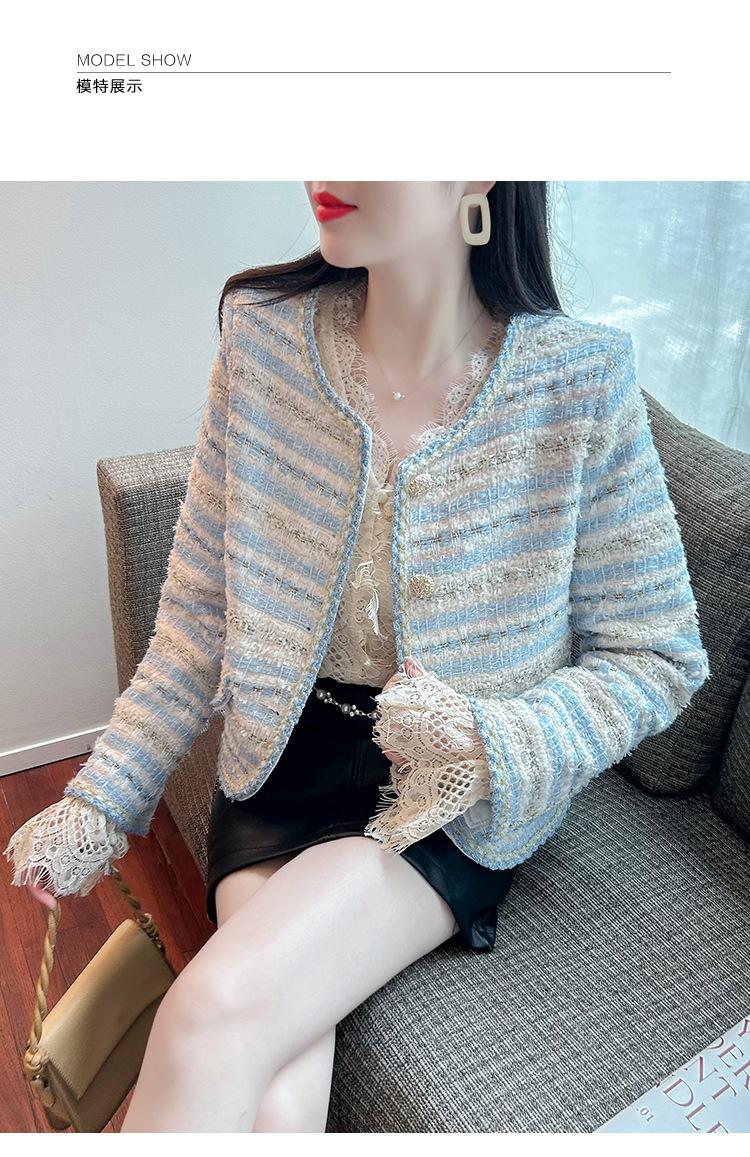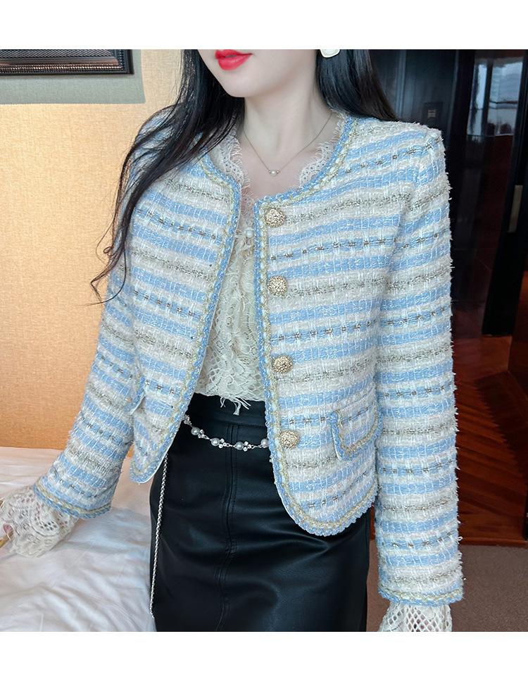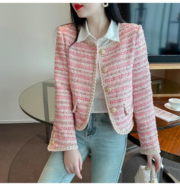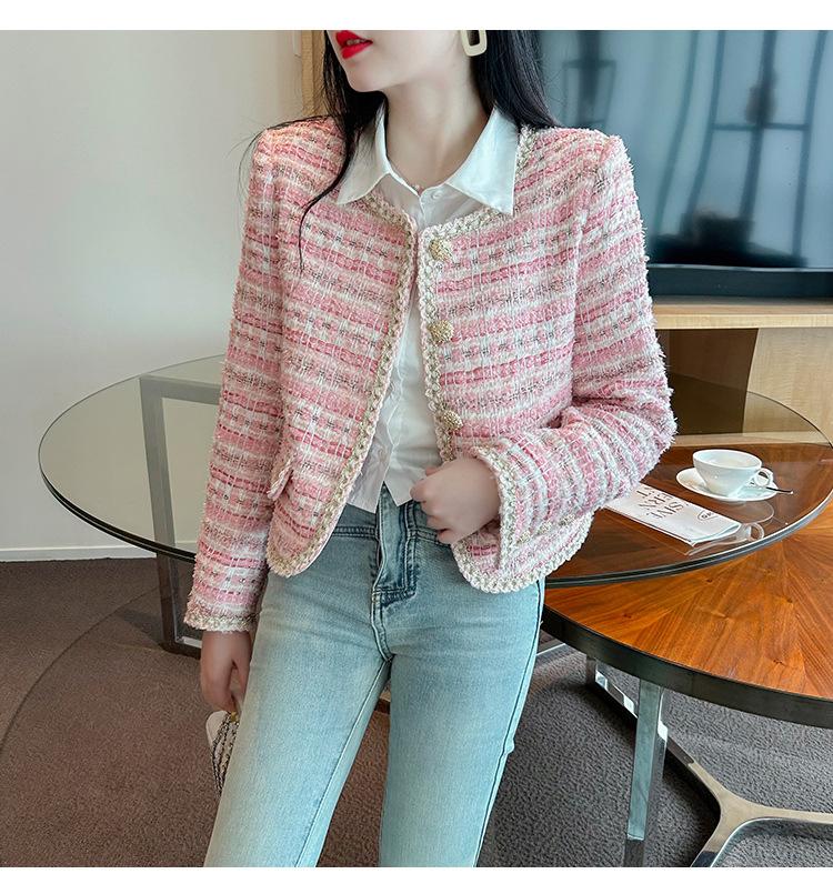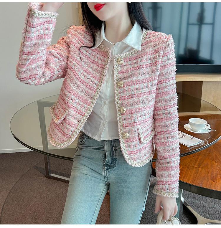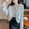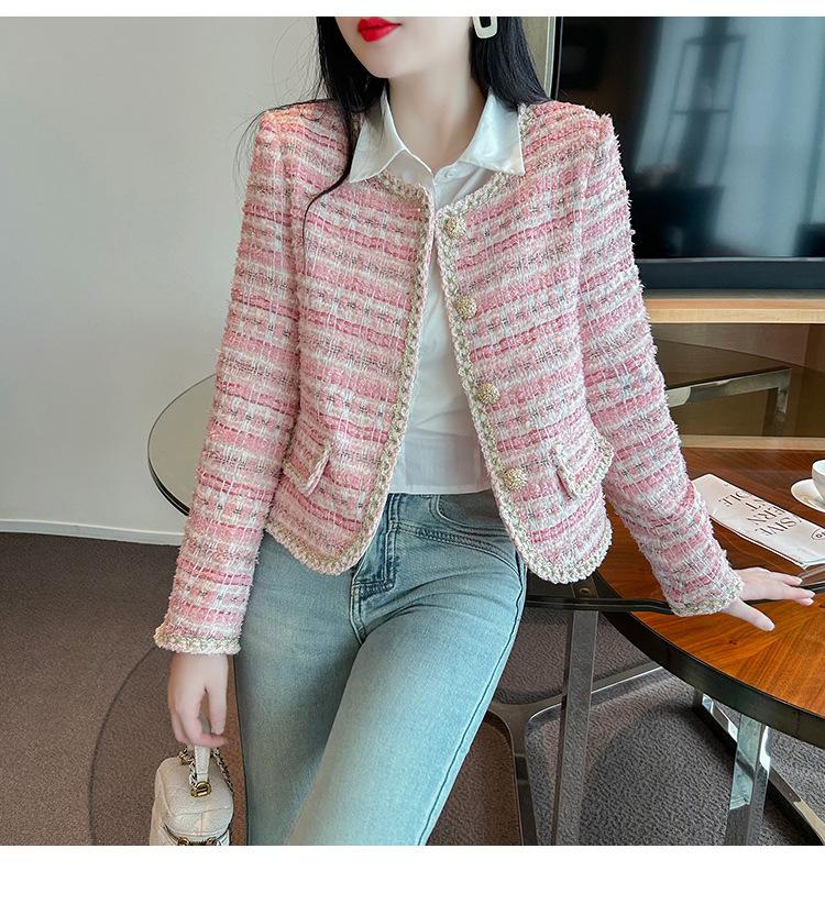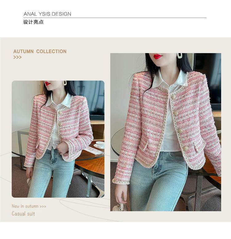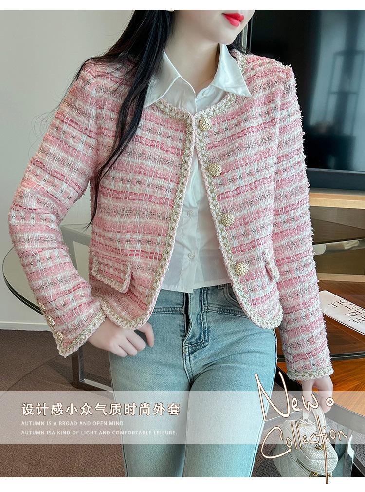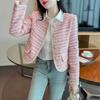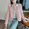 Casaco curto elegante francês com fragrância pequena para mulheres, outono 2024, novo estilo, estilo estrangeiro, redutor de idade, pequeno, cardigan