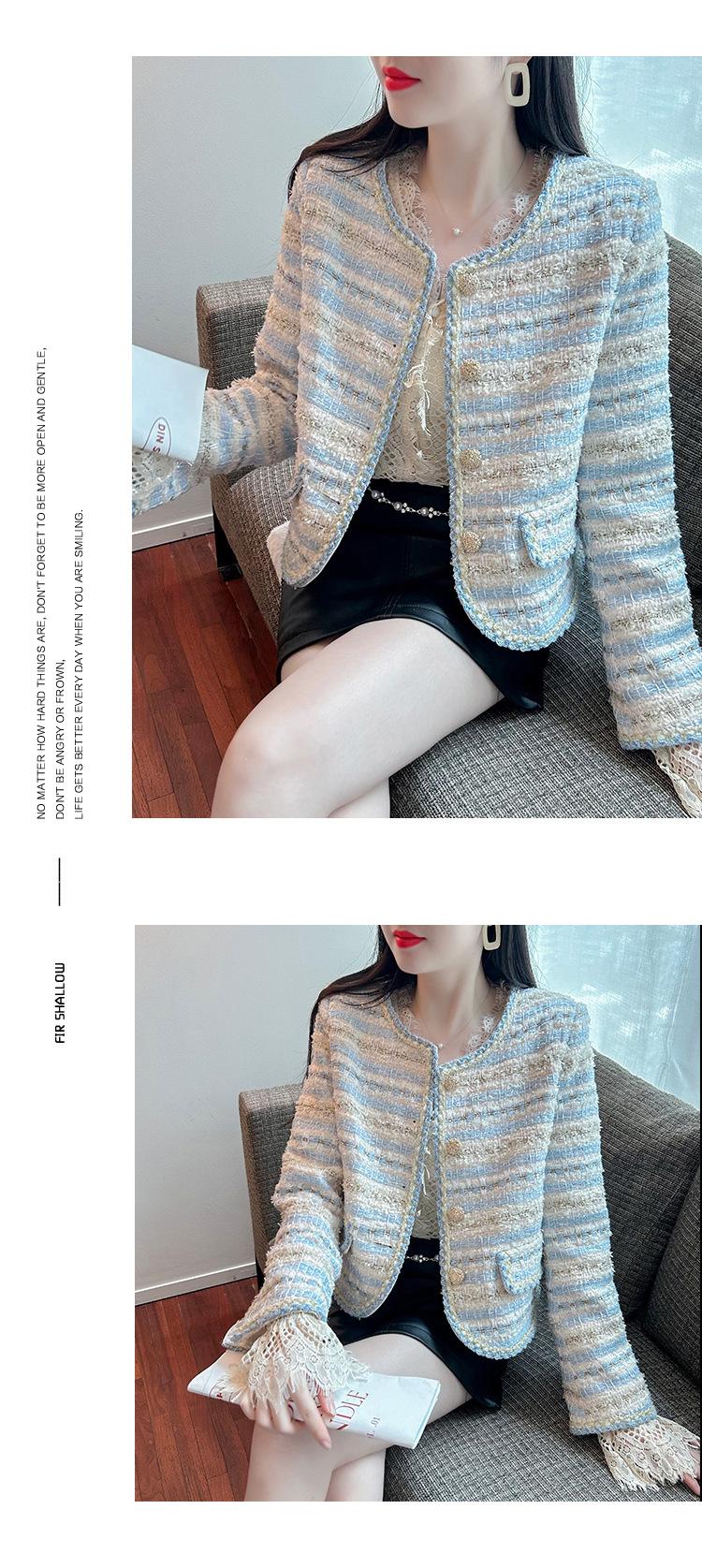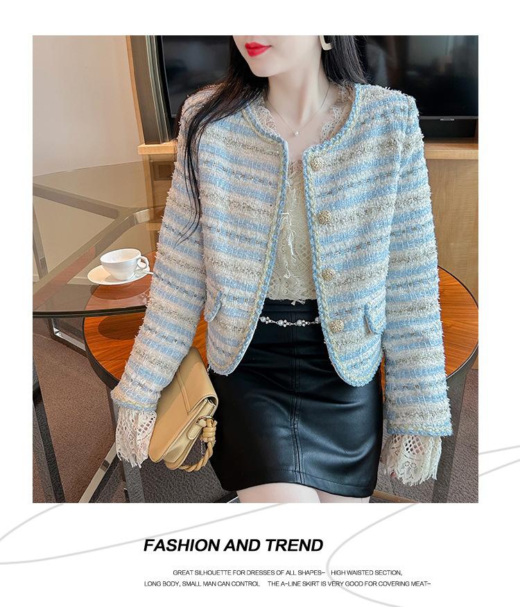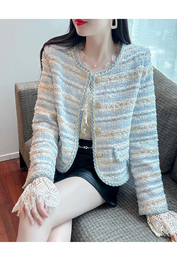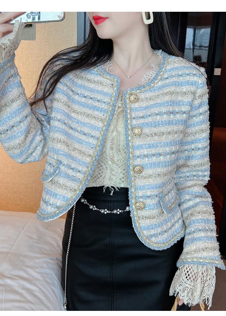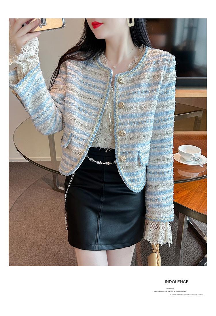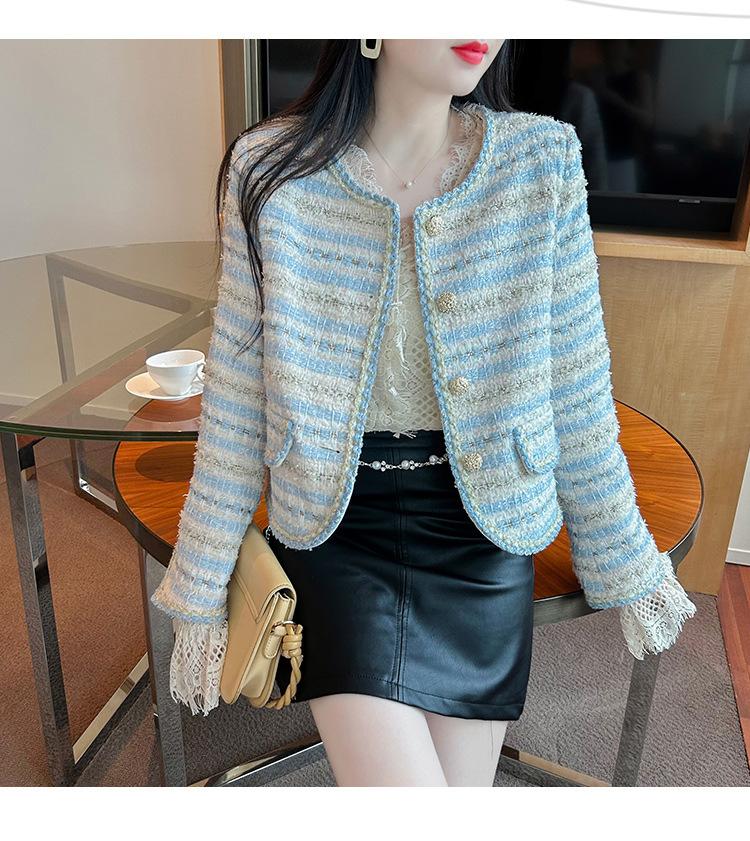 Casaco curto elegante francês com fragrância pequena para mulheres, outono 2024, novo estilo, estilo estrangeiro, redutor de idade, pequeno, cardigan