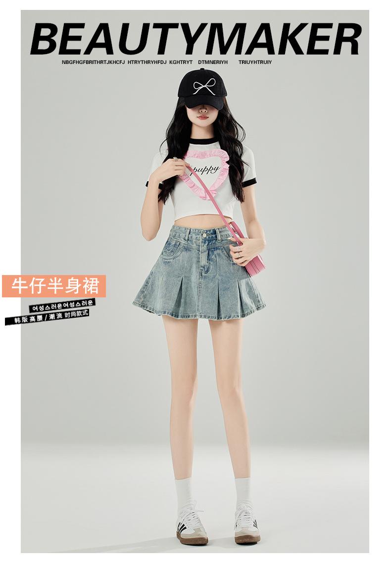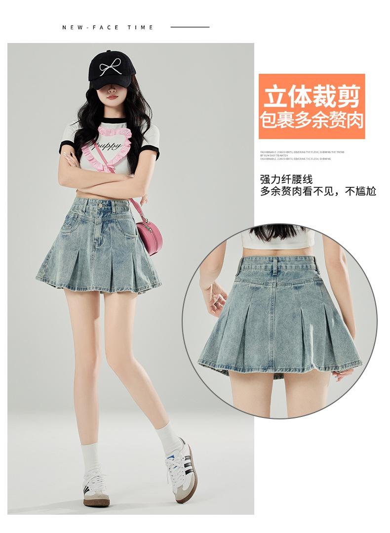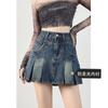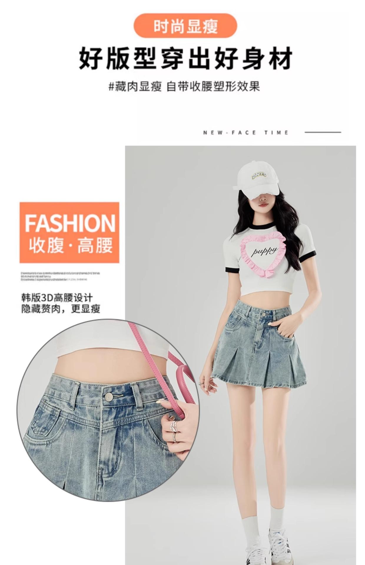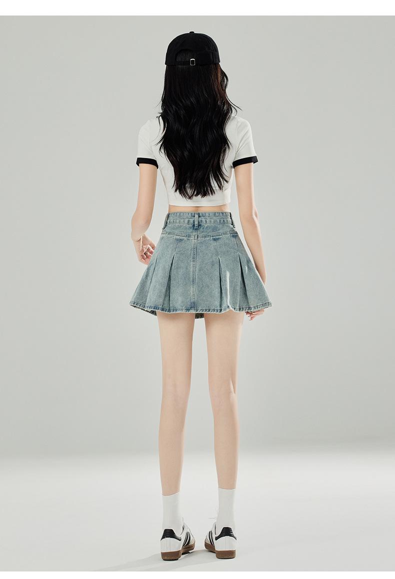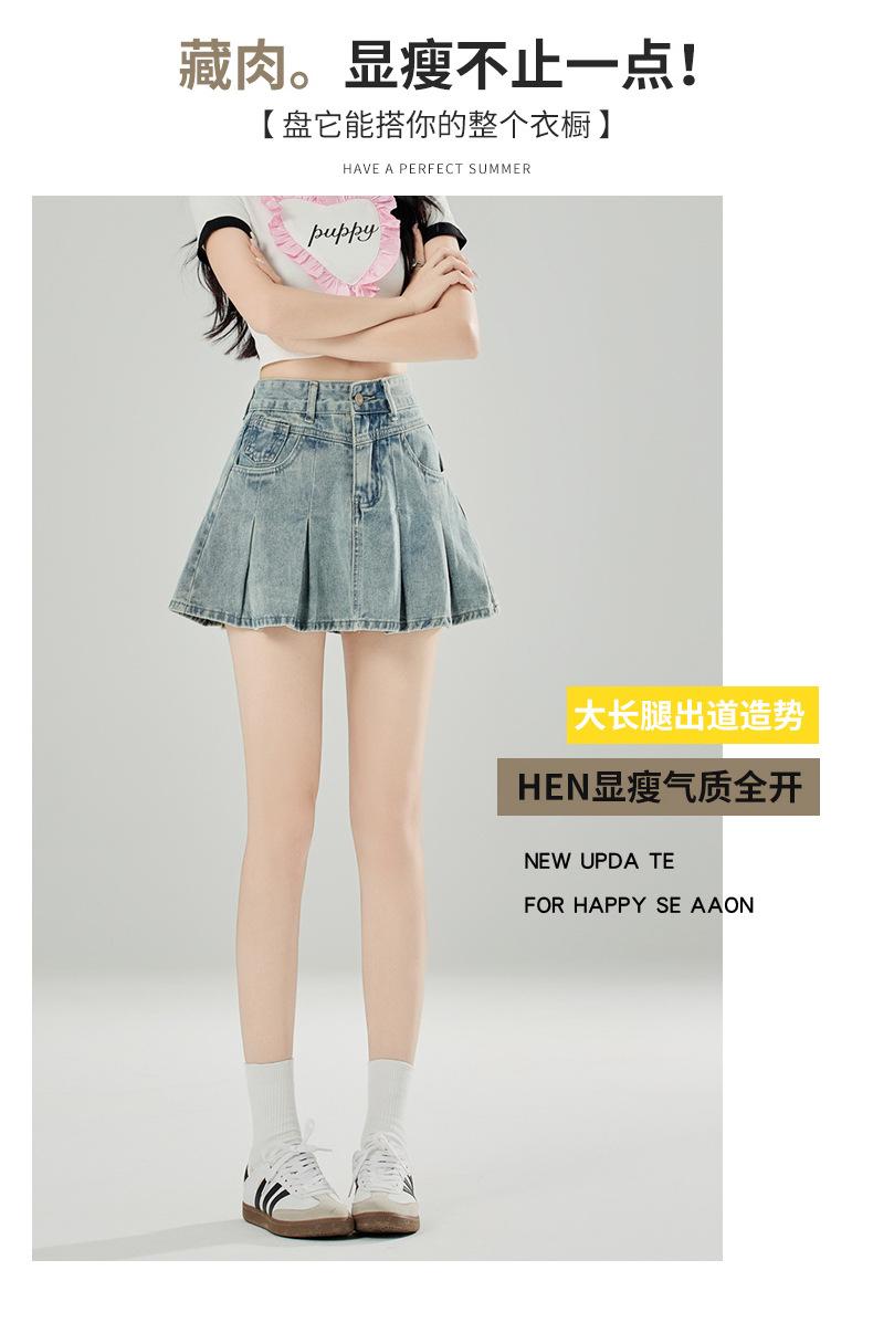 Falda vaquera azul claro primavera y verano nueva cintura alta Una falda plisada muestra la pierna larga falda de chica caliente una generación de cabello