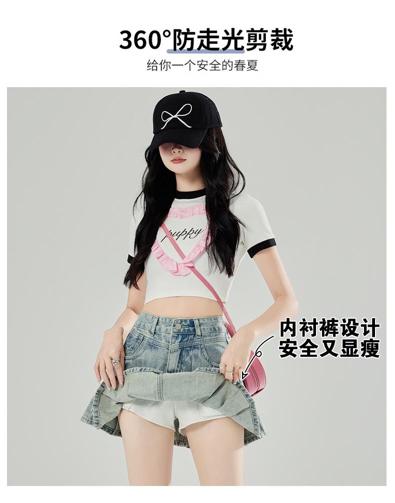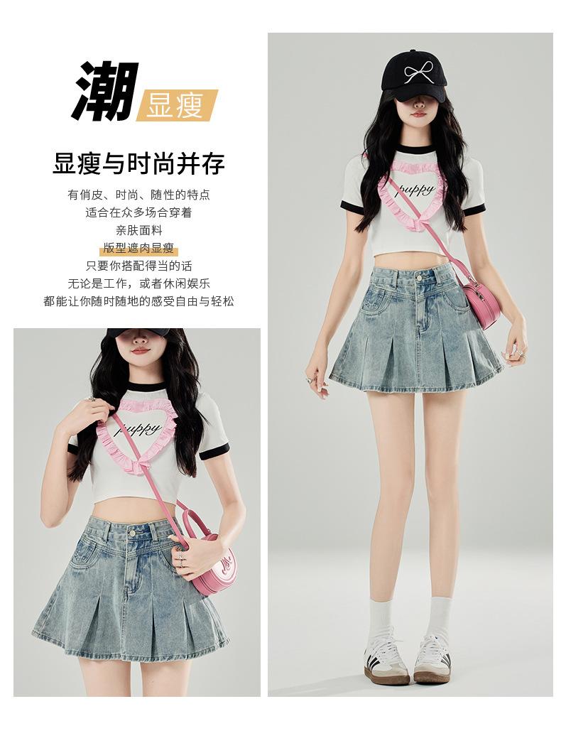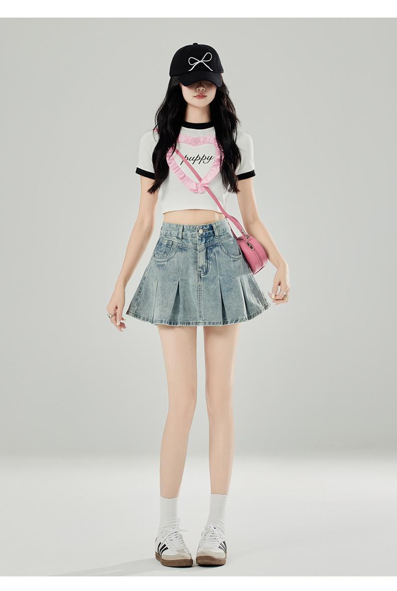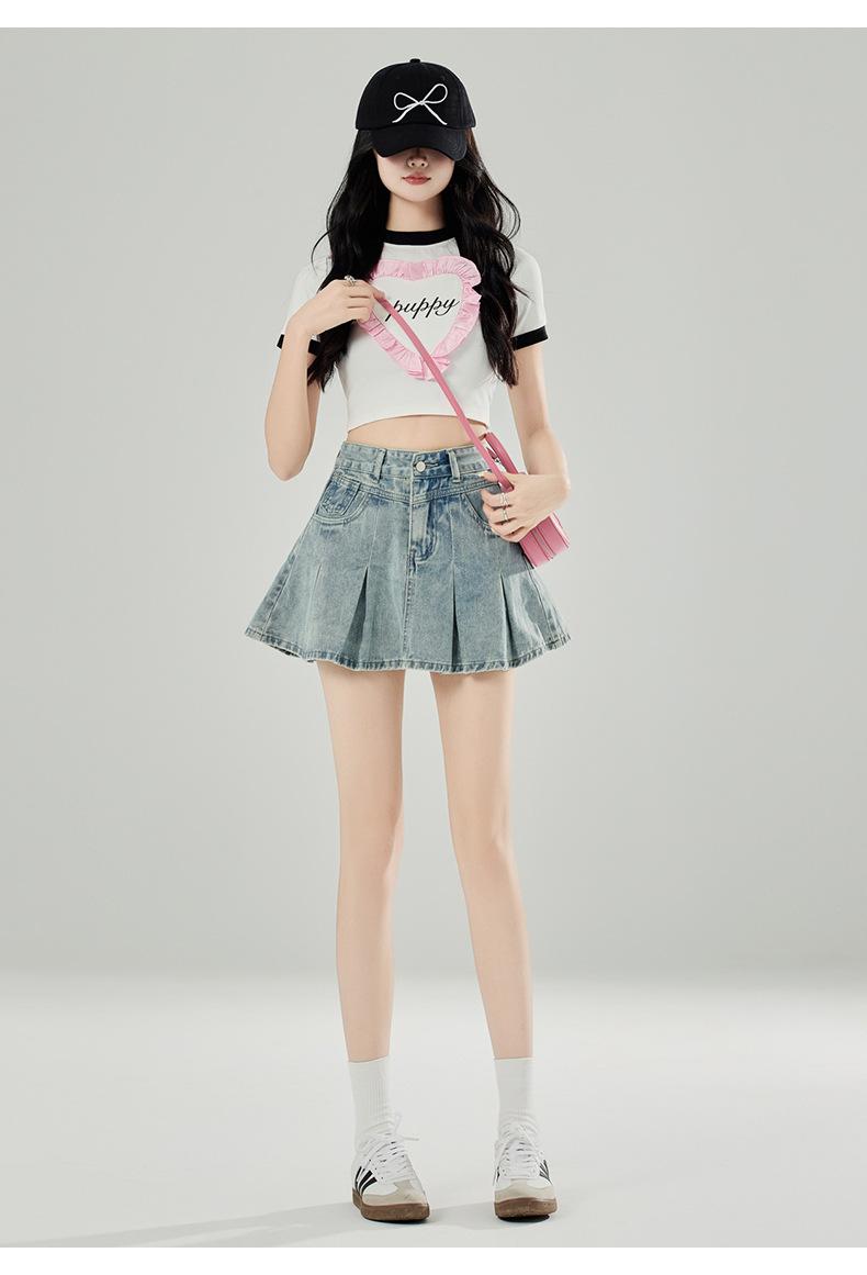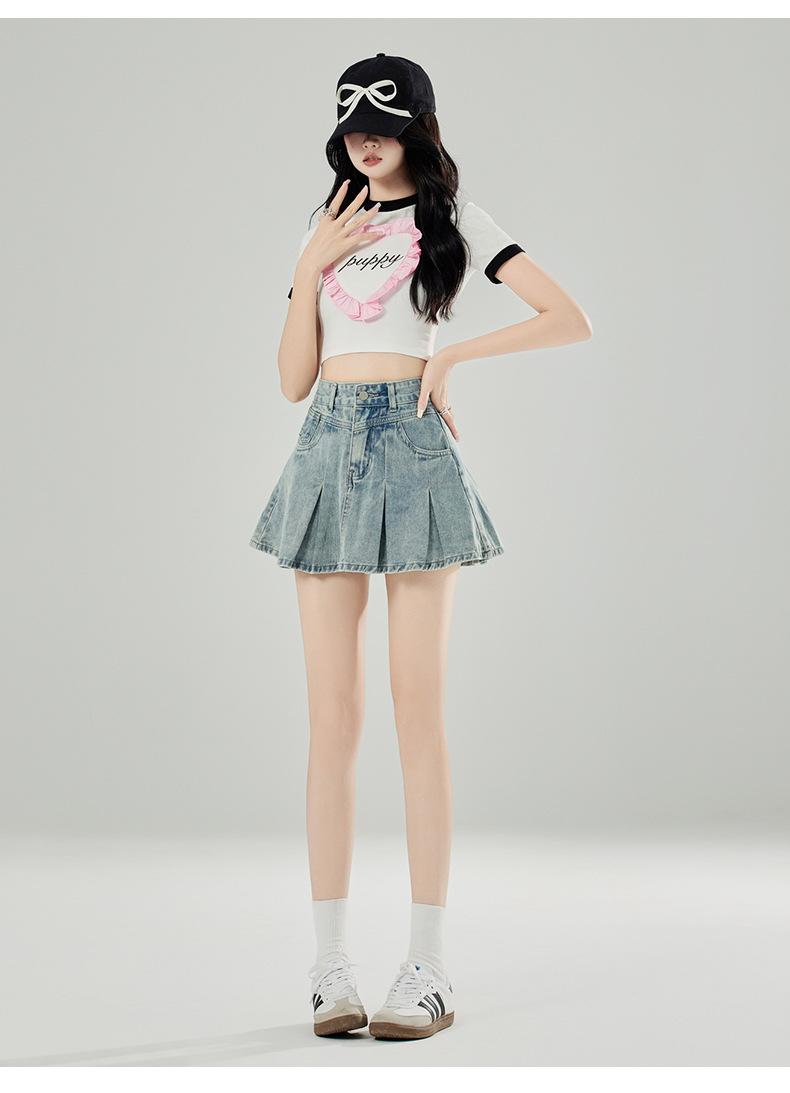 Falda vaquera azul claro primavera y verano nueva cintura alta Una falda plisada muestra la pierna larga falda de chica caliente una generación de cabello