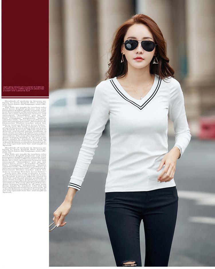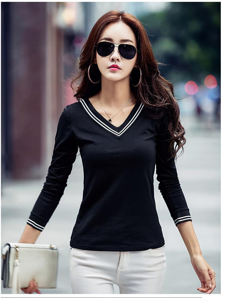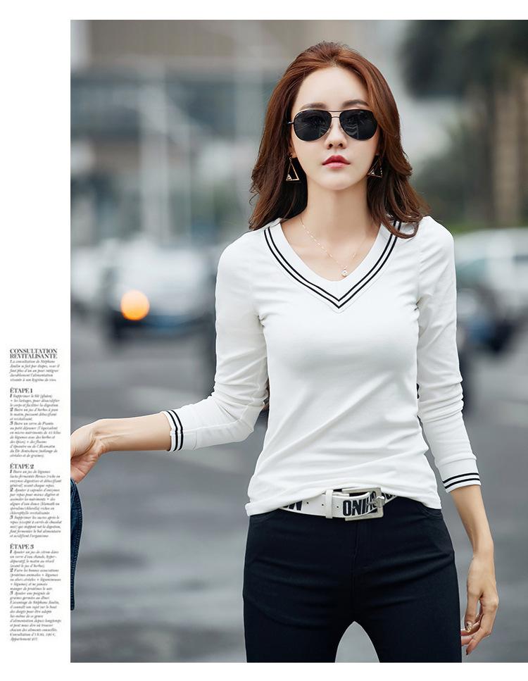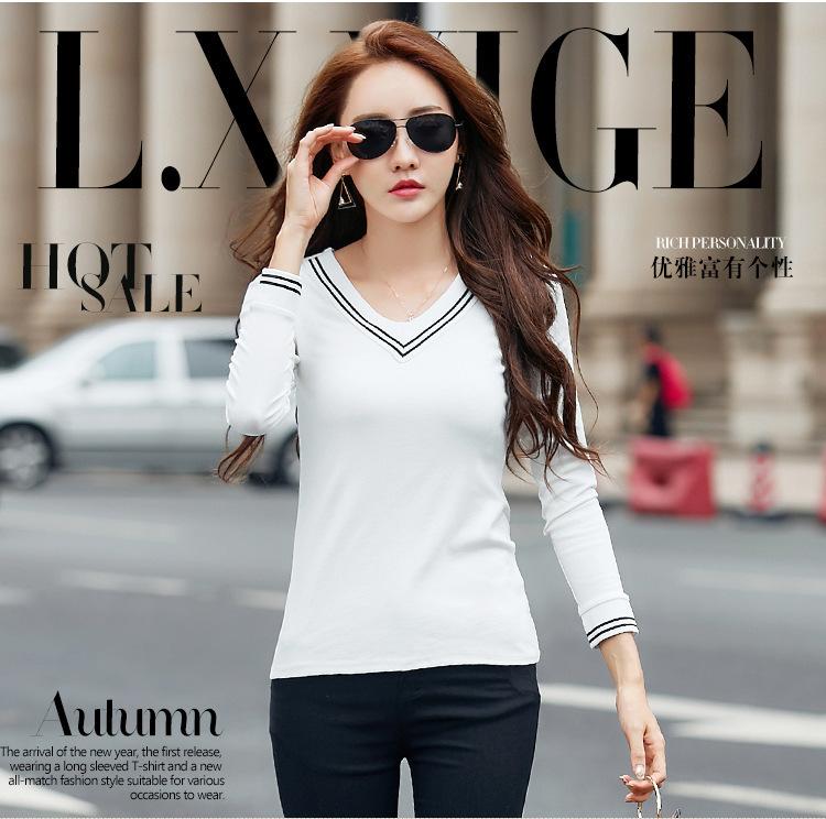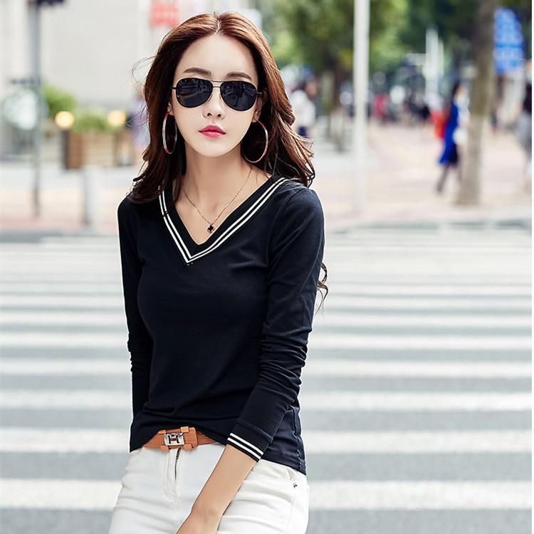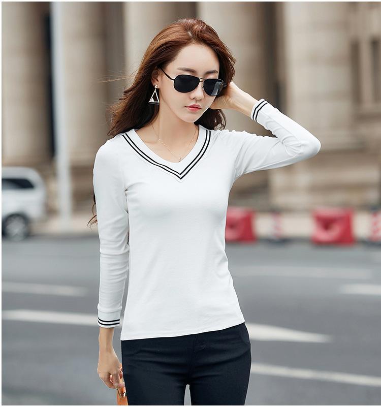 Camiseta de manga larga con cuello en V ajustada coreana para primavera y verano de 2022, camiseta informal para mujer, ropa al por mayor para estudiantes