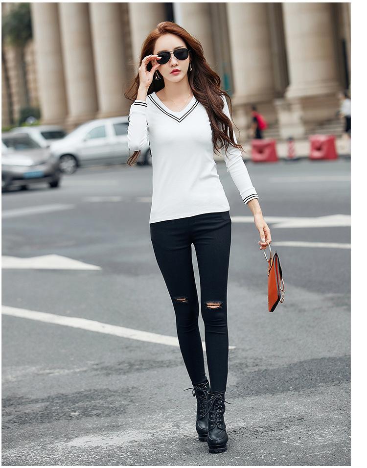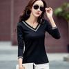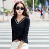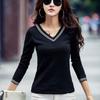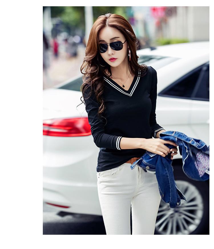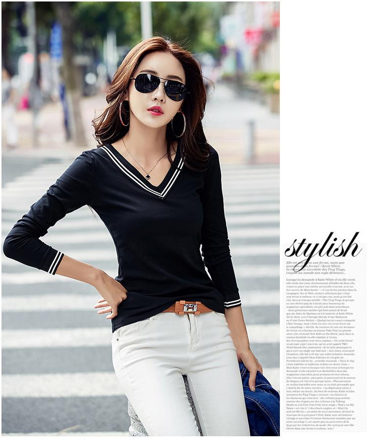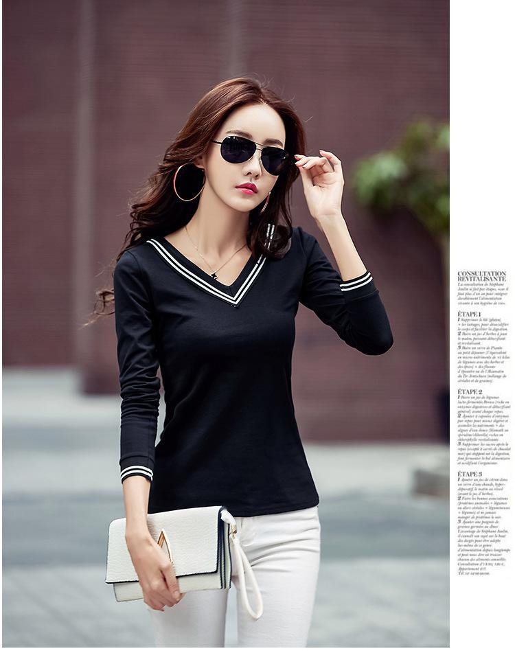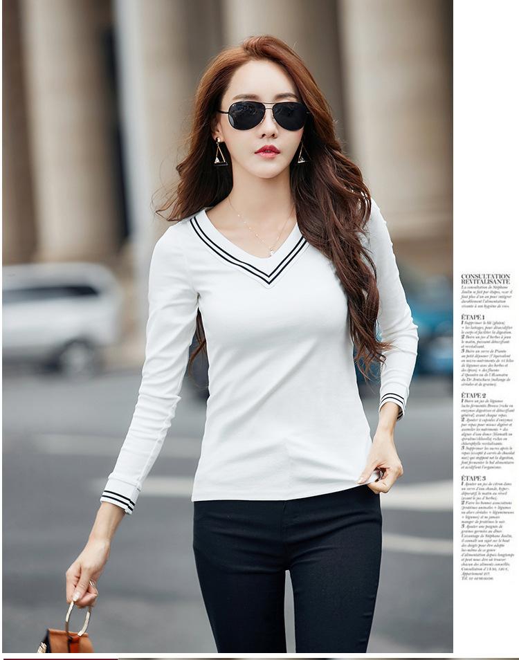 Camiseta de manga larga con cuello en V ajustada coreana para primavera y verano de 2022, camiseta informal para mujer, ropa al por mayor para estudiantes