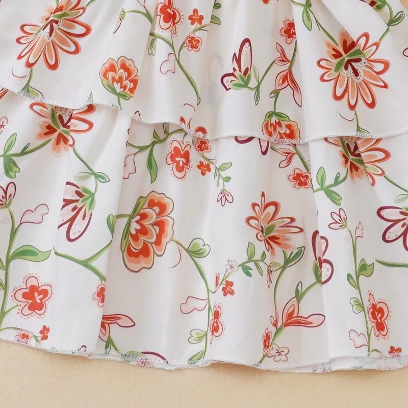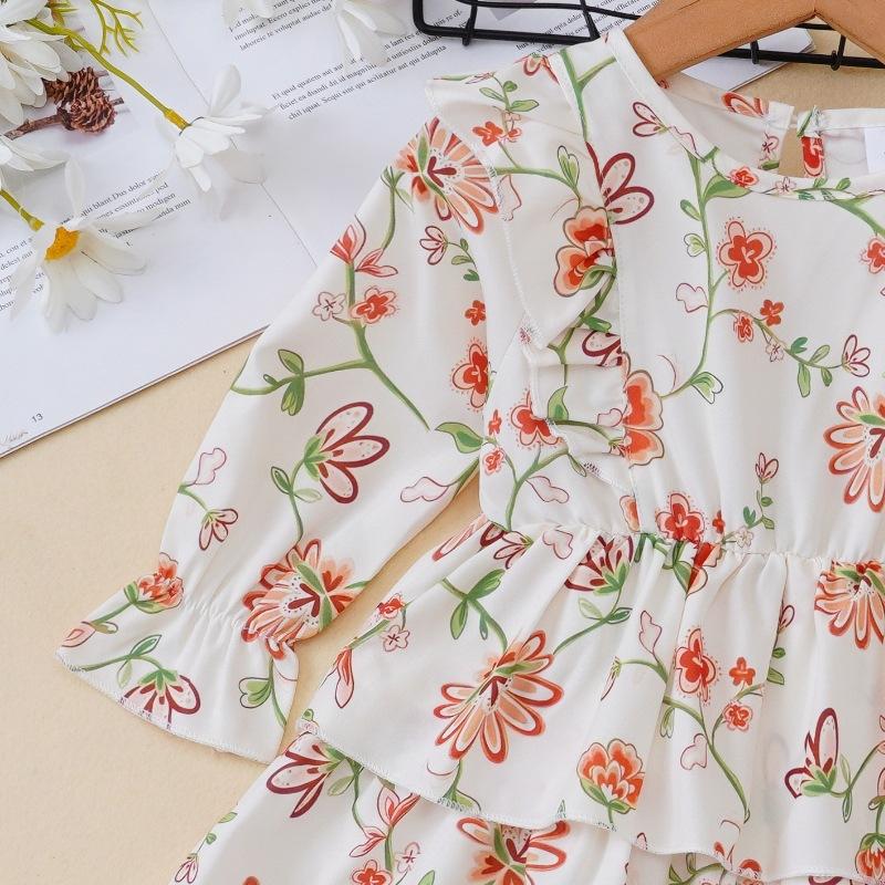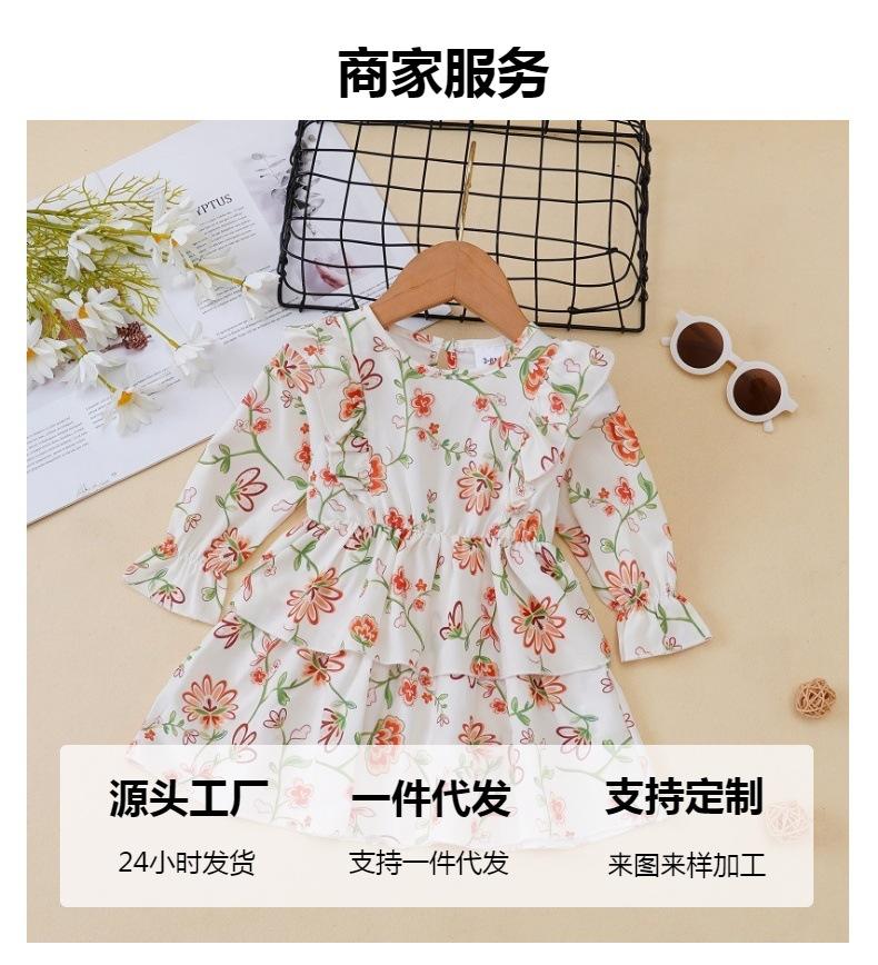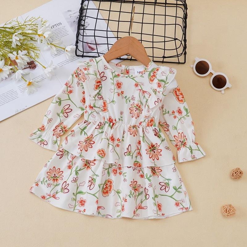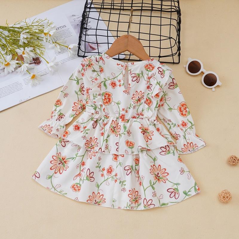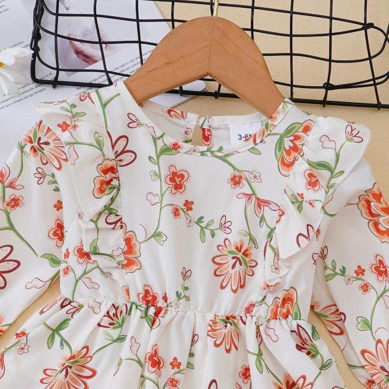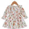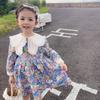 Vestido de primavera y otoño 2024 para niñas, estilo coreano, de manga larga con volantes, floral, de princesa