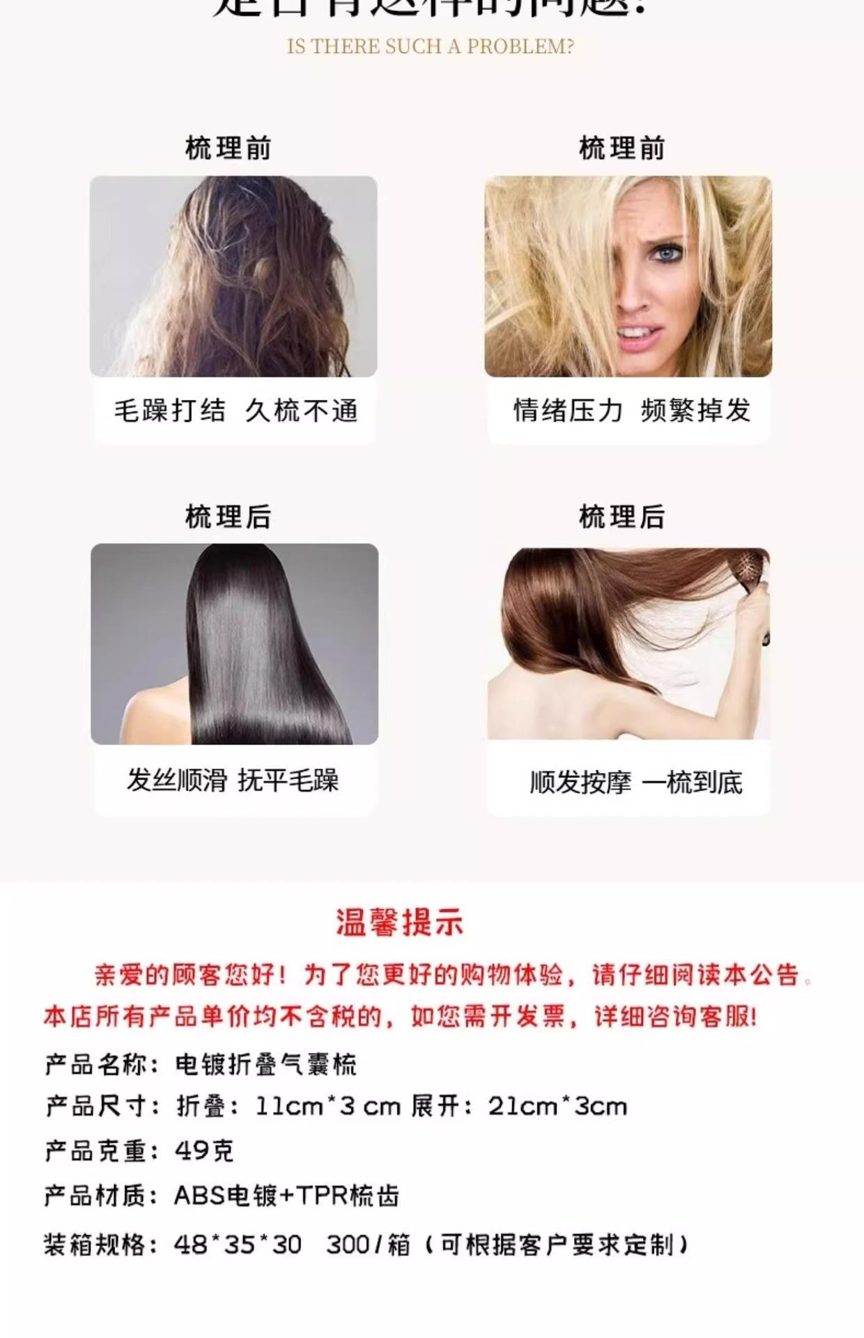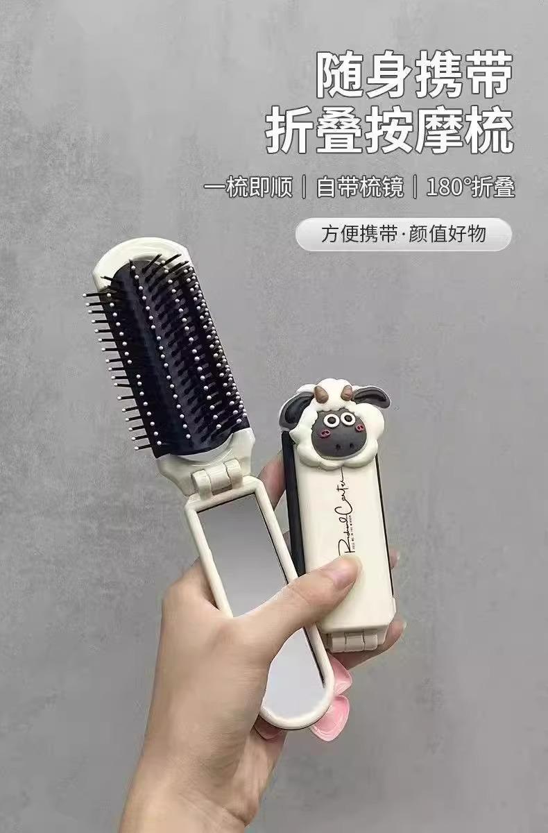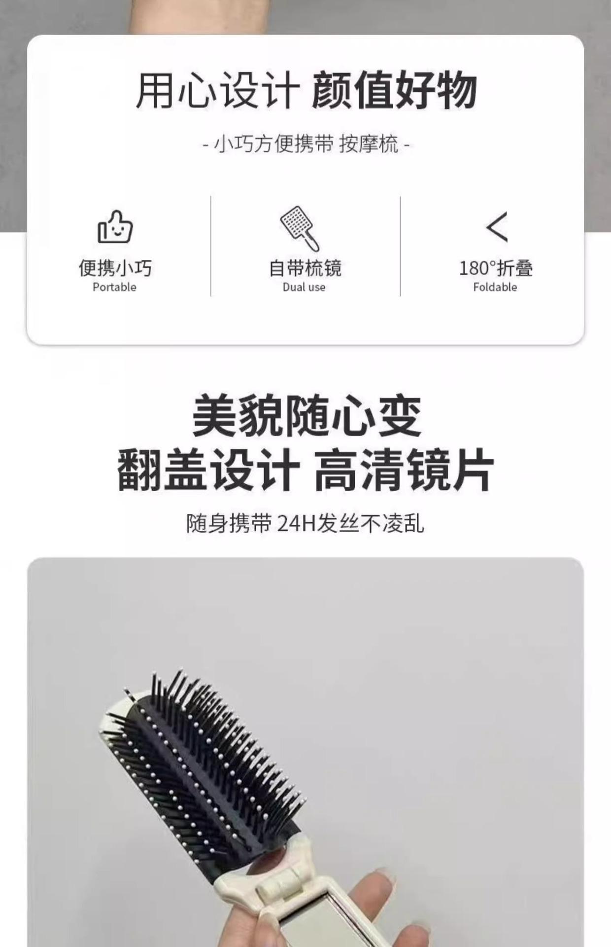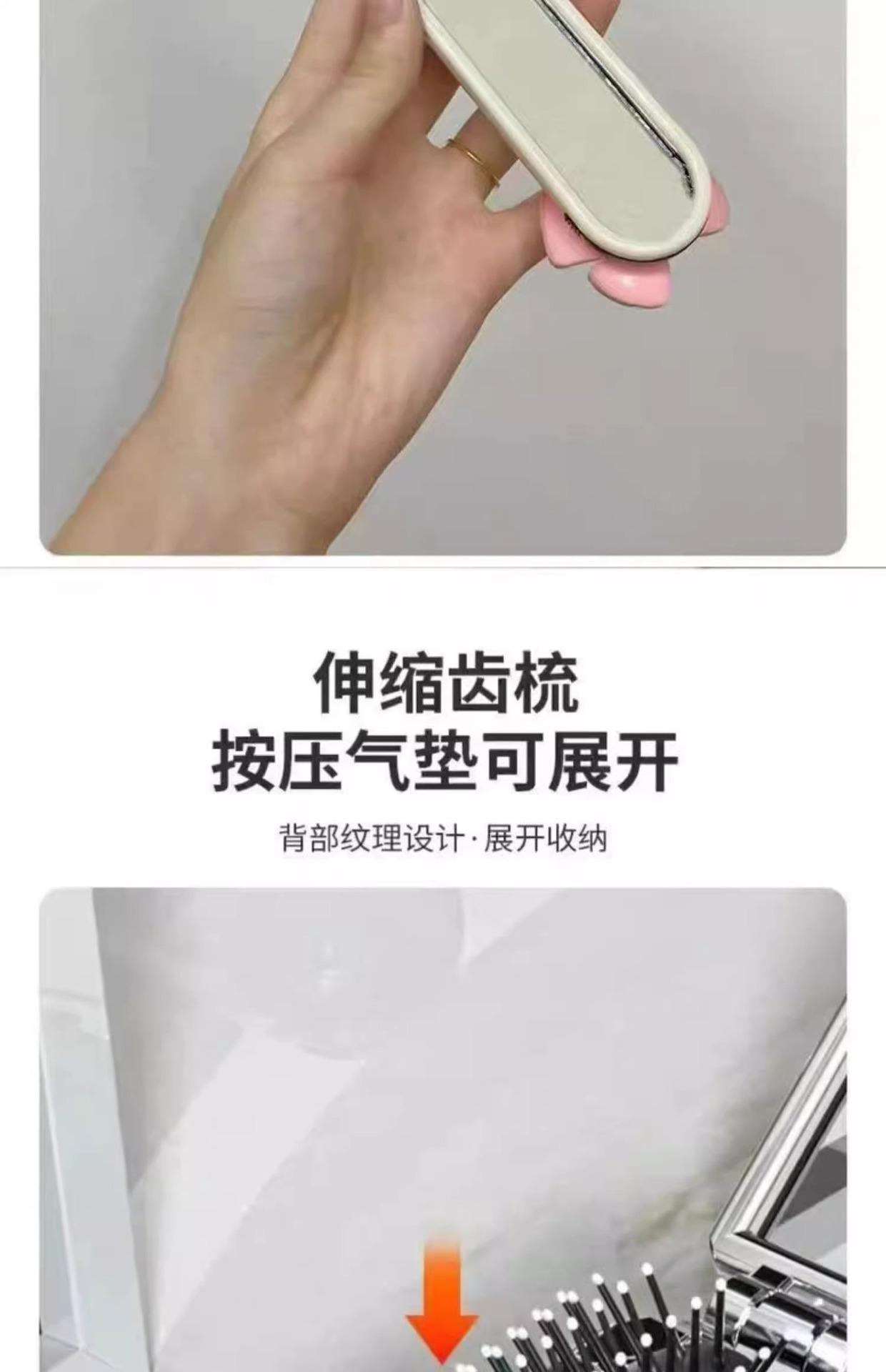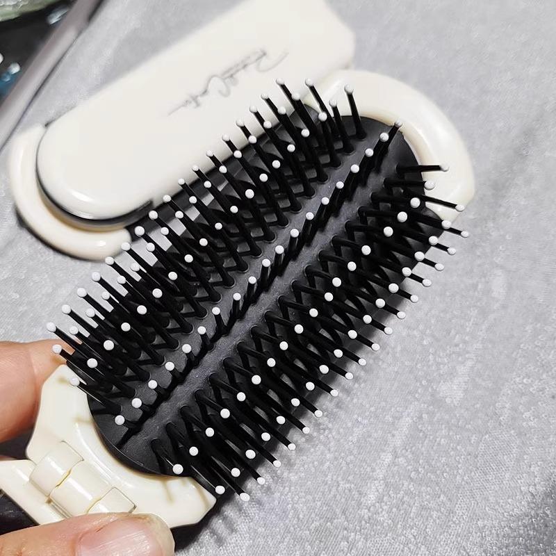 Peine pequeño portátil plegable para niños y niñas, para cabello largo, con bolsa de aire, cojín de aire, masajeador y espejo integrado.