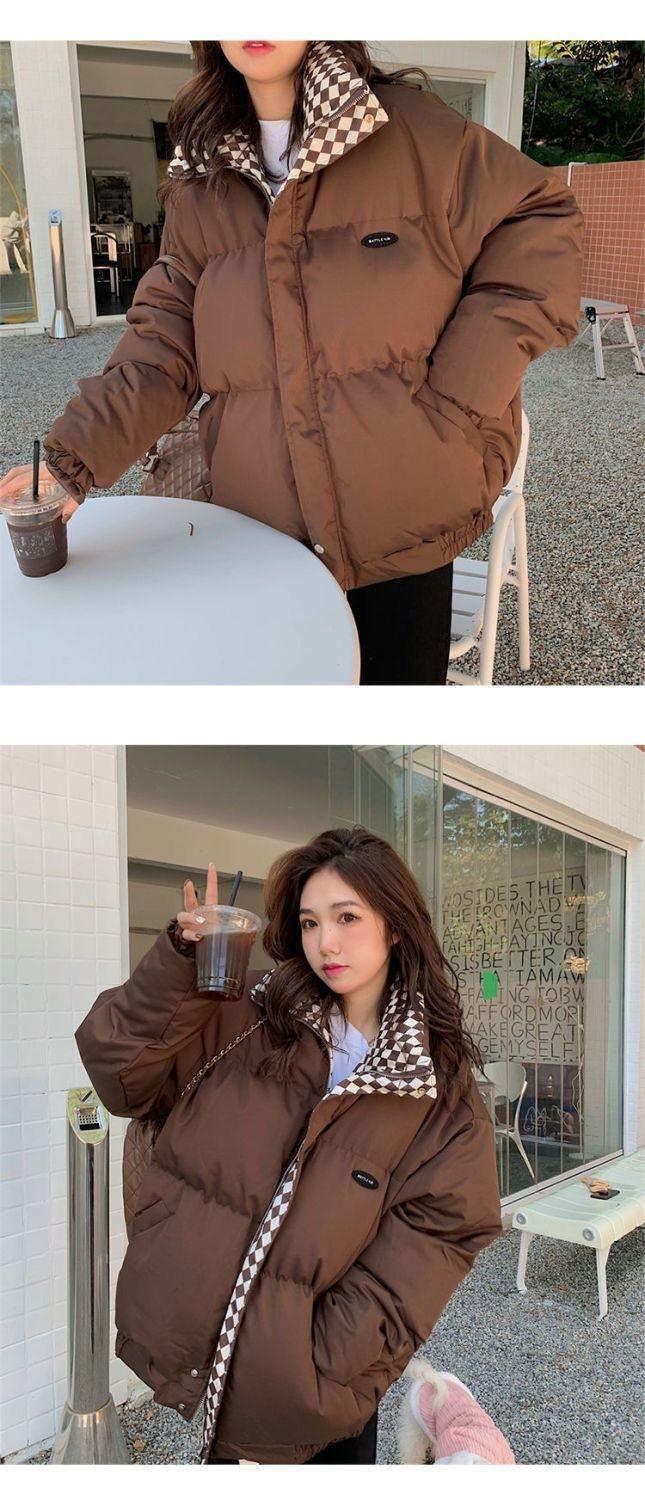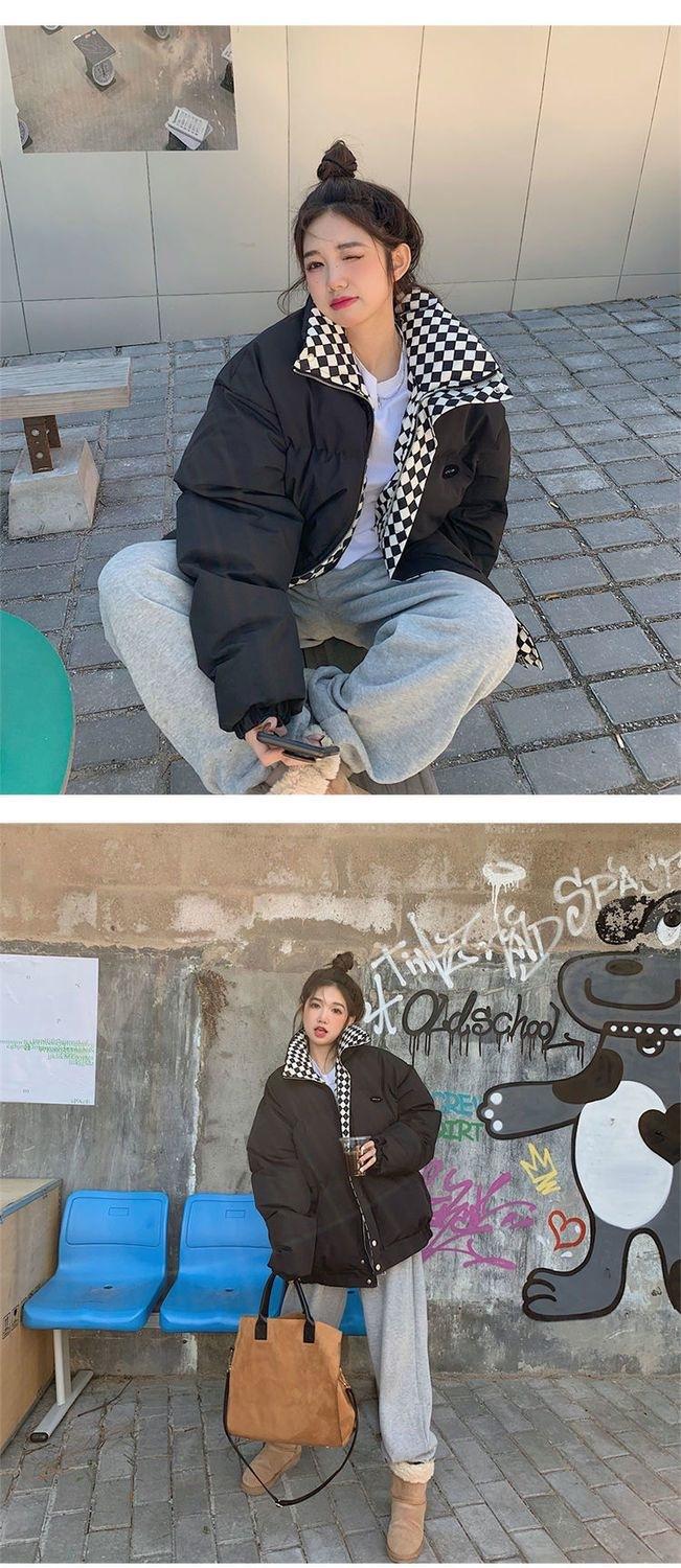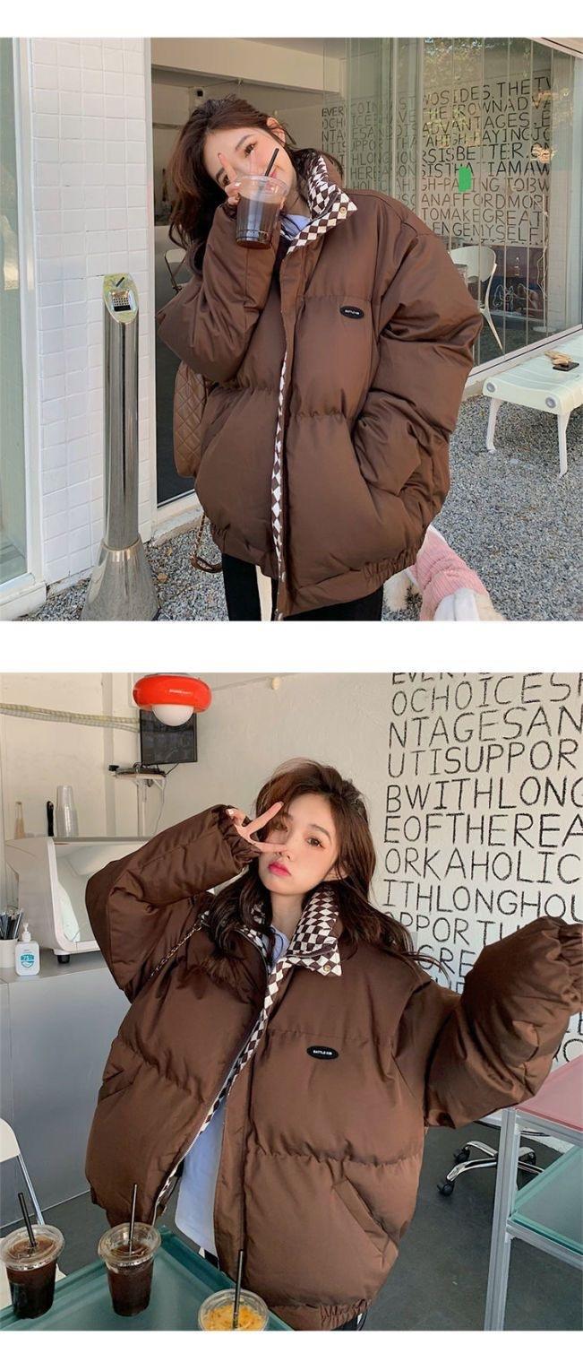 Abrigo de Algodón a Cuadros para Mujer Invierno Retro Estilo Hong Kong Acolchado Suelto Abrigo Pan Diseño Nicho Harajuku Abrigo de Algodón Tendencia