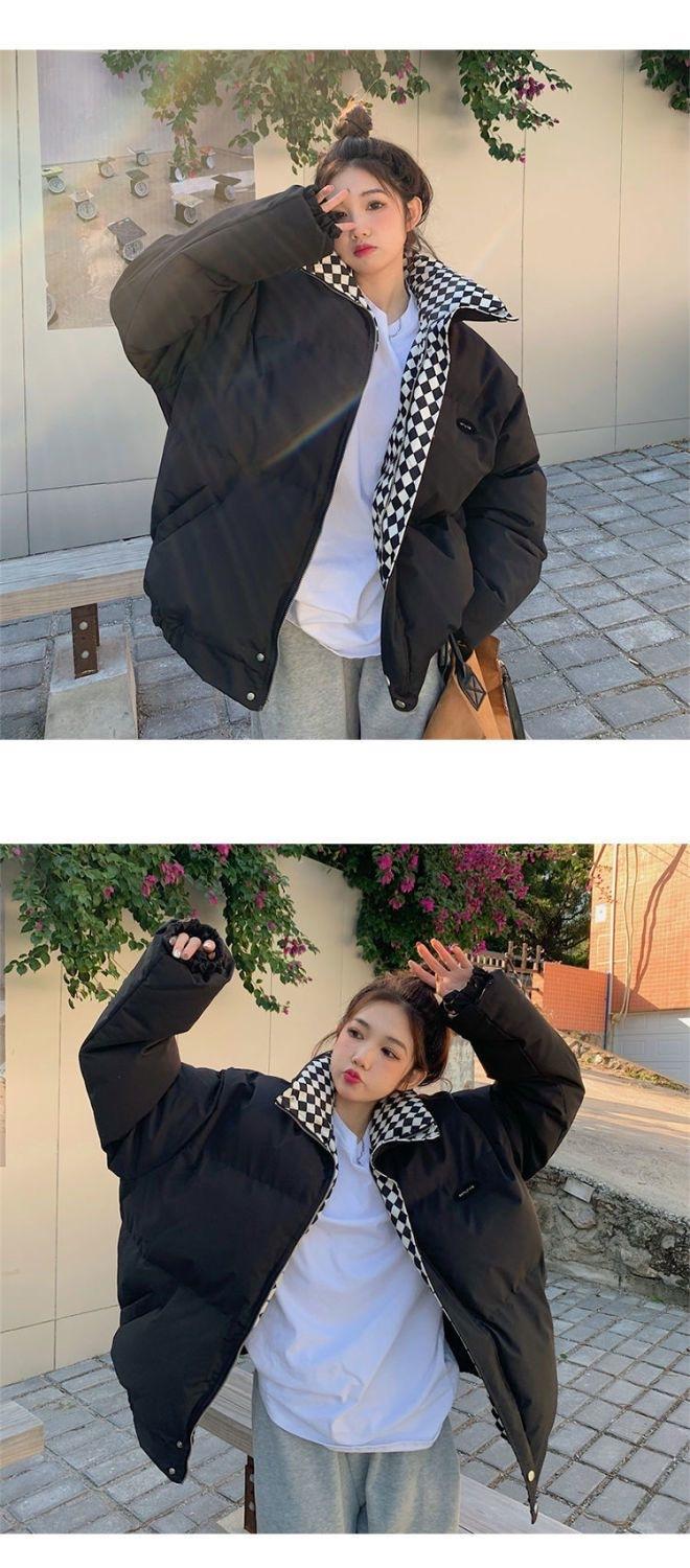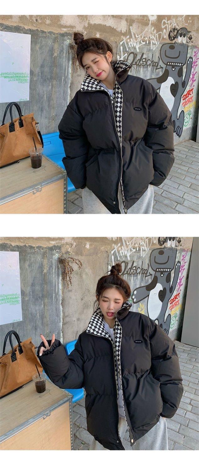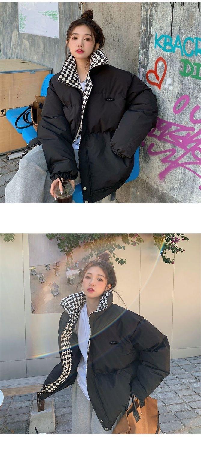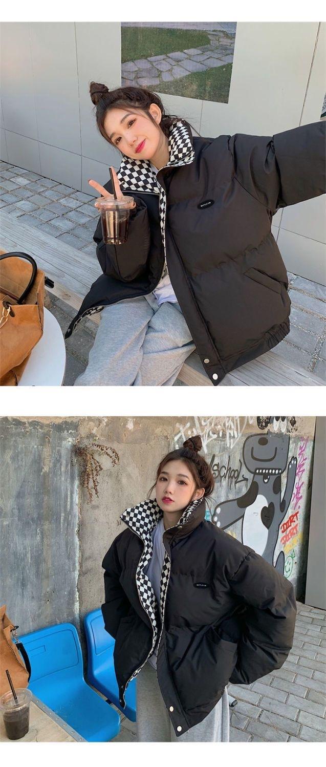 Abrigo de Algodón a Cuadros para Mujer Invierno Retro Estilo Hong Kong Acolchado Suelto Abrigo Pan Diseño Nicho Harajuku Abrigo de Algodón Tendencia