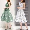 Vestido sin mangas de longitud media con estampado de estilo coreano para mujer, falda adelgazante de línea A, estilo estación europea de verano 2023