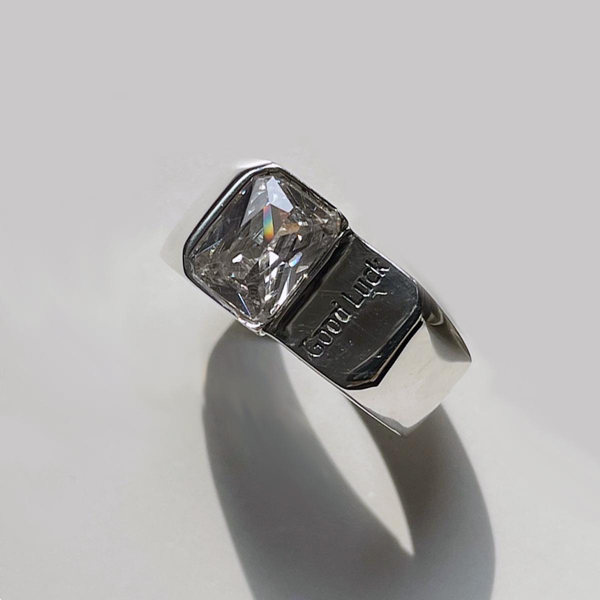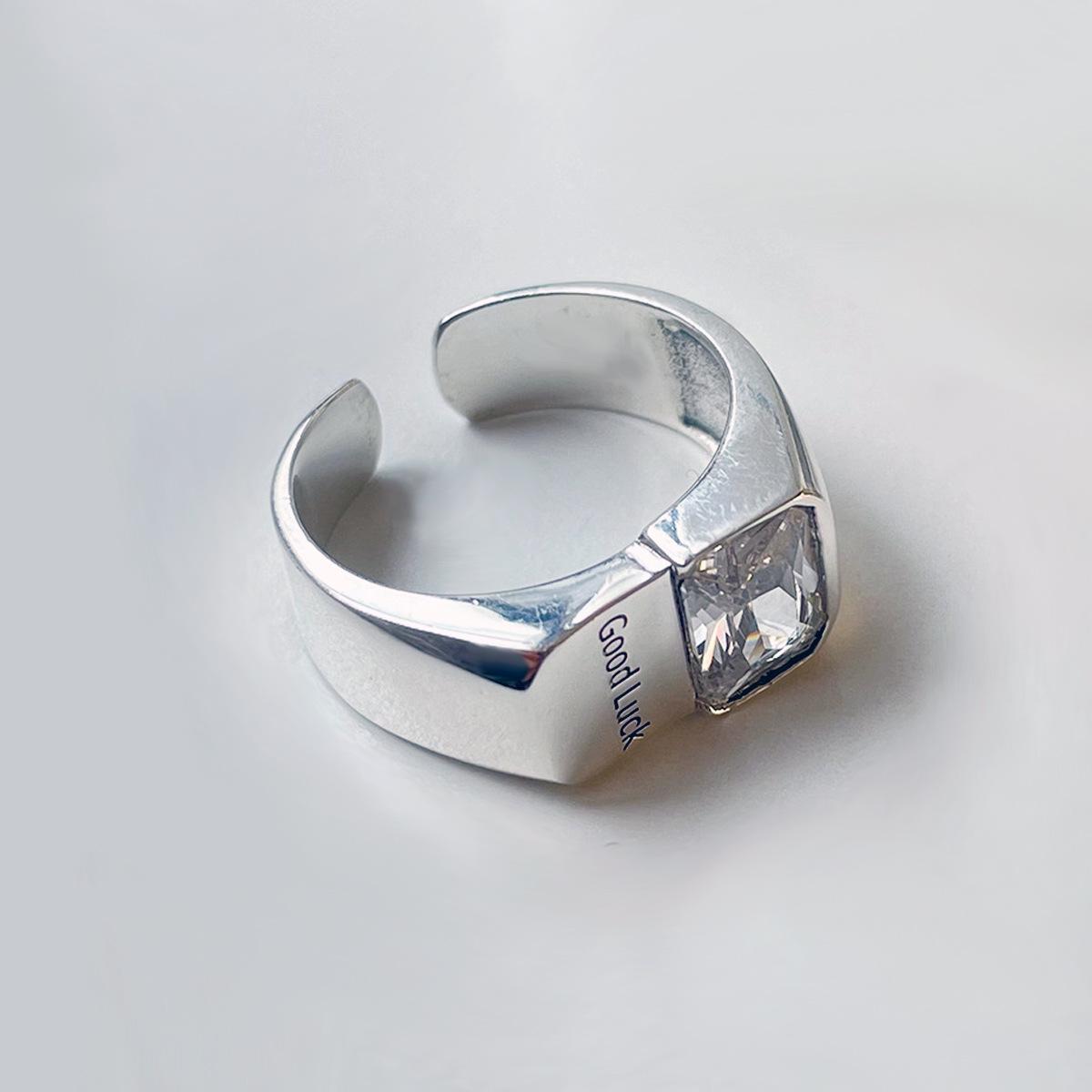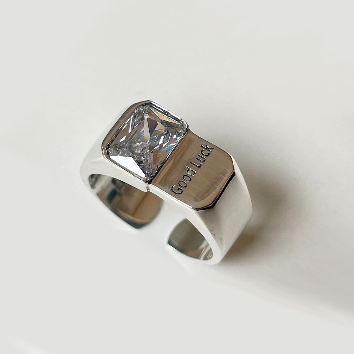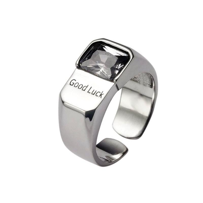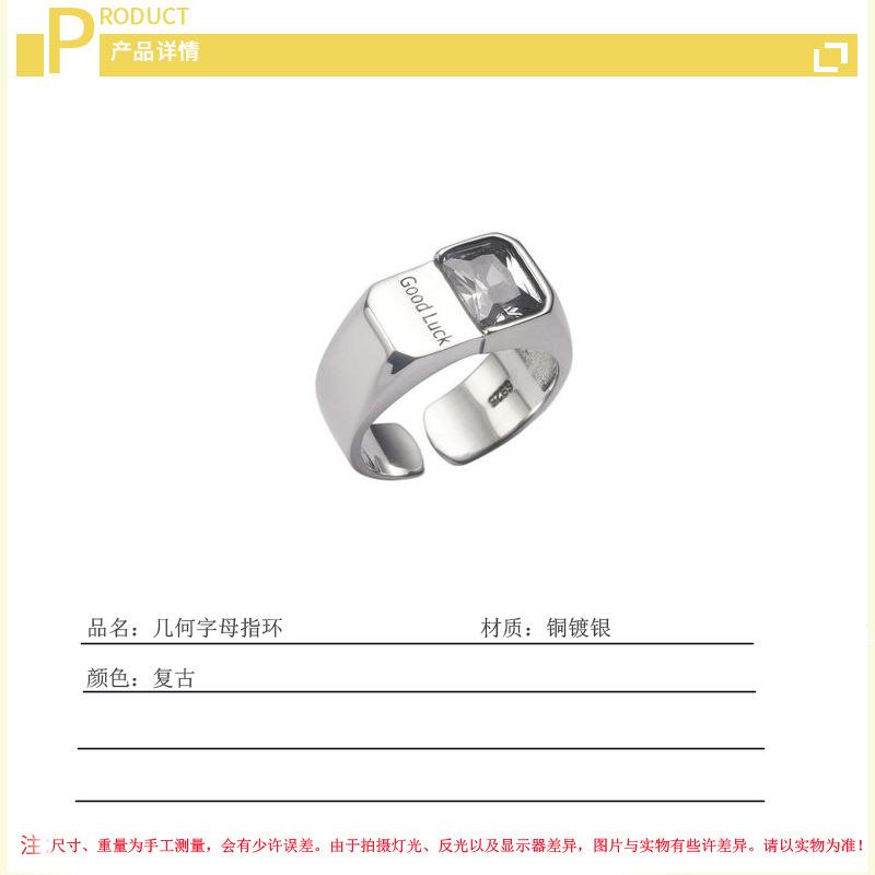 Anillo de letra geométrico de temperamento moda viento fresco plata suerte afortunado circón anillo abierto suministro