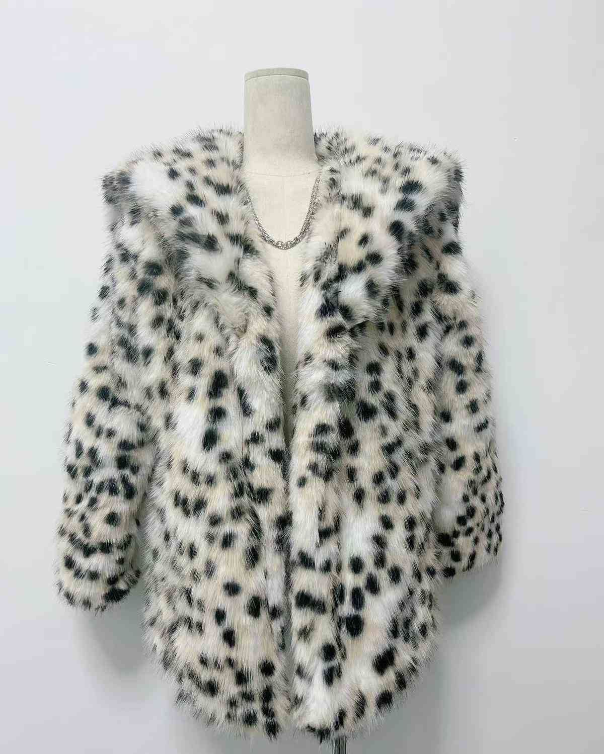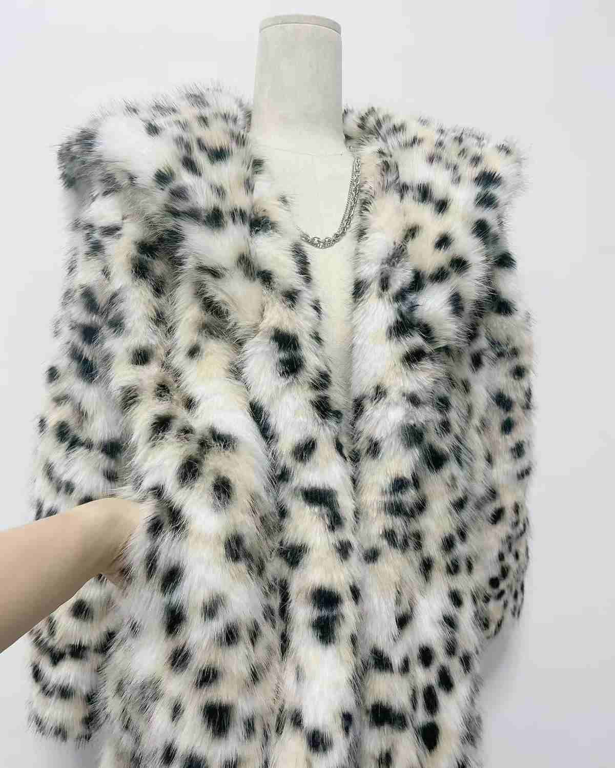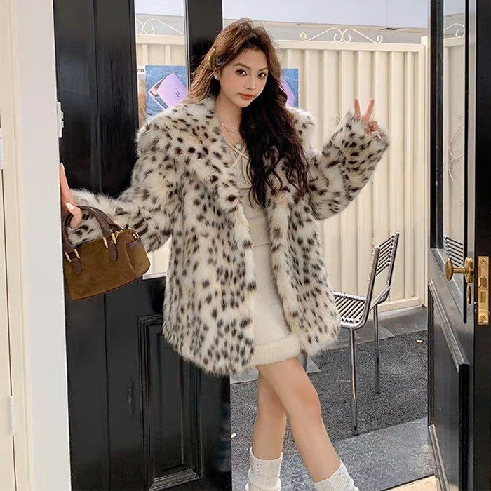 Abrigo de piel sintética con estampado de leopardo, grueso, diseño de nicho nuevo, piel sintética de zorro, solapa con estampado de leopardo, para mujer
