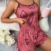 Trajes deportivos de ocio europeos y americanos nuevos de primavera y verano 2024 para mujer con aberturas huecas estampadas y trajes cortos de dos piezas que dejan al descubierto el ombligo.