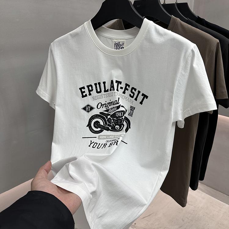 ! Camiseta básica de manga corta casual estampada para hombre de calidad para primavera y verano, que combina con todo