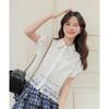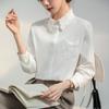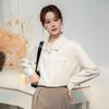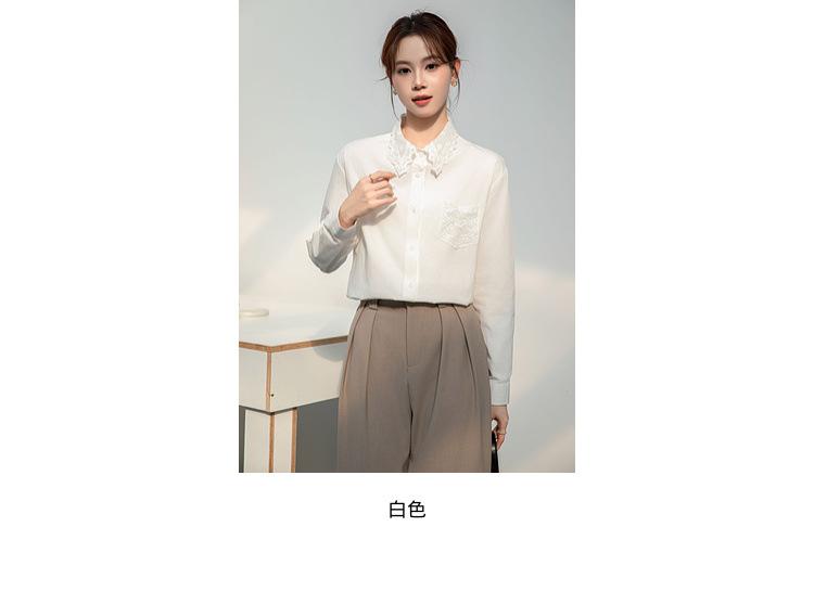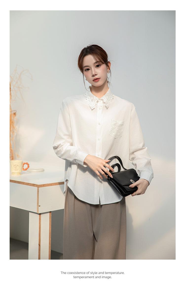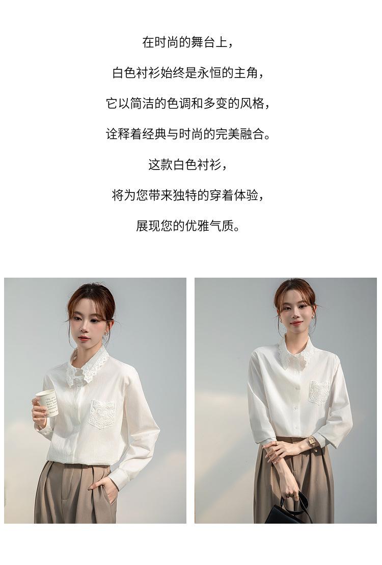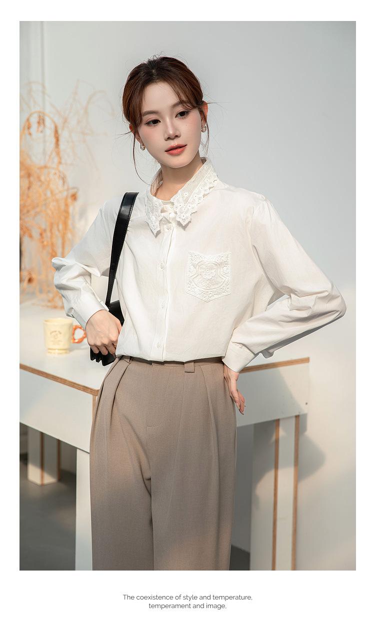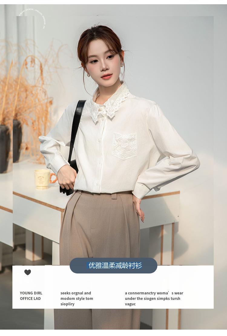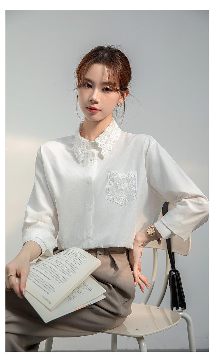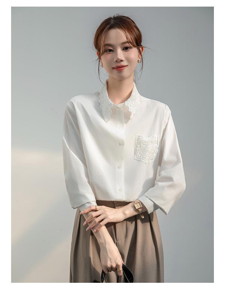 Camisa elegante de manga larga blanca con cuello bordado y encaje grueso para mujer, nueva moda coreana primavera 2025