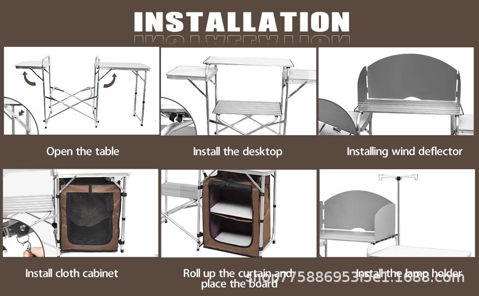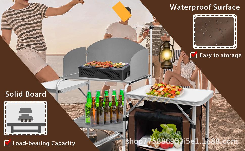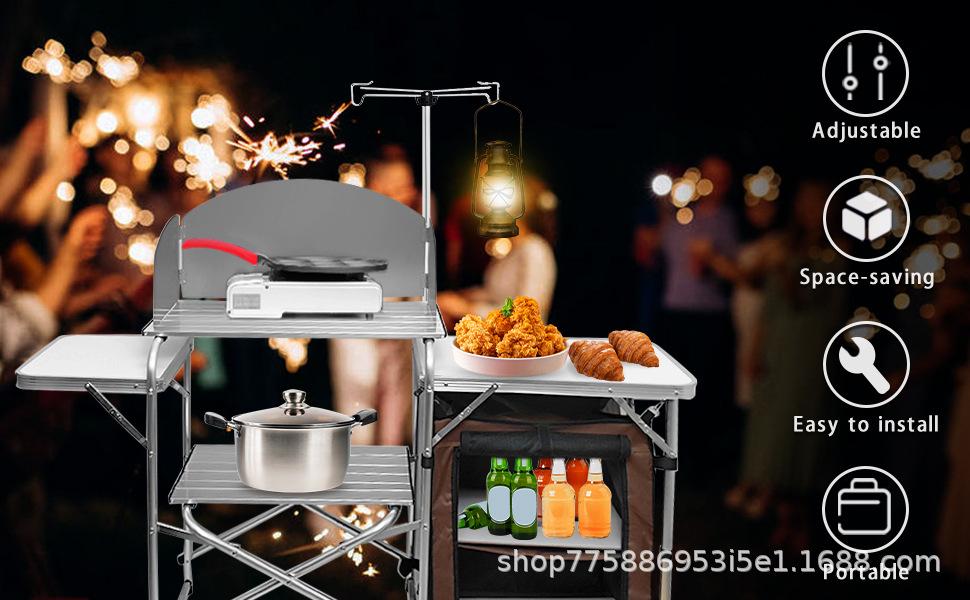 Cocina Móvil Popular para Camping al Aire Libre de Amazon Mesa Plegable de Aleación de Aluminio con Gabinete de Tela Blanco
