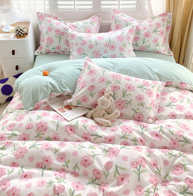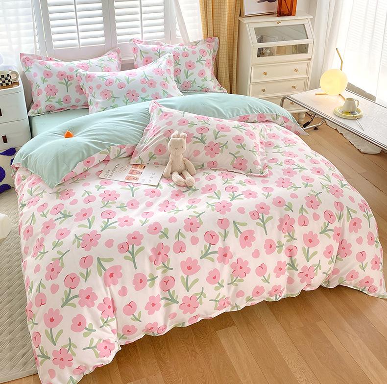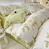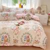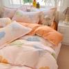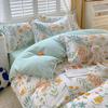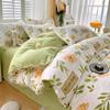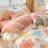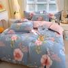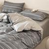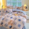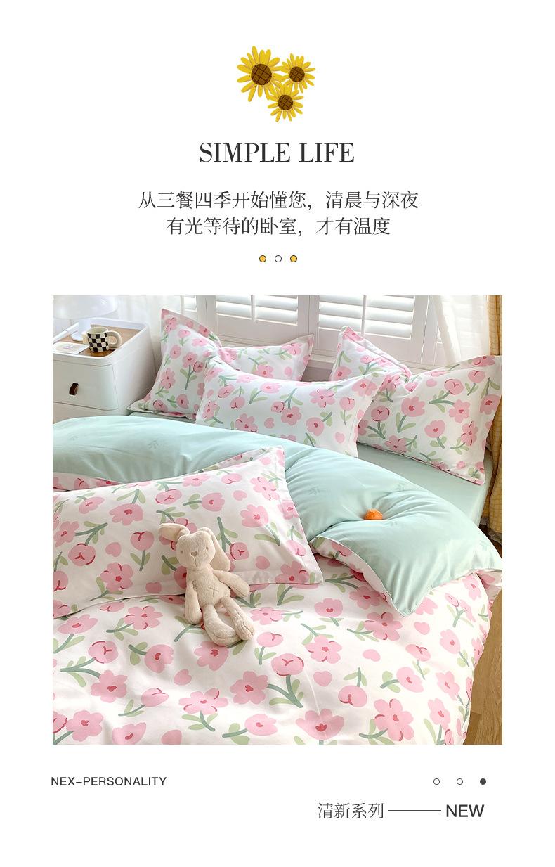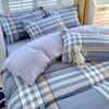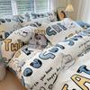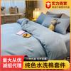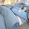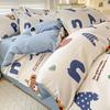 Juego de cama de cuatro piezas, pequeño, fresco, grueso y cepillado, con sábanas de algodón lavado, funda de edredón y funda de almohada, juego de cama de tres piezas para dormitorio de estudiantes