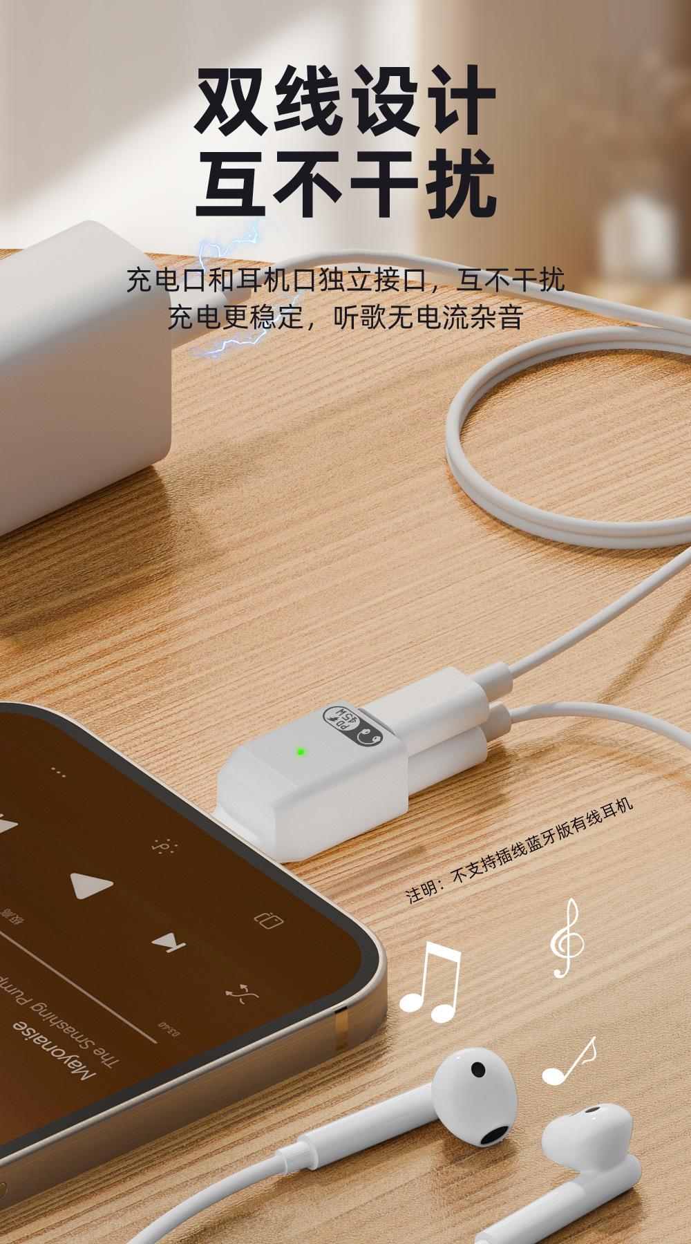 Nombre del producto: Bluetooth Inalámbrico 1 a 2Adaptador de carga para auriculares