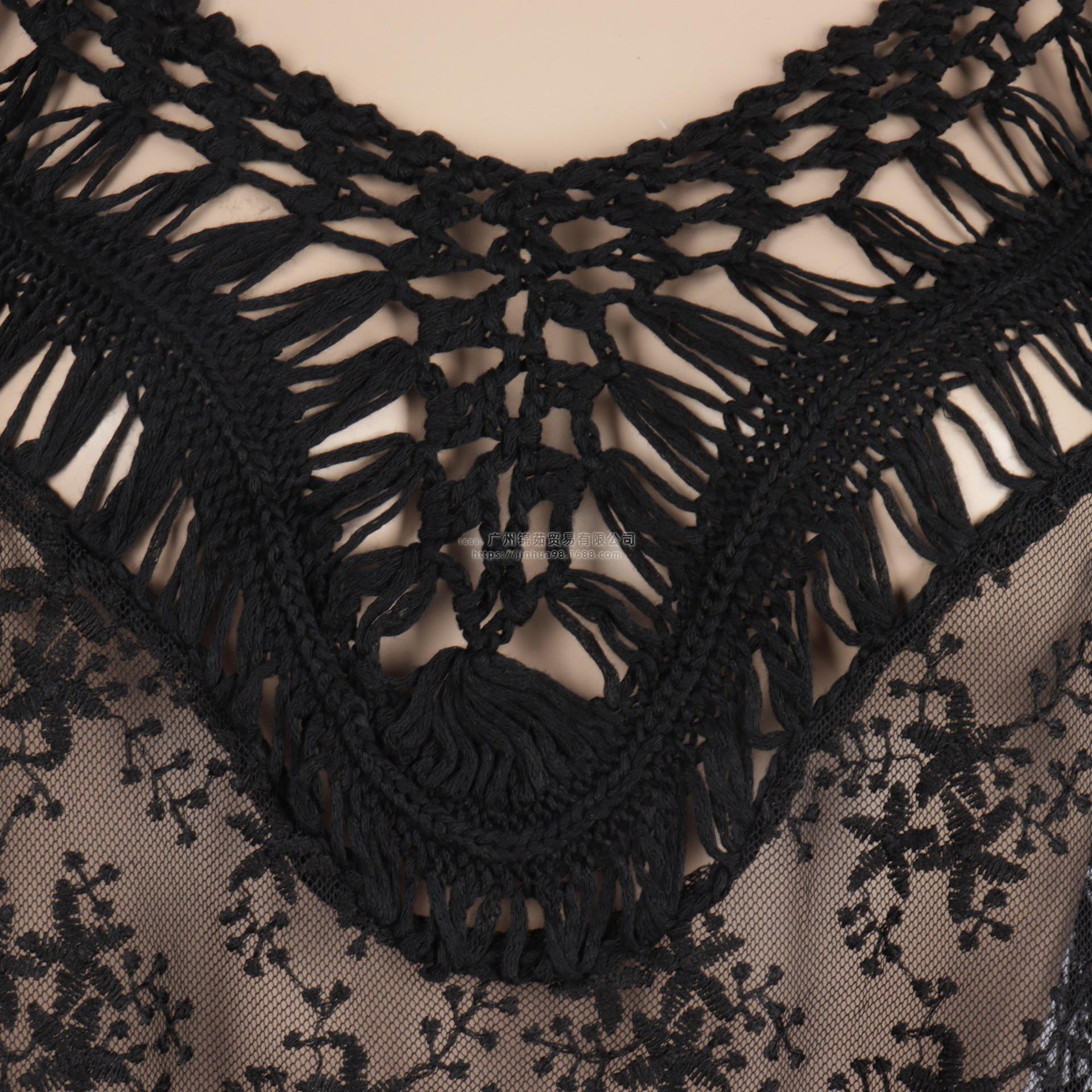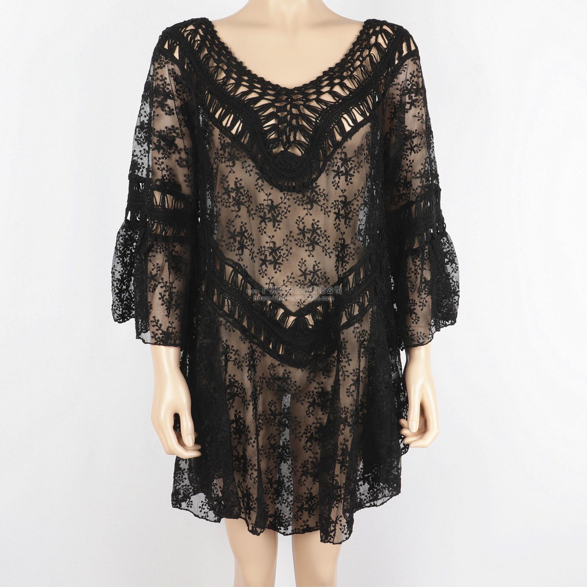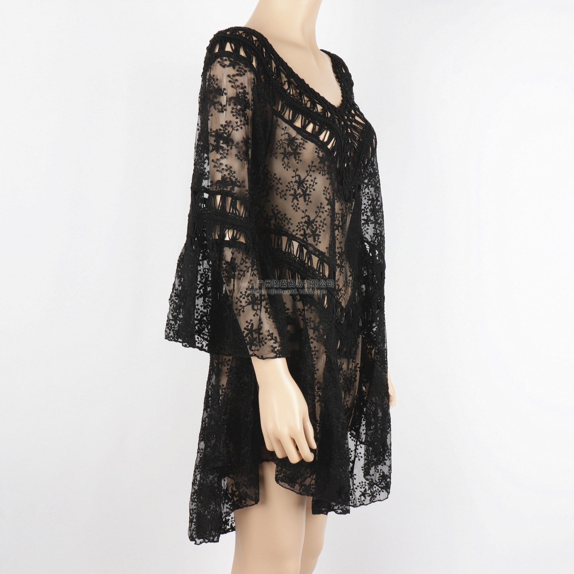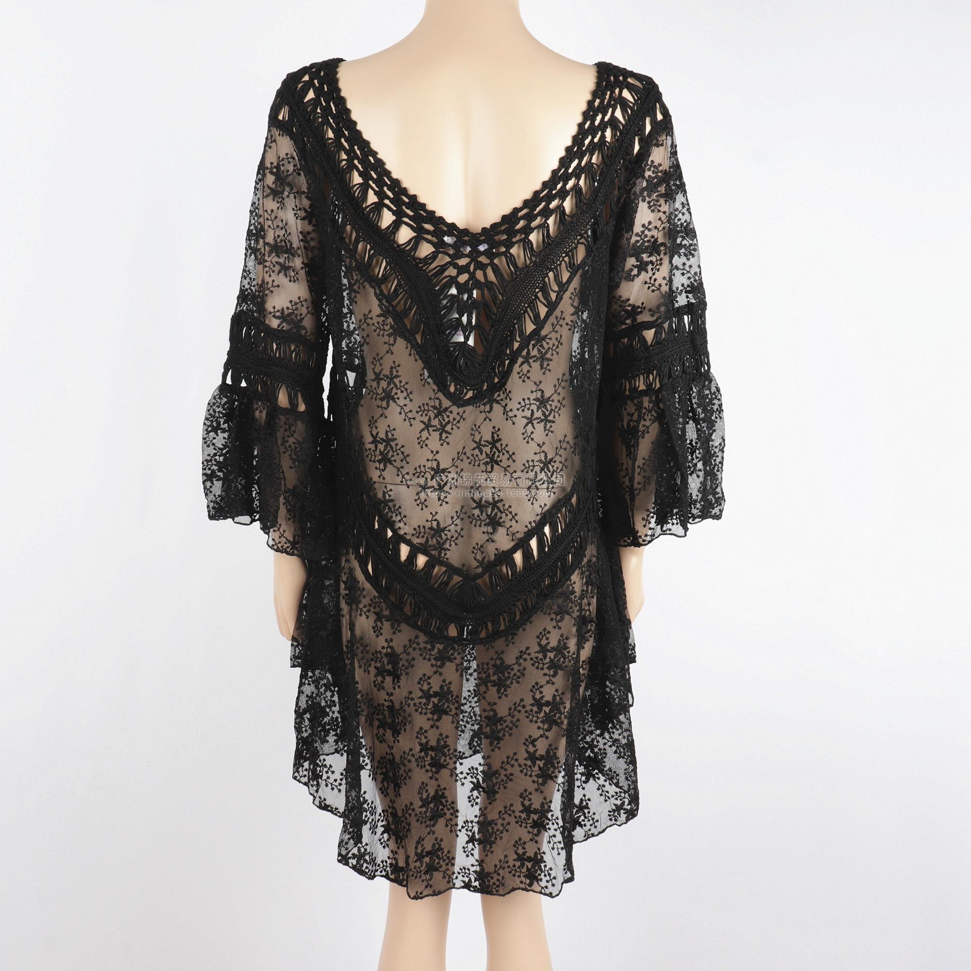 Blusa de bikini de ganchillo con encaje negro transparente, sexy, estilo playero, estilo europeo y americano, con transferencia directa de fábrica.