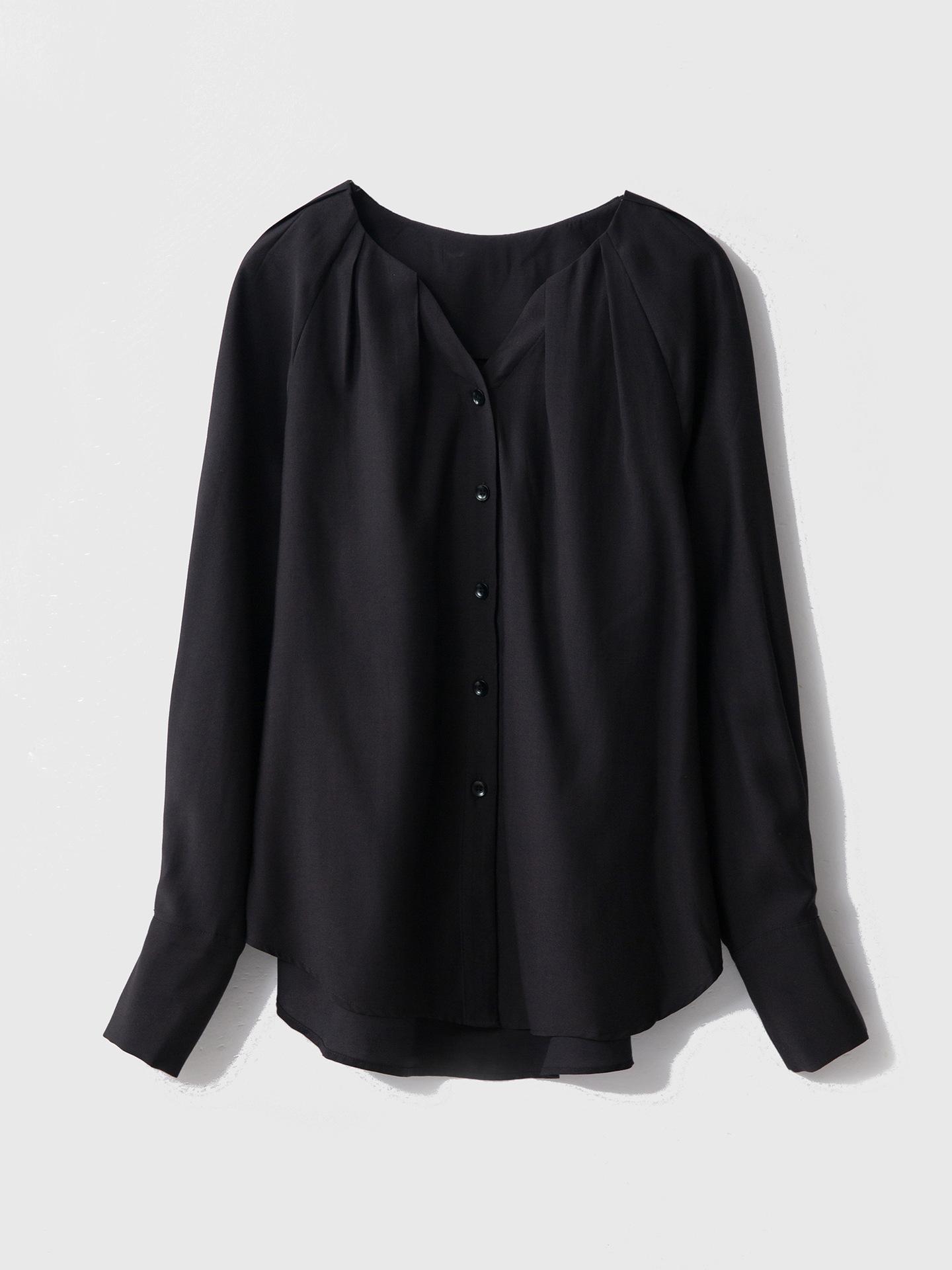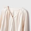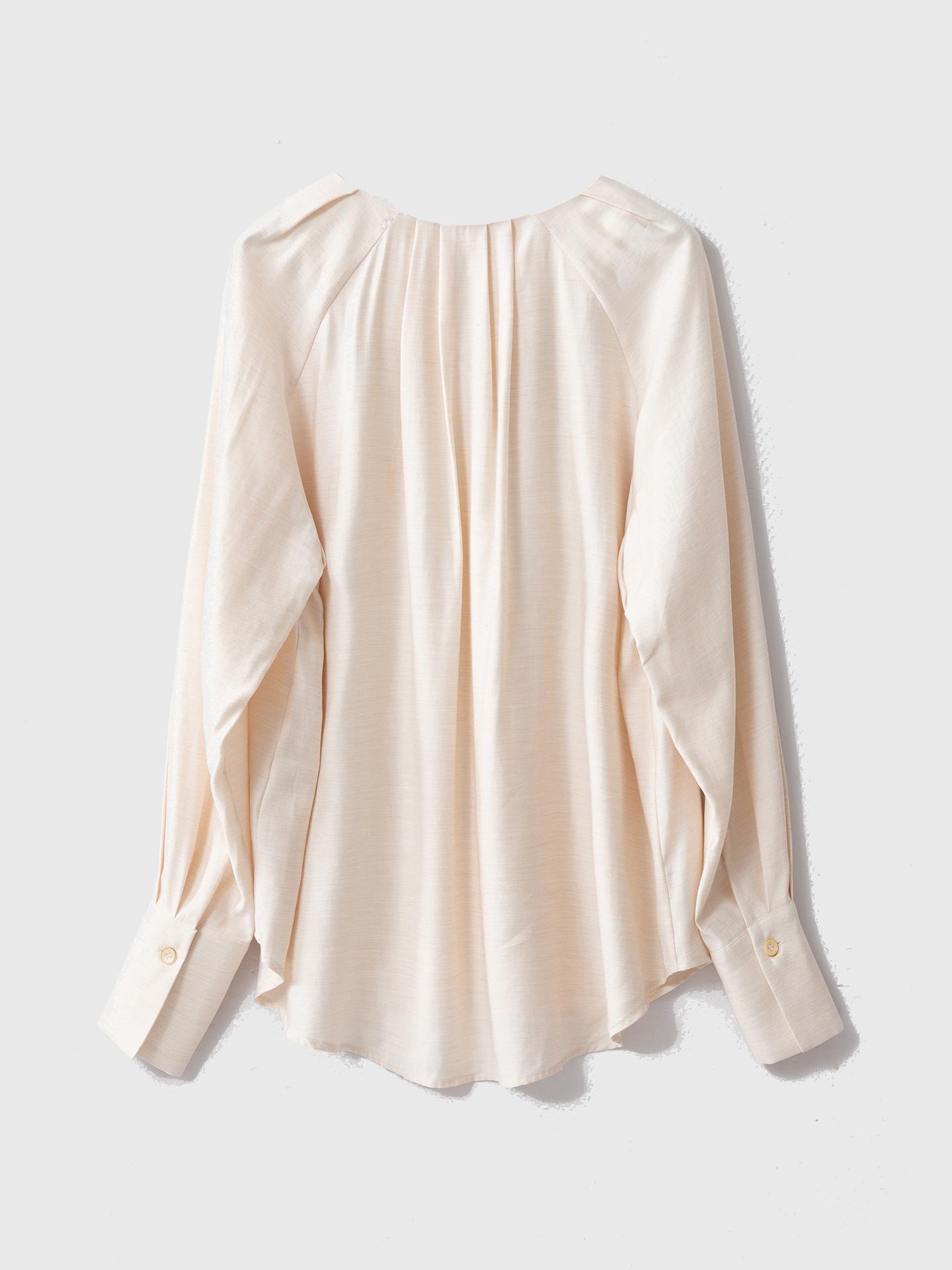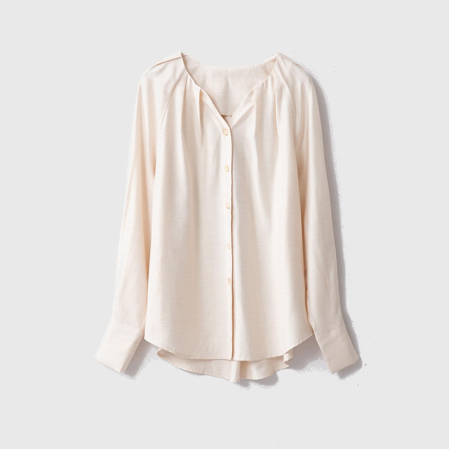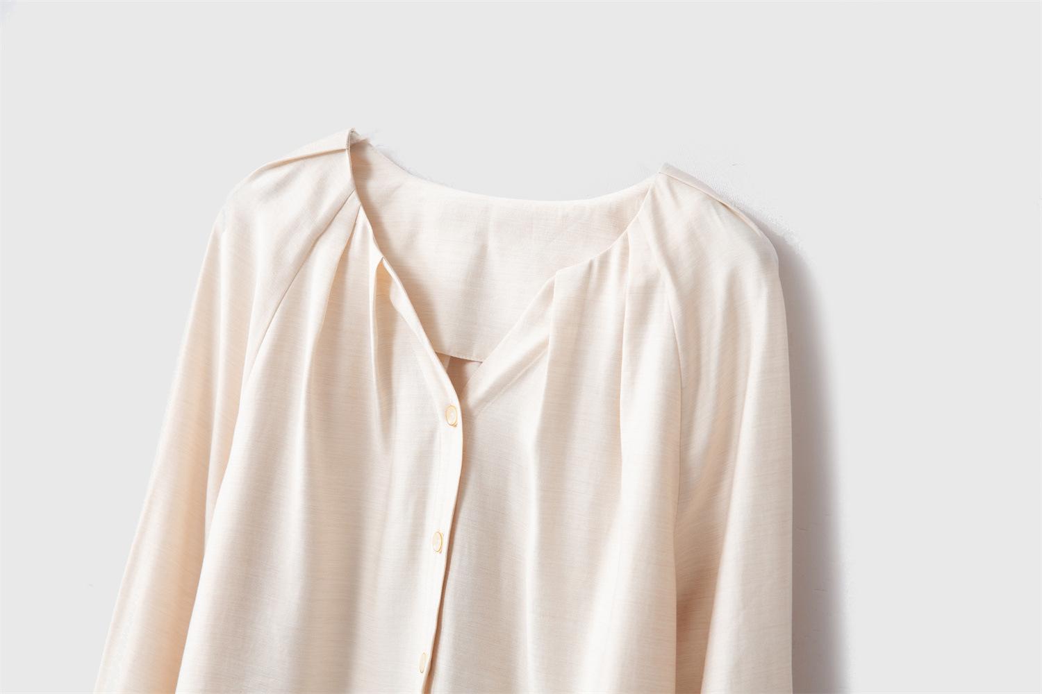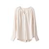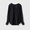 Camisa de cuello en V pequeño para mujer, de mezcla de lana, de color liso, holgada, de manga larga, estilo vintage, informal, para ir al trabajo, nueva primavera