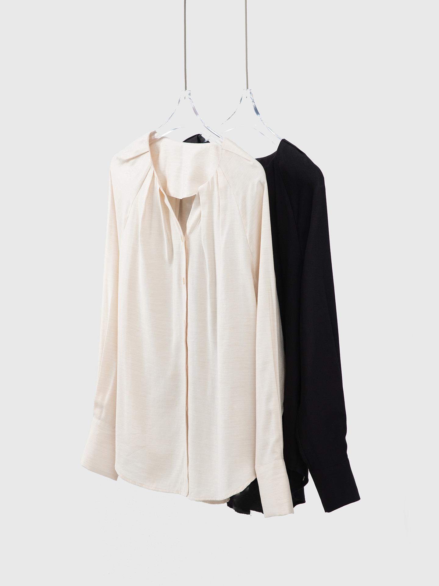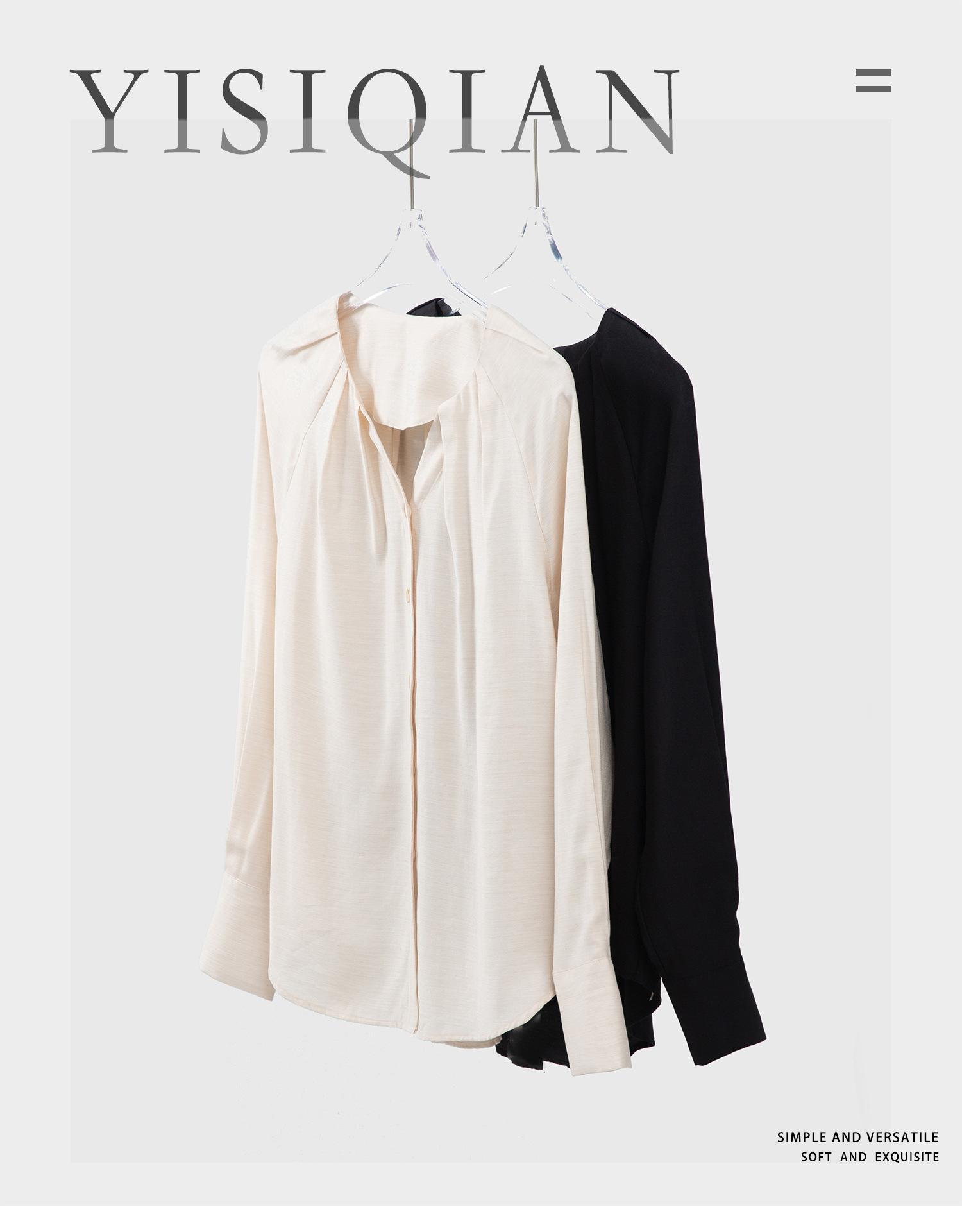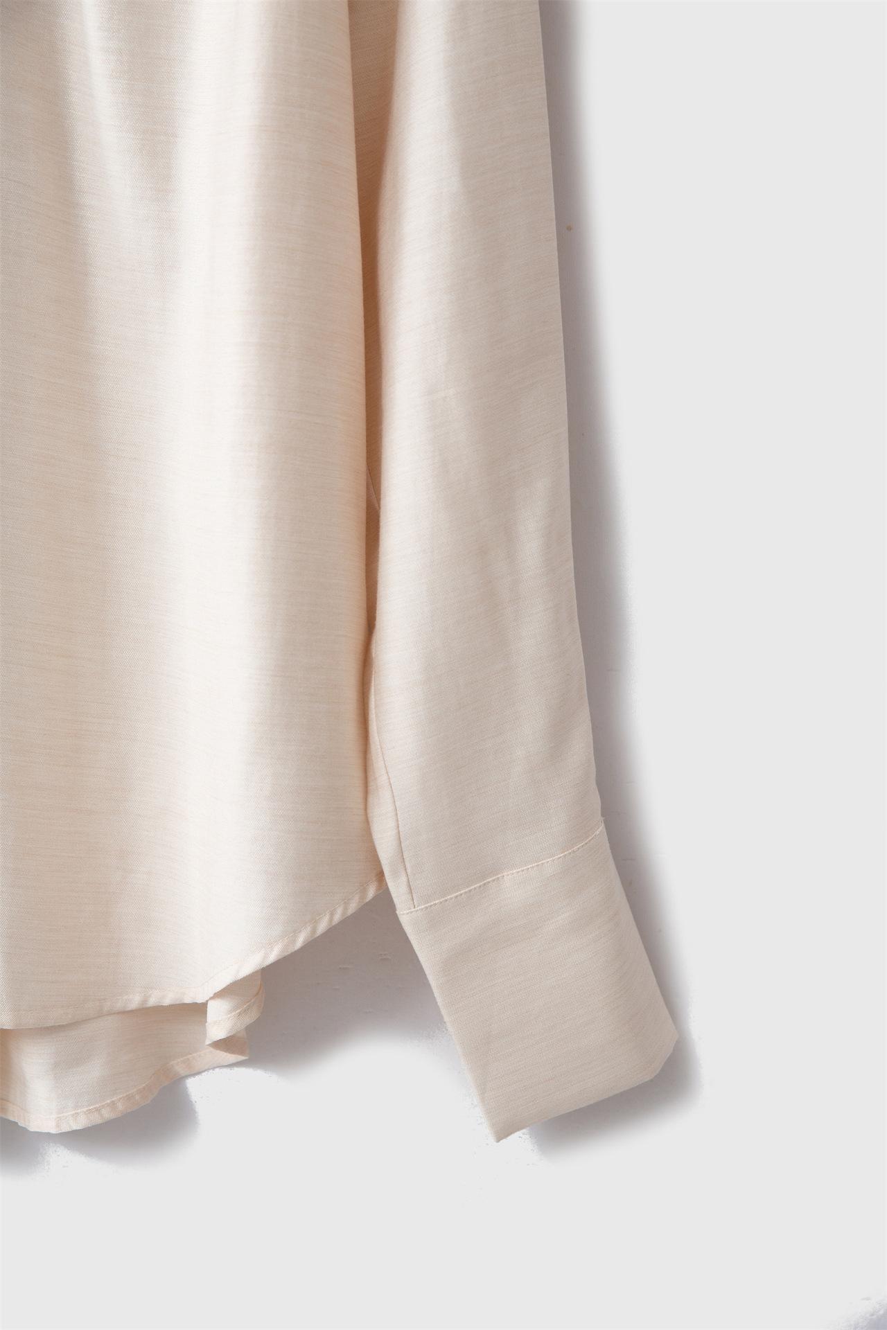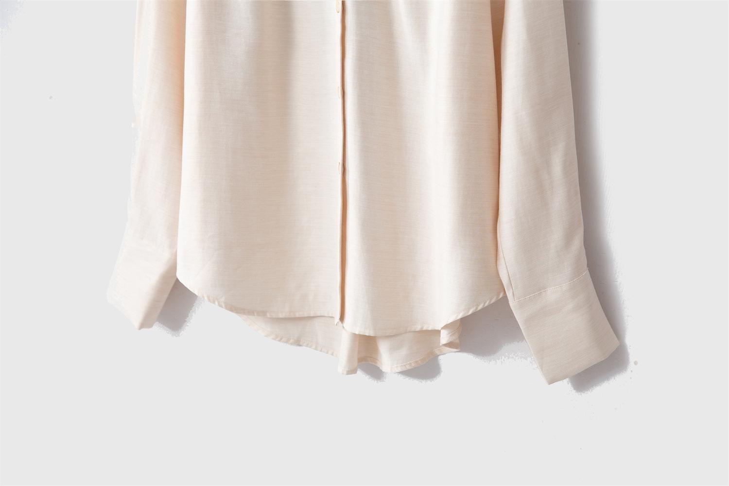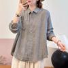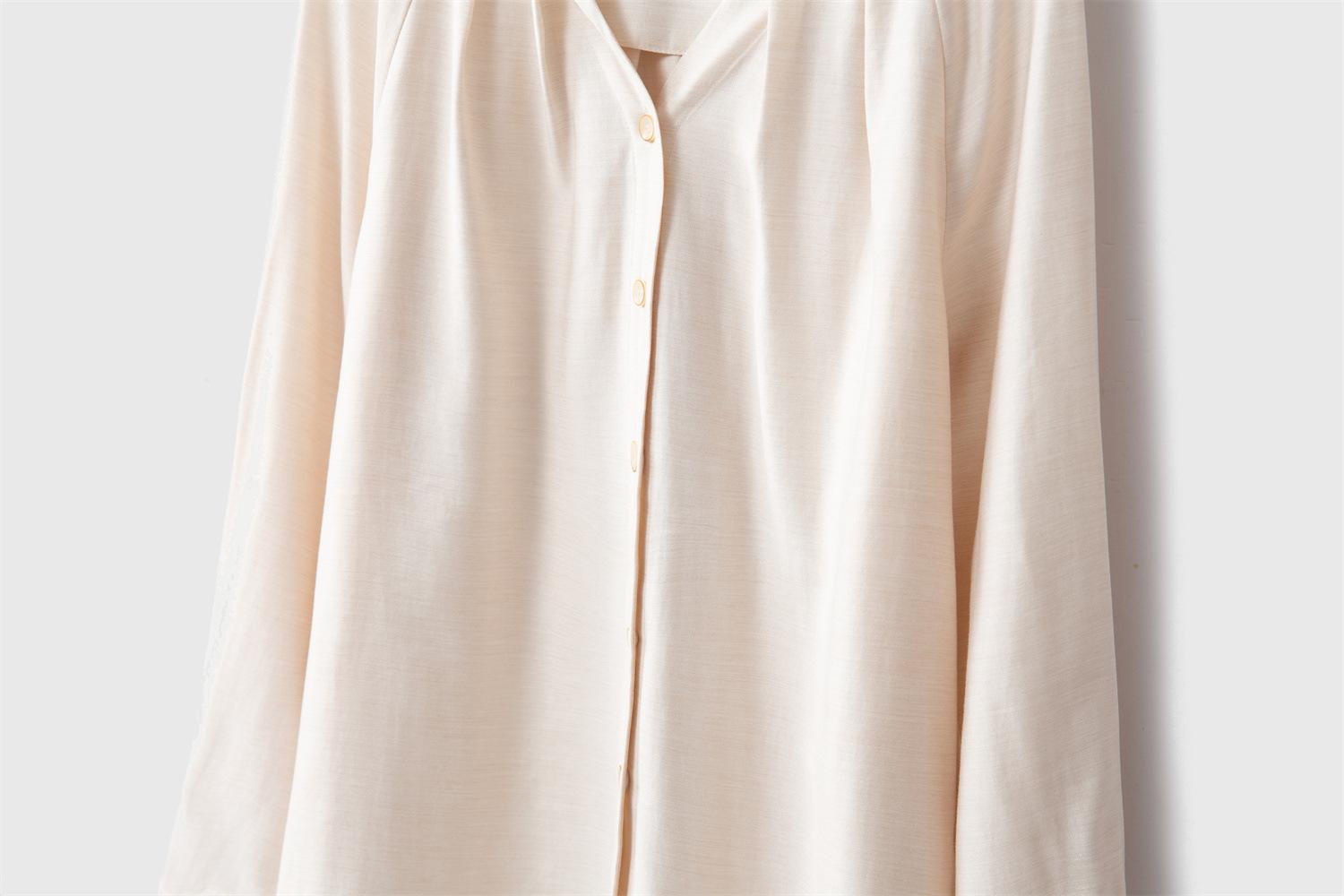 Camisa de cuello en V pequeño para mujer, de mezcla de lana, de color liso, holgada, de manga larga, estilo vintage, informal, para ir al trabajo, nueva primavera