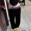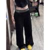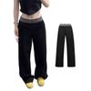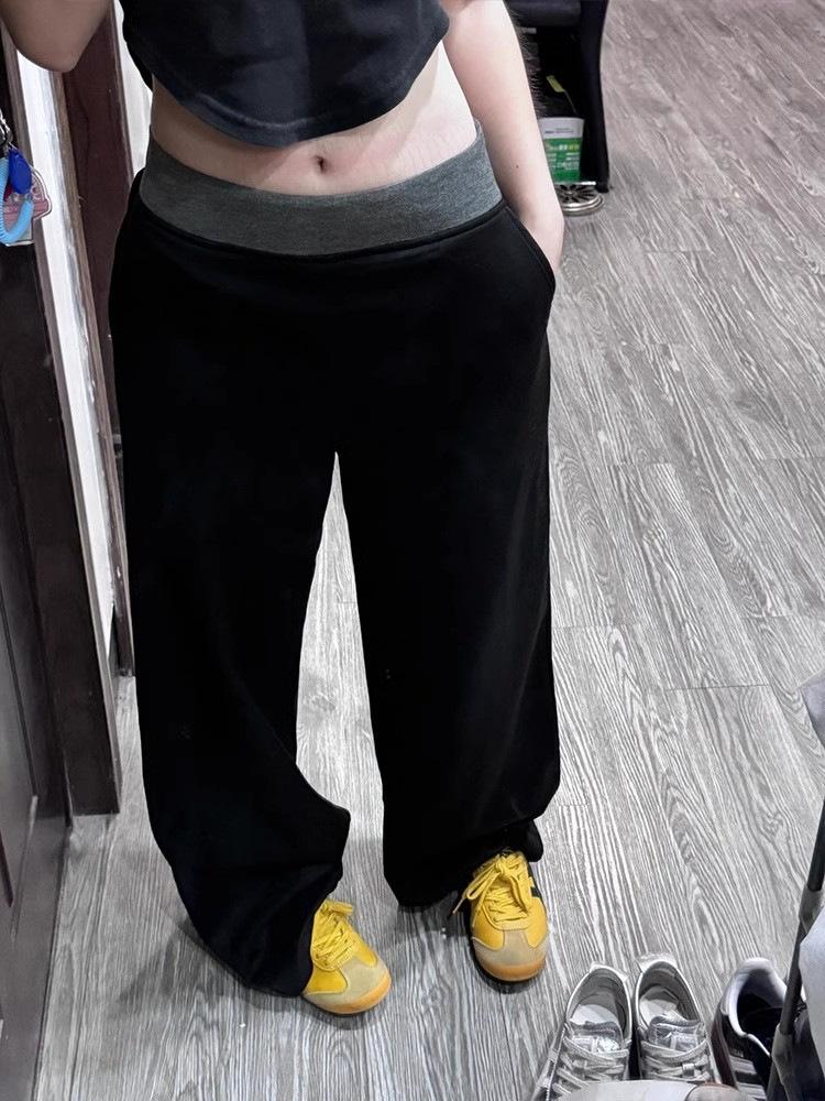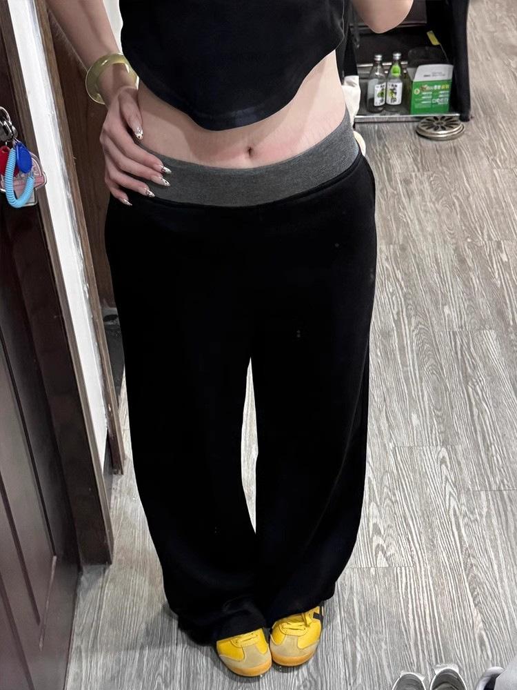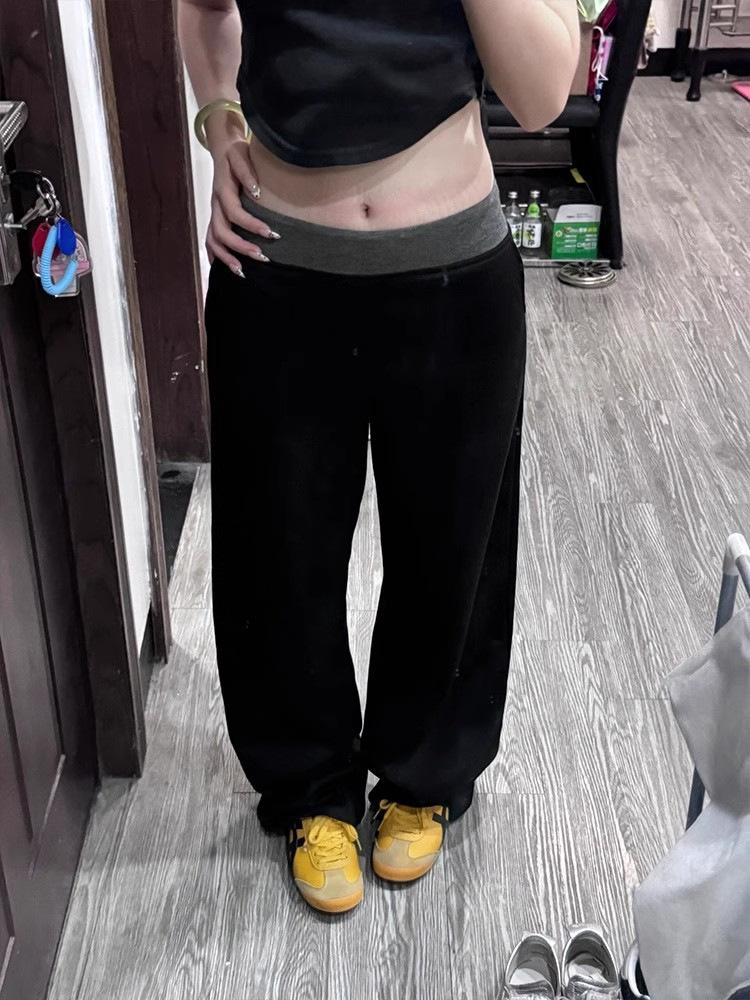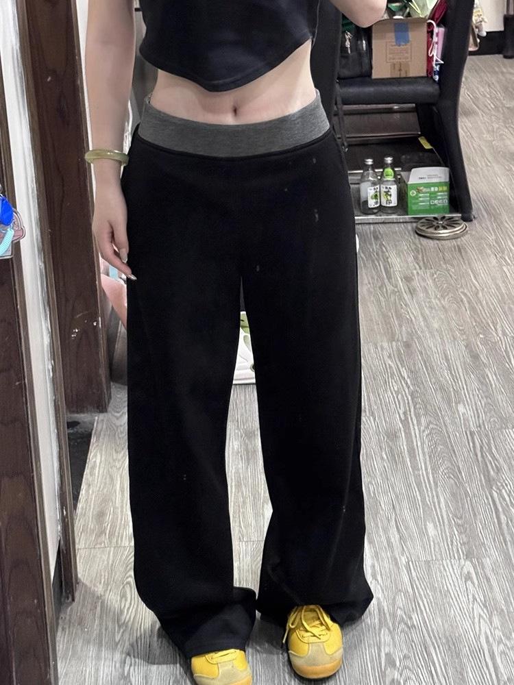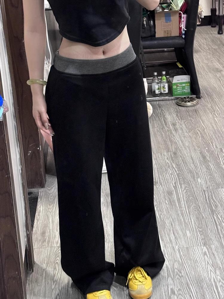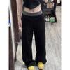 Pantalones casuales de pierna ancha de color contrastante de cintura alta negros para mujer, estilo holgado y perezoso de primavera y otoño, nuevos pantalones deportivos largos transfronterizos americanos