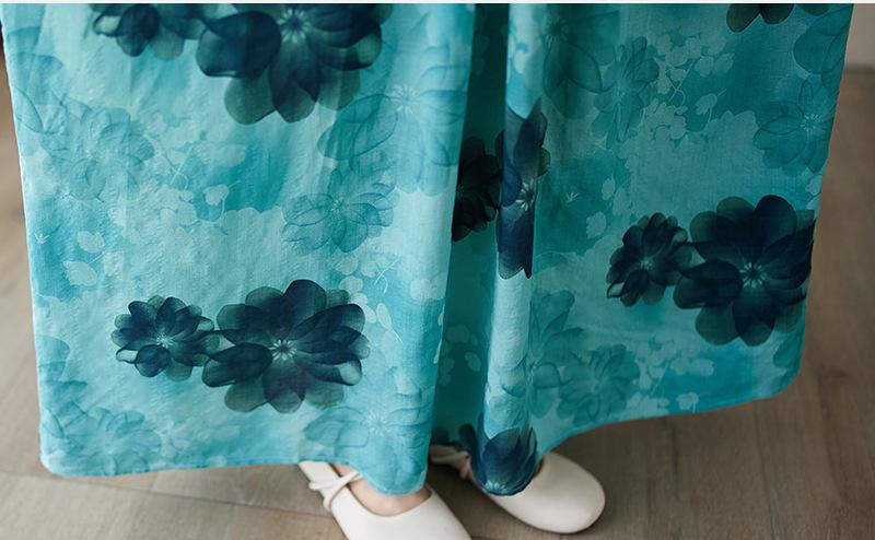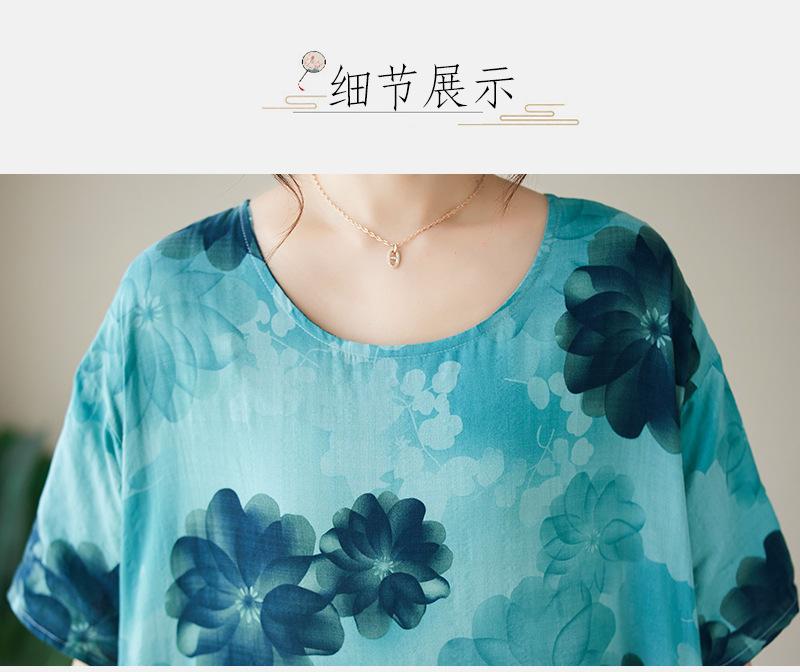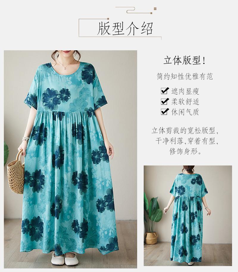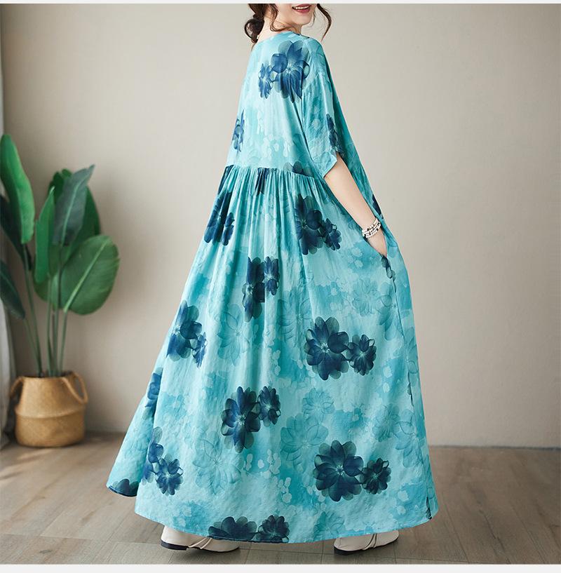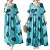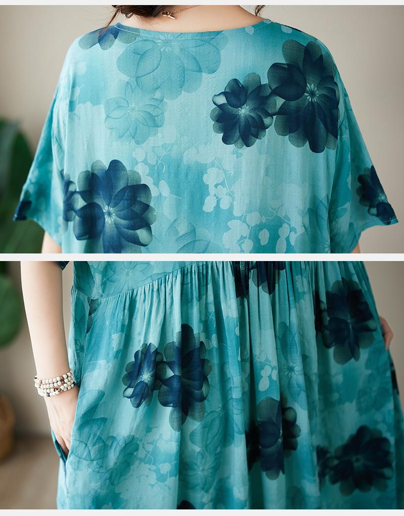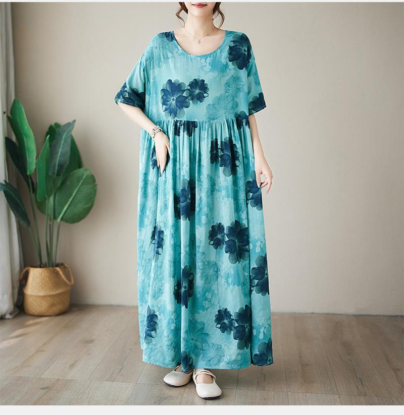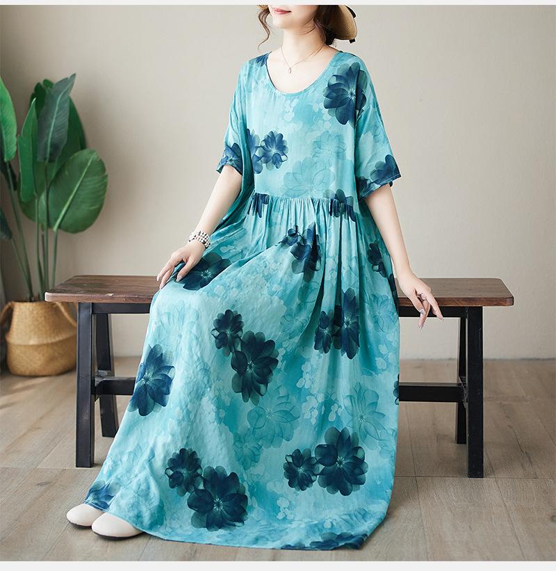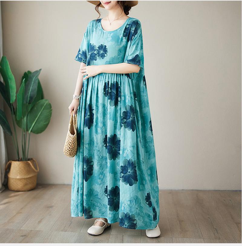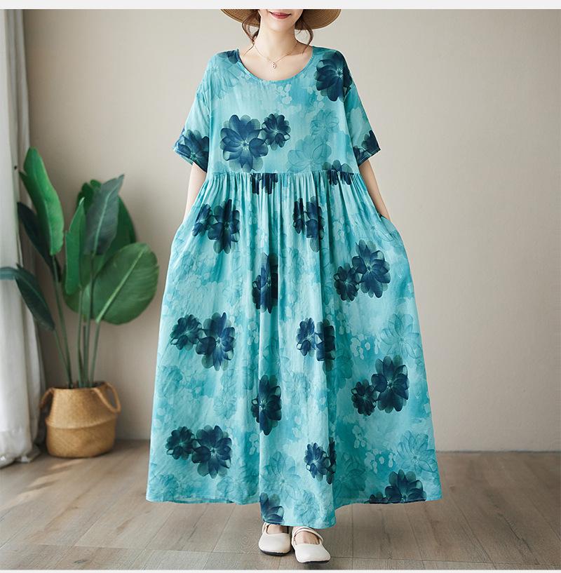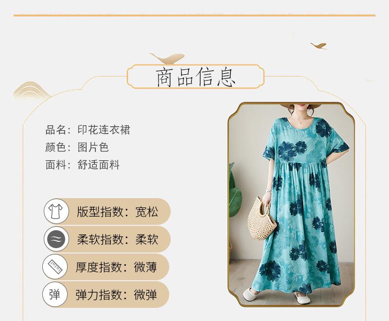 Vestido de verano 2024, nuevo, artístico, retro, suelto, bohemio, de manga corta, cuello redondo, estampado, de longitud media, para mujer