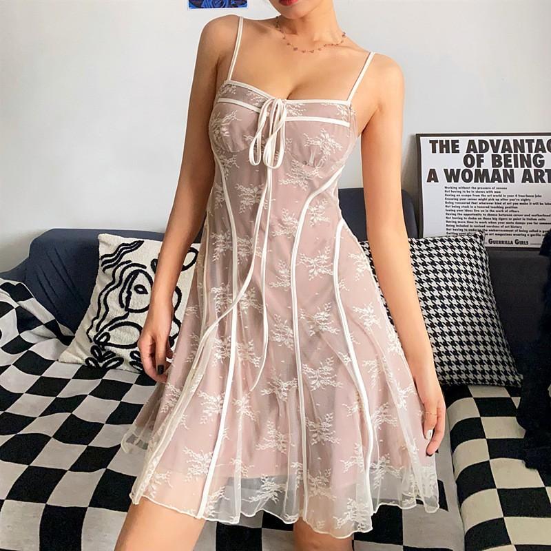 Vestido de verano 2024, nuevo, de moda europea y americana, transfronterizo, sexy, puro, elegante, de malla, ajustado, con encaje
