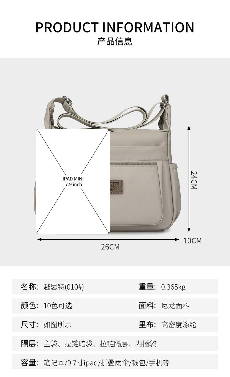 Bolso bandolera para mujer, nuevo estilo 2025, sencillo, de tela de nailon, de gran capacidad, con múltiples bolsillos, para madres de mediana edad.