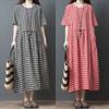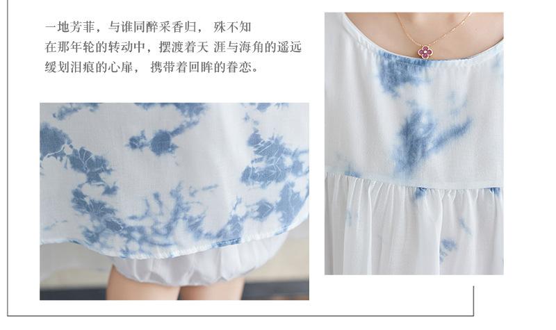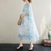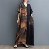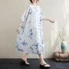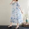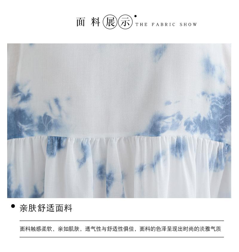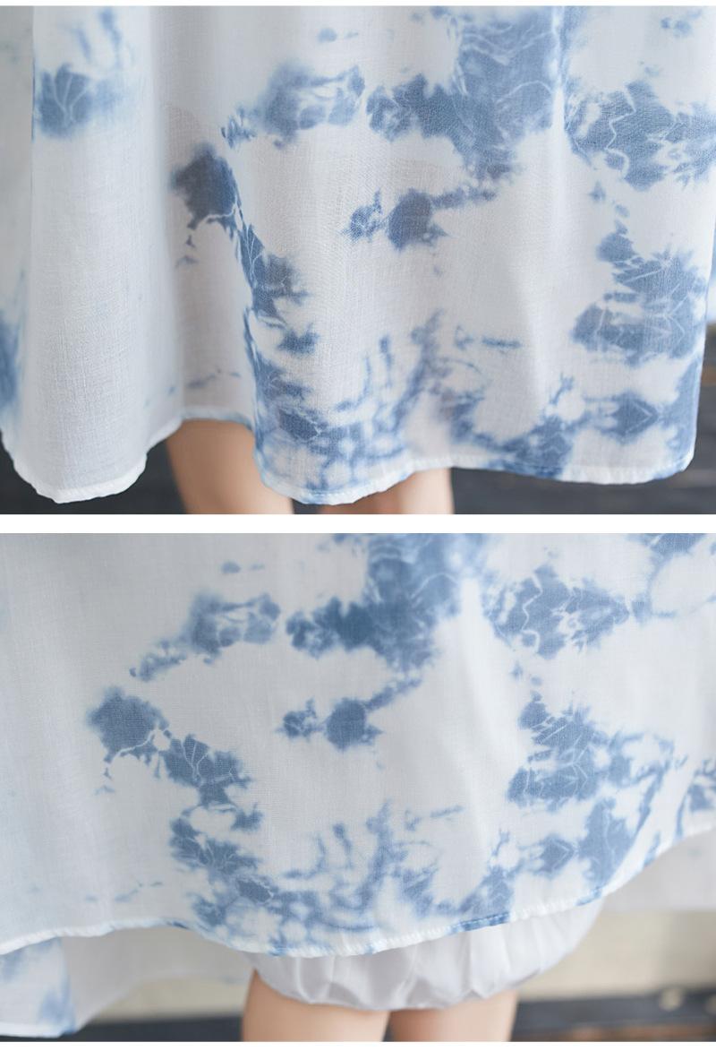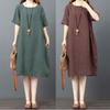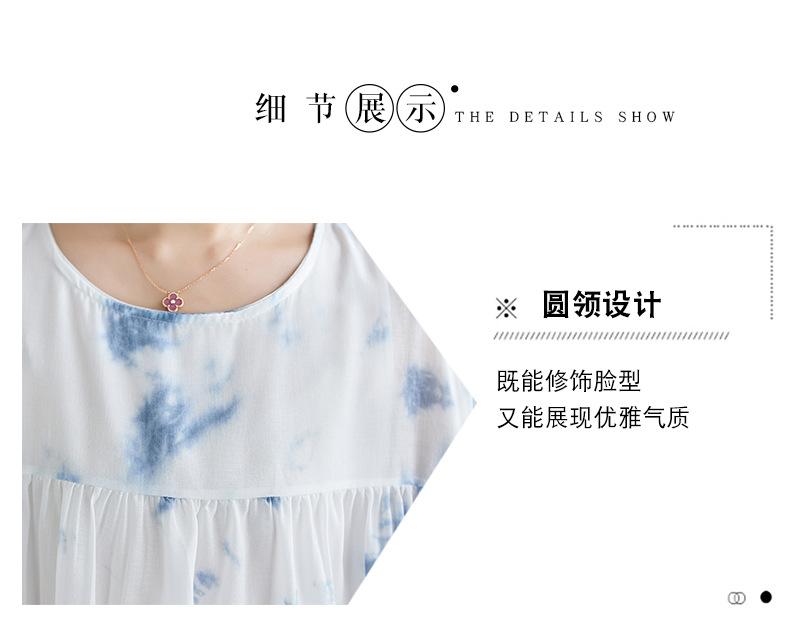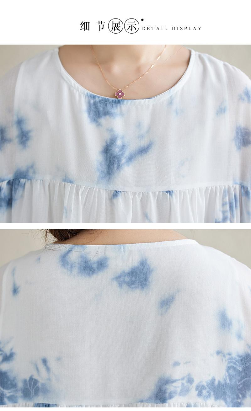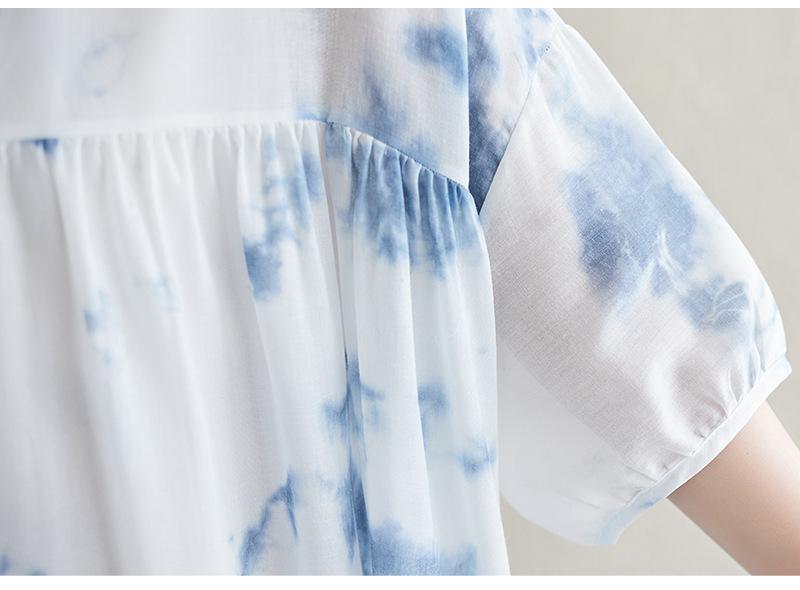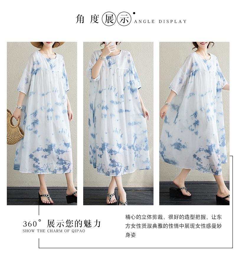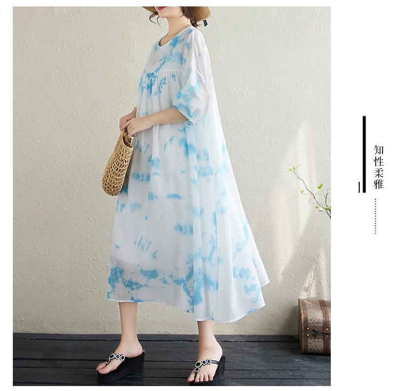 Vestido de verano 2024 de algodón y lino con efecto tie-dye artístico, suelto, de cuello redondo y longitud media para mujer