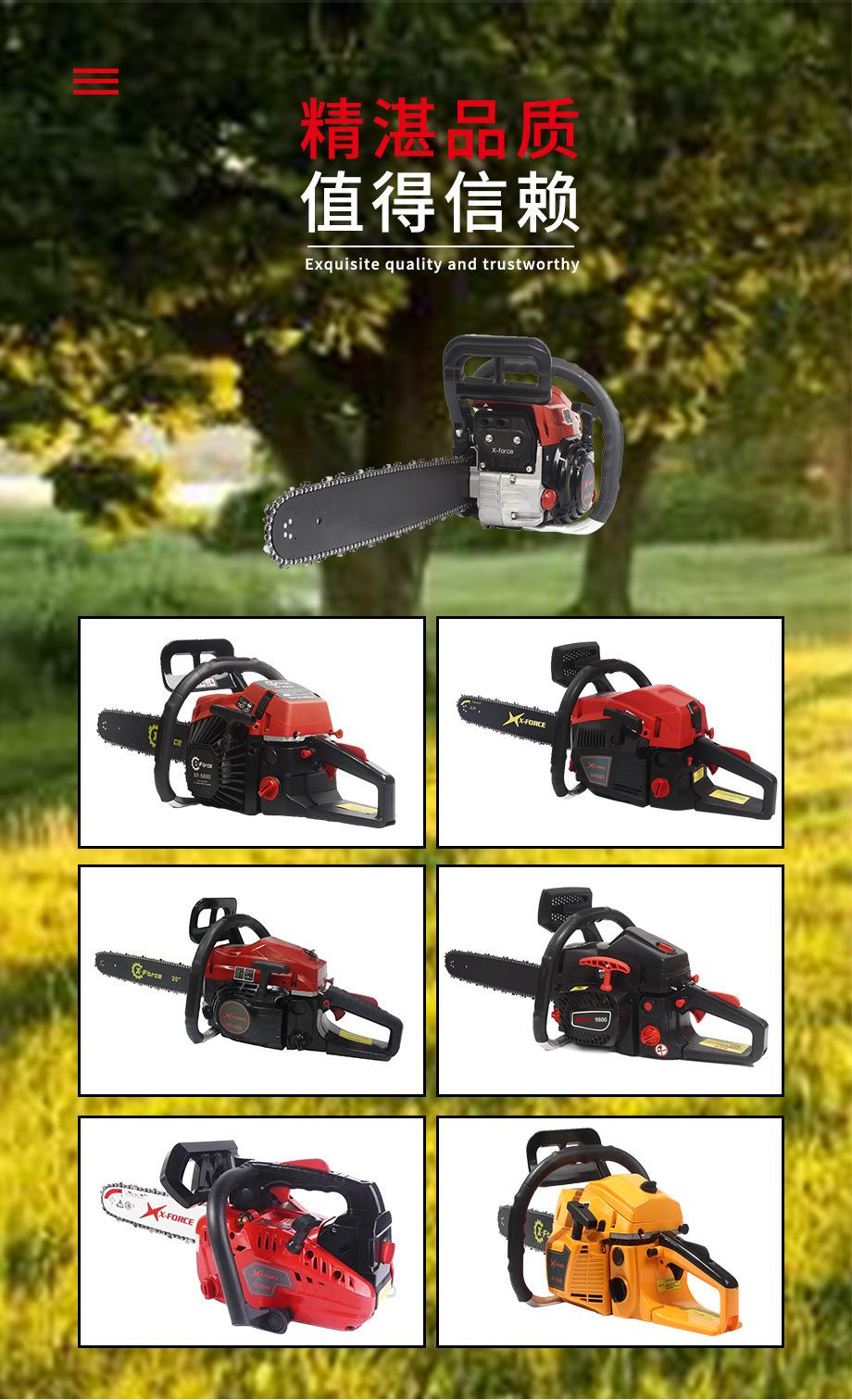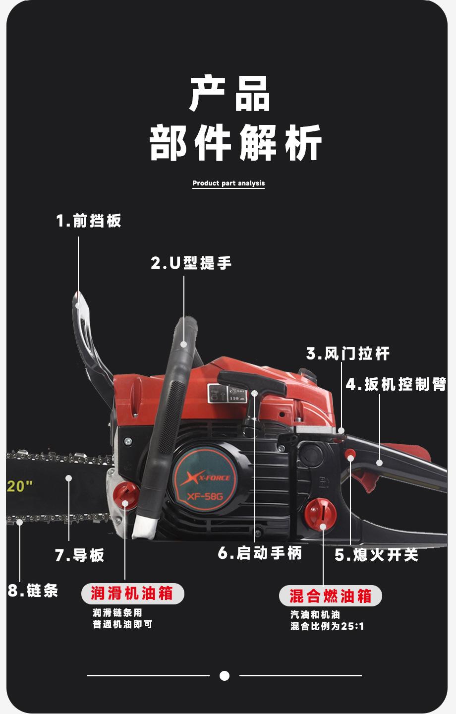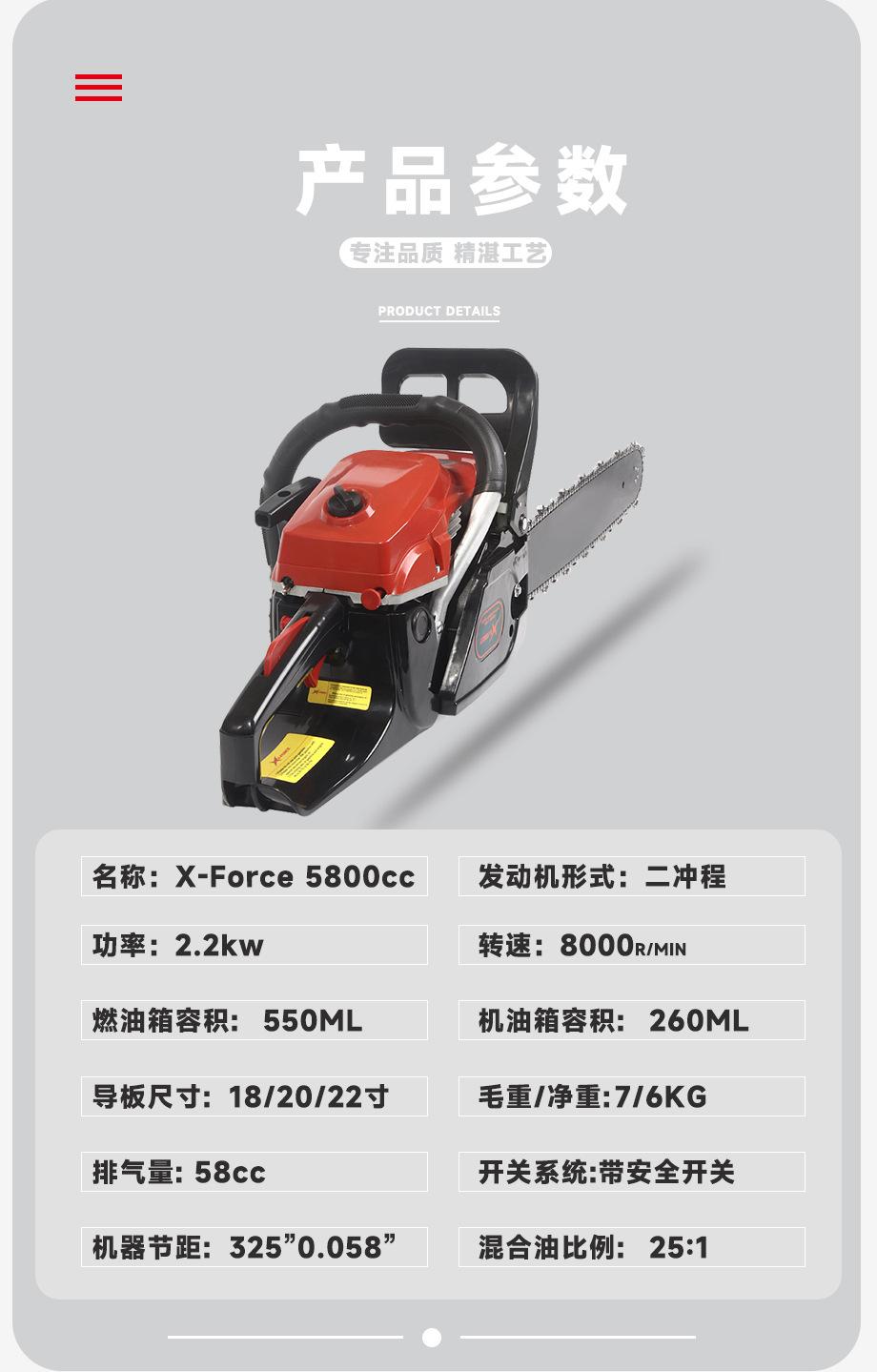 Suministro Exclusivo Transfronterizo de Motosierra Modelo Rubí 58 de Alta Calidad de Dos Tiempos a Gasolina 2.5Kw Motosierra de Alta Potencia para Tala