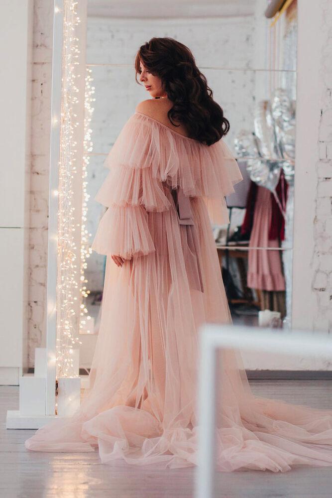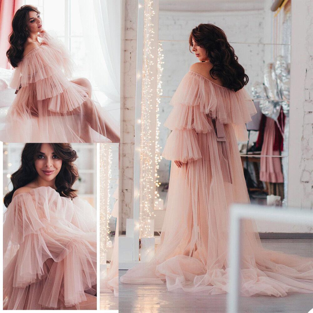 Vestido largo de maternidad con encaje de malla cruzado y cordones en la cola, con hombros descubiertos, multicolor, se puede hacer para apoyar a una generación