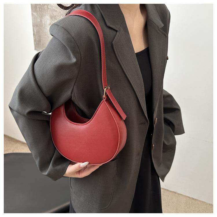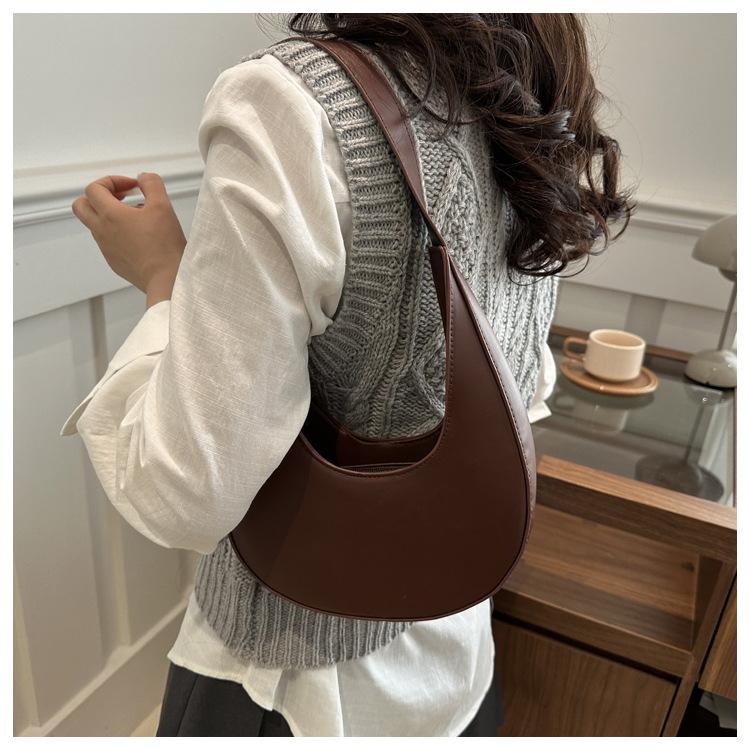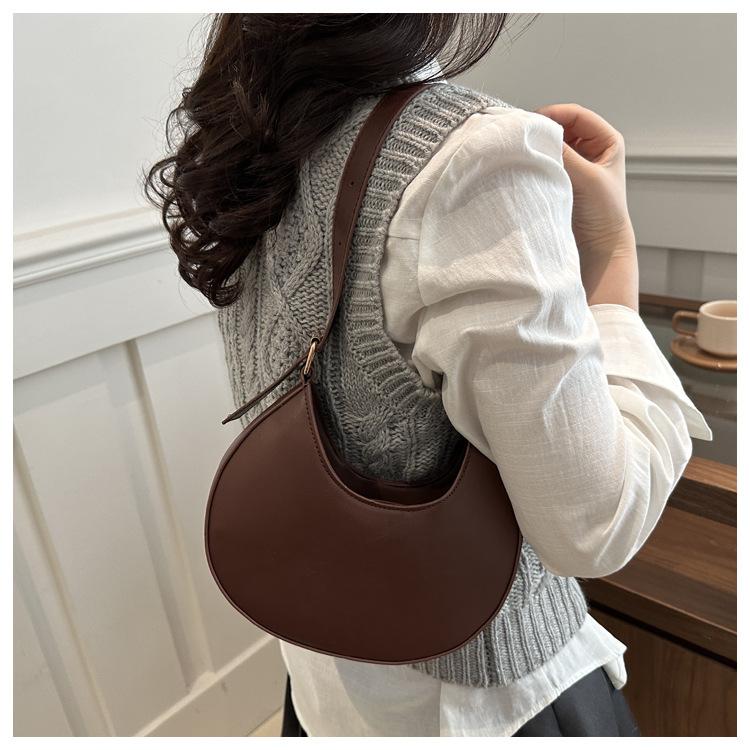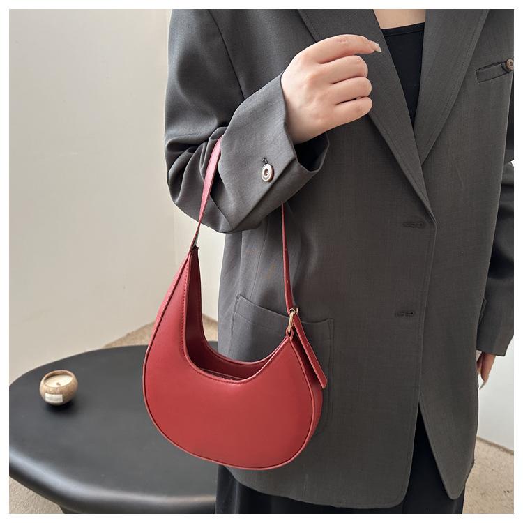 Bolso de media luna nicho simple y moderno para mujer 2025 nuevo estilo de primavera personalizado color sólido popular de un solo hombro axilar