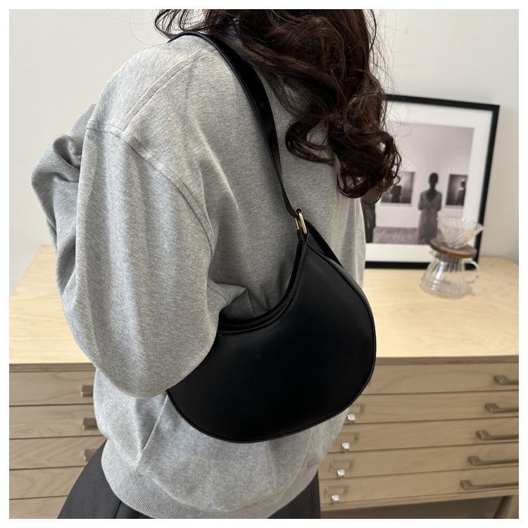 Simple Moda Nicho Media Luna Bolso Media Luna Mujer 2025 Nuevo Primavera Elegante Único Color Sólido Popular Hombro Axila