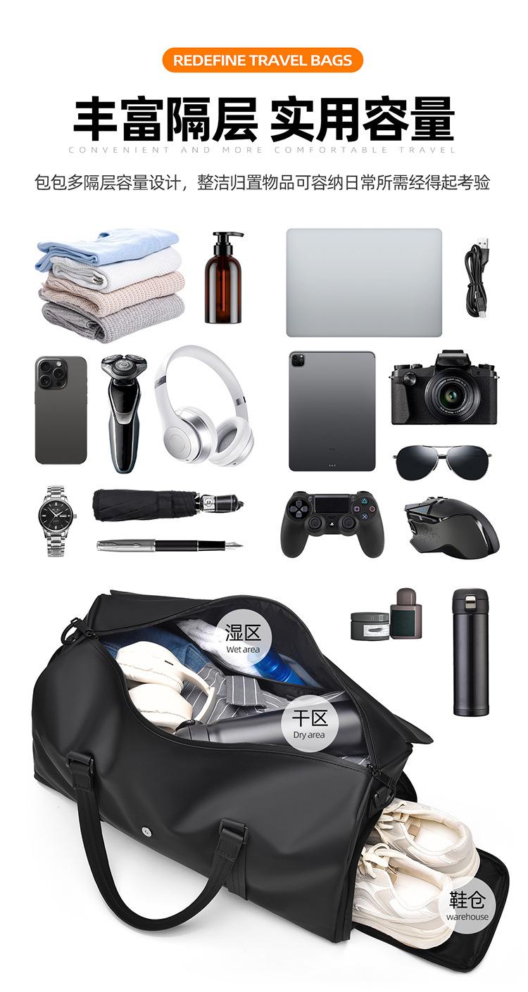 Bolsa de viaje transfronteriza de gran capacidad para corta distancia, sencilla y de ocio, bolsa de fitness con separación seca y húmeda, se puede fijar a una maleta con ruedas, bolsa de almacenamiento para equipaje