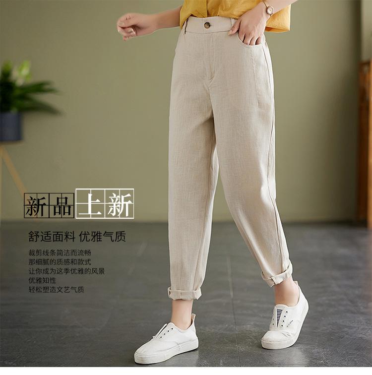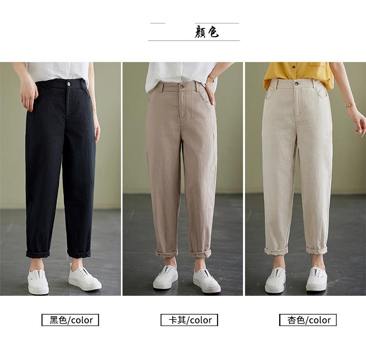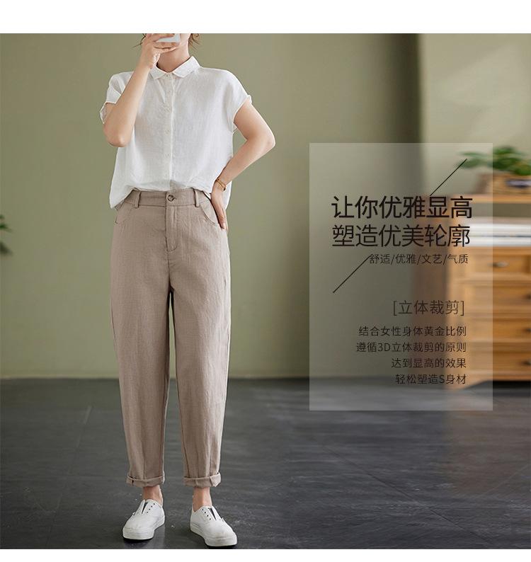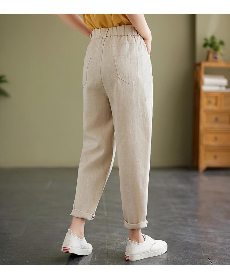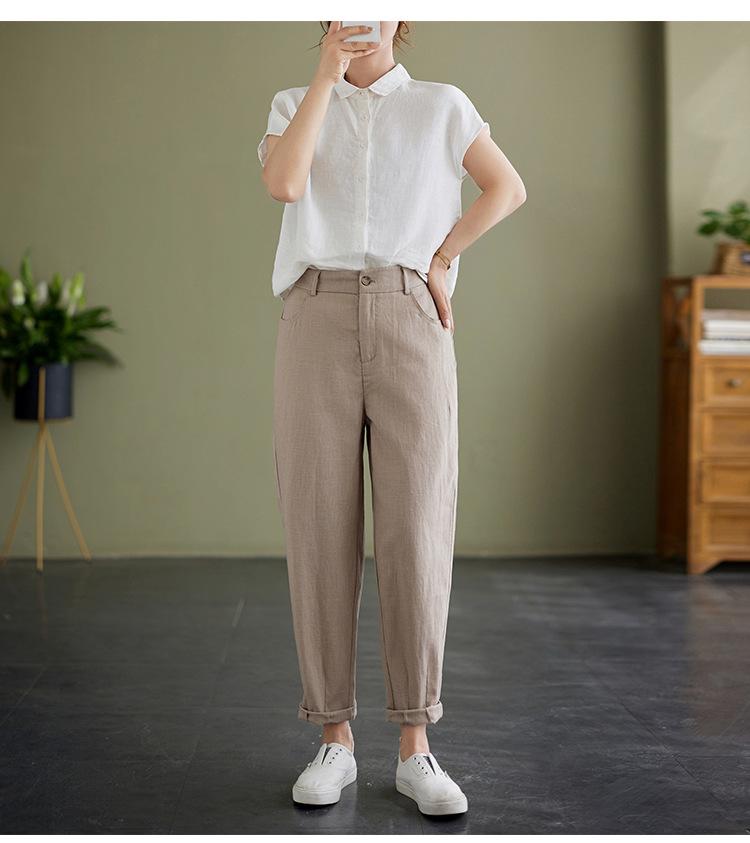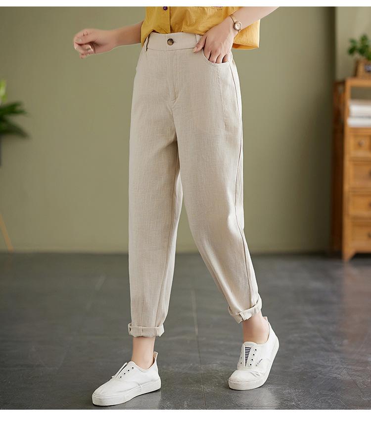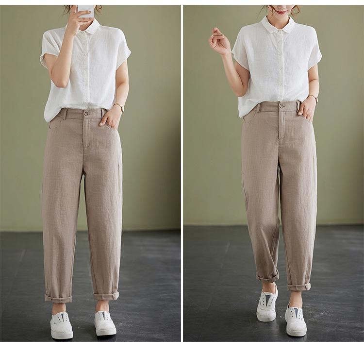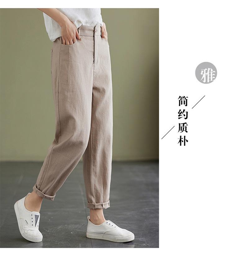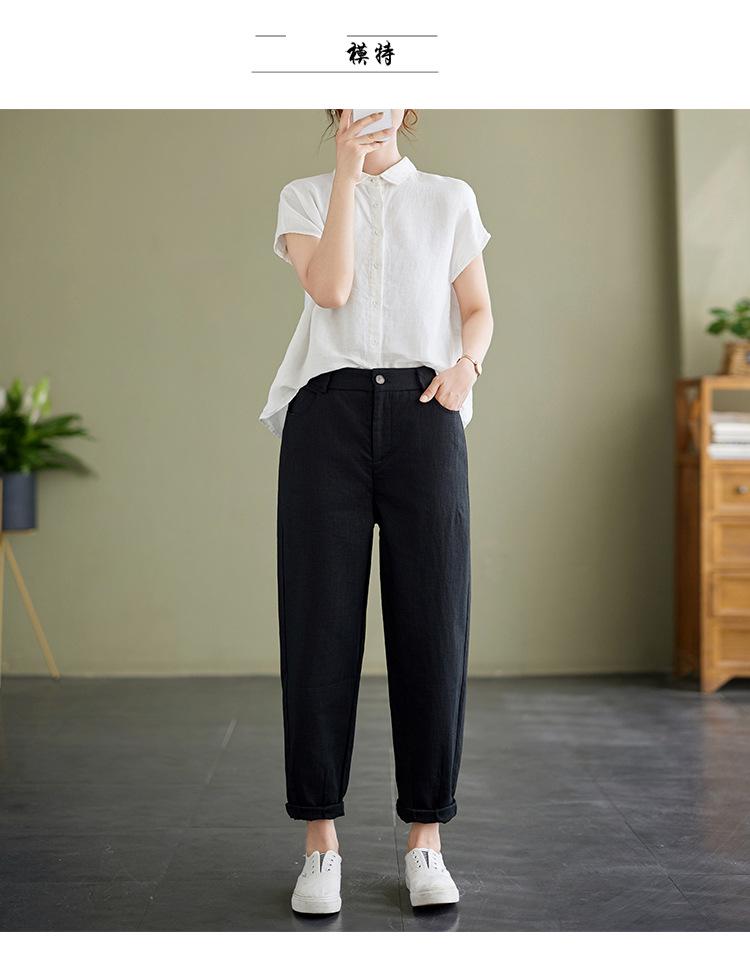 Pantalones Haren holgados, informales, adelgazantes, de algodón y lino, estilo artístico, de verano 2024, para mujer
