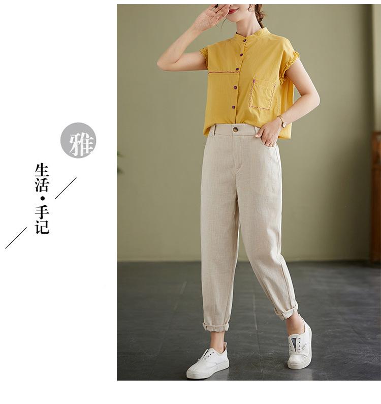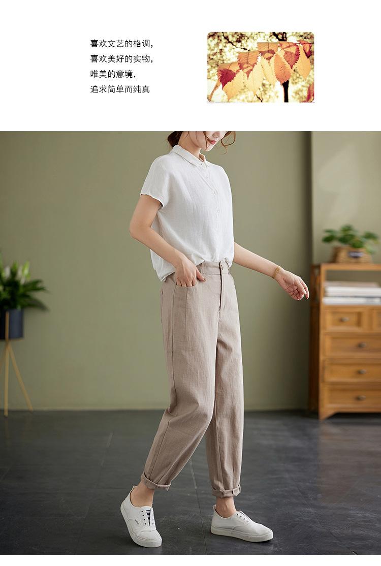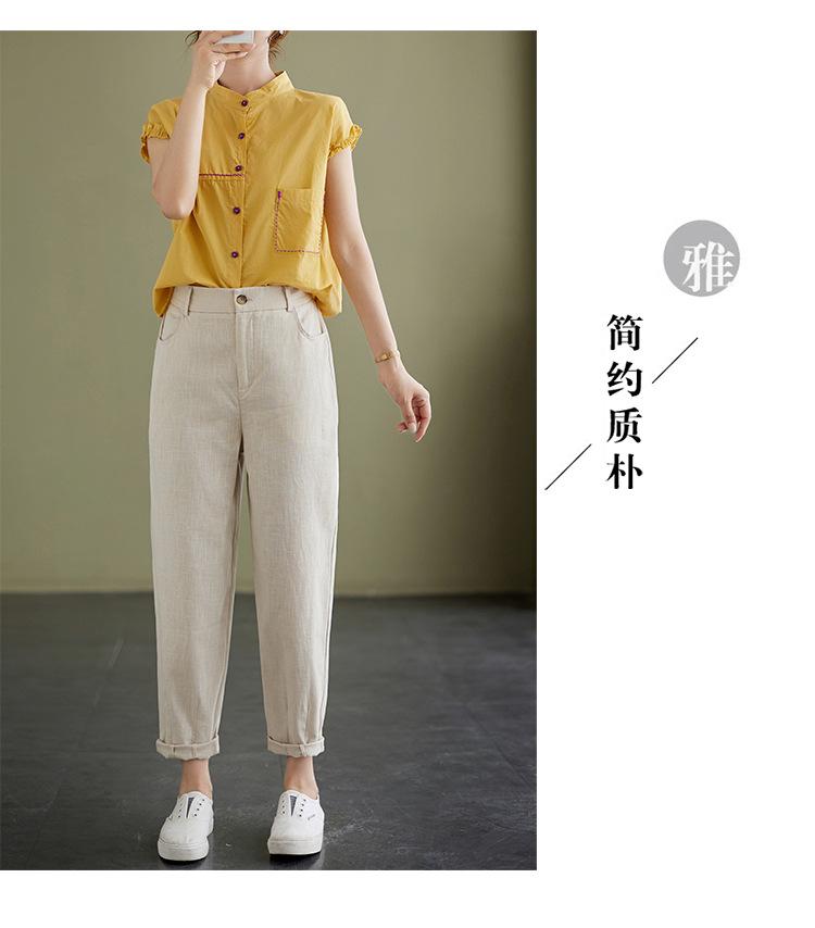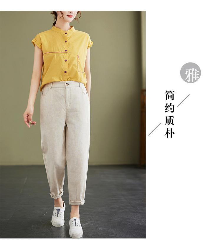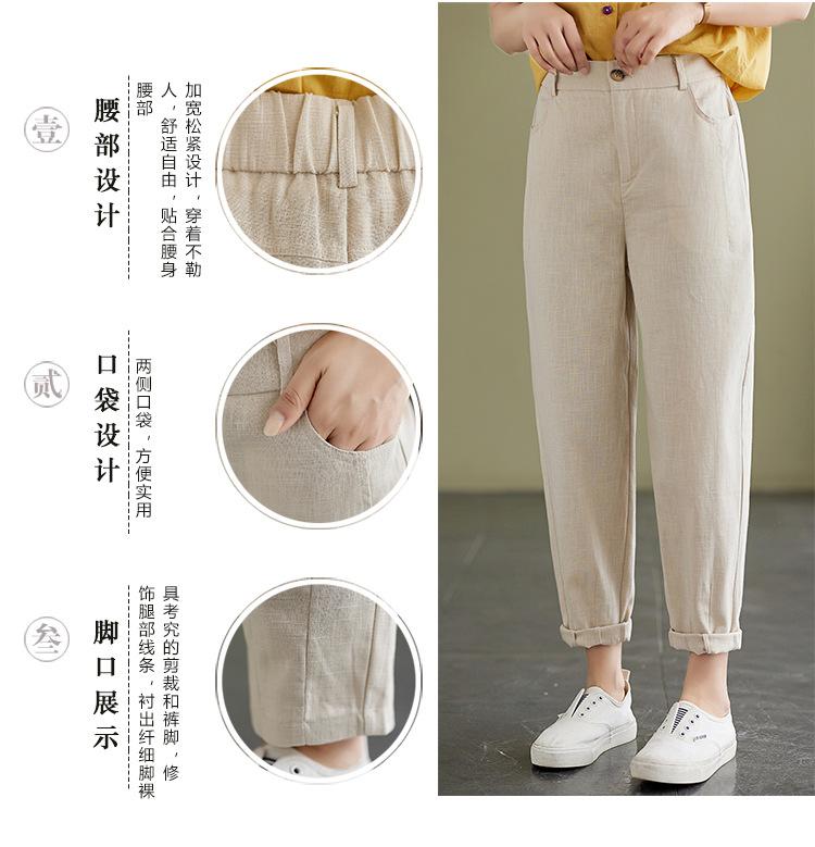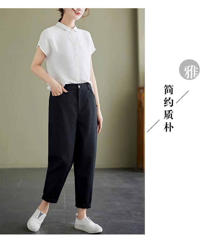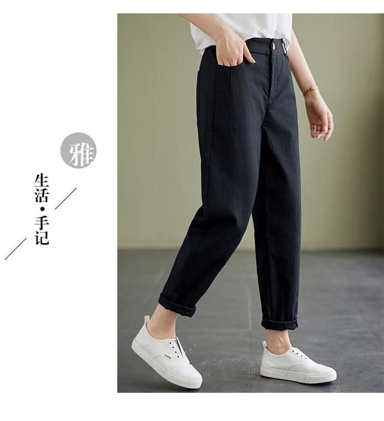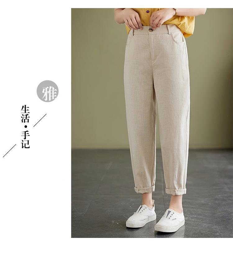 Pantalones Haren holgados, informales, adelgazantes, de algodón y lino, estilo artístico, de verano 2024, para mujer