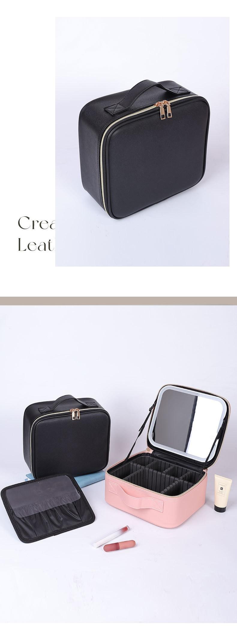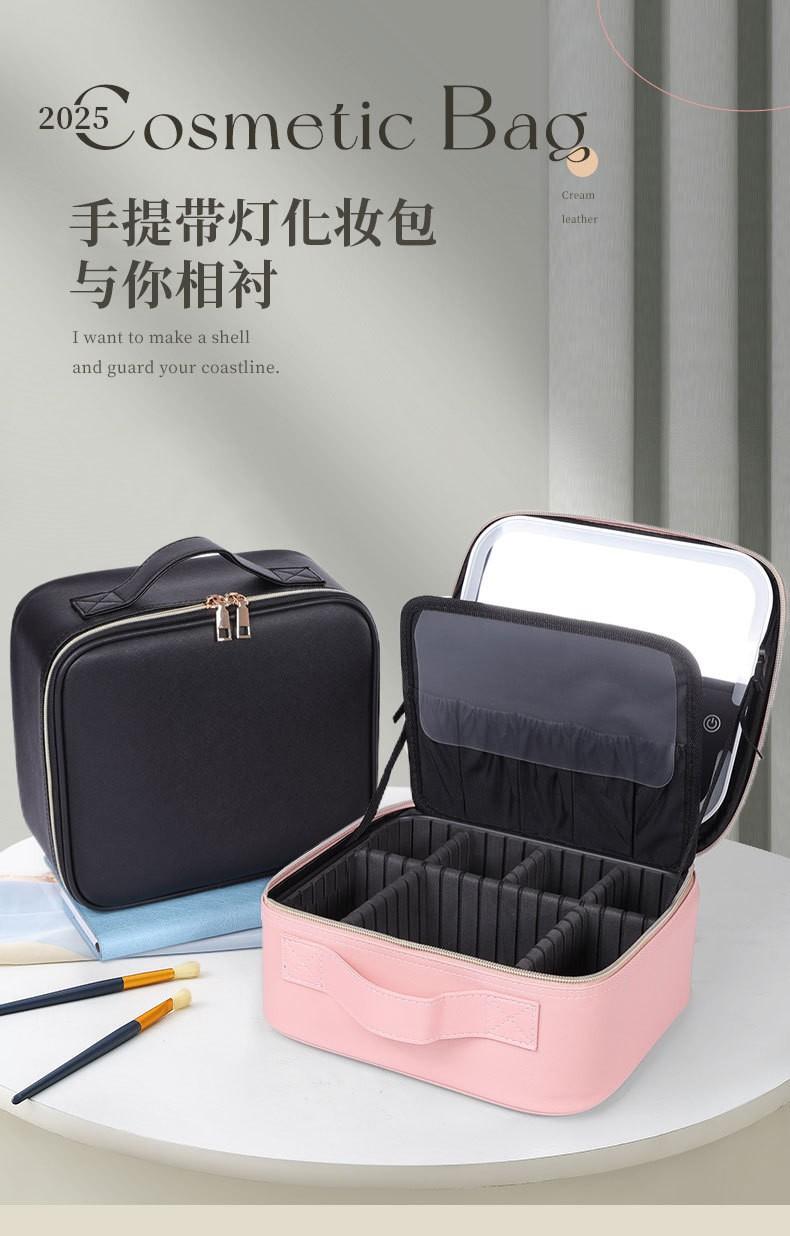 Estuche para cosméticos con luz y espejo, bolsa de cosméticos de alta gama, bolsa de almacenamiento portátil de gran capacidad, bolsa multicapa portátil de alto valor