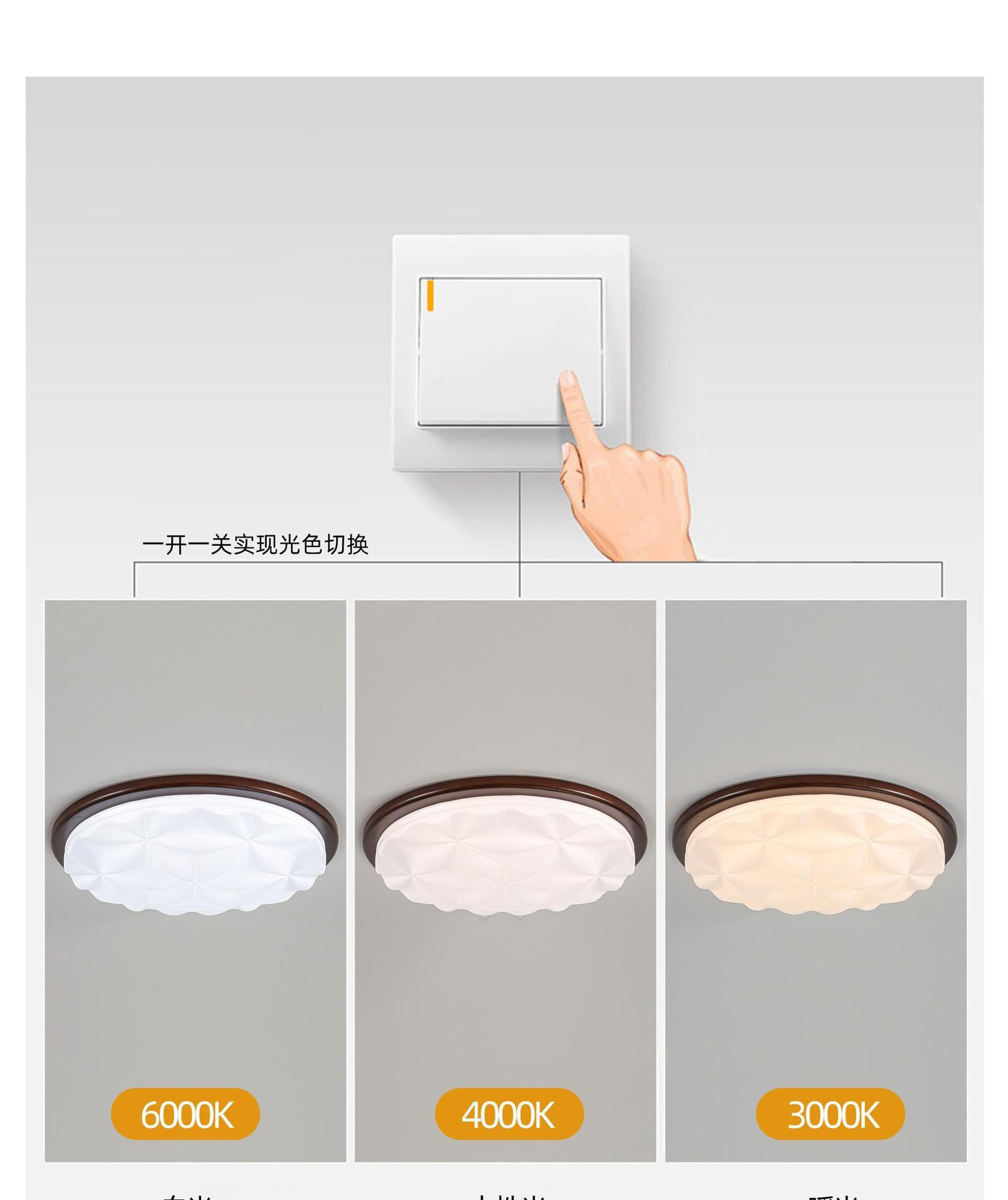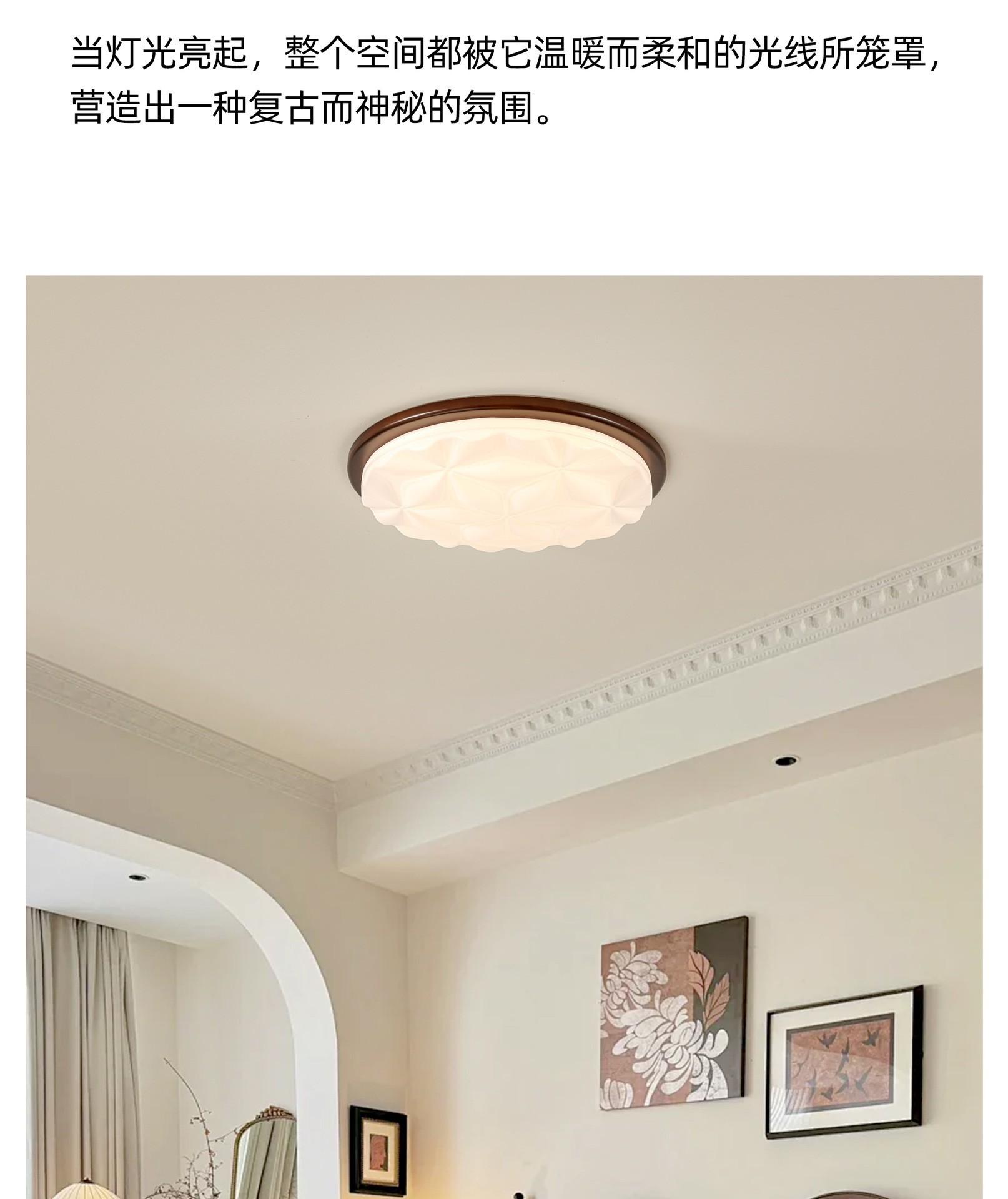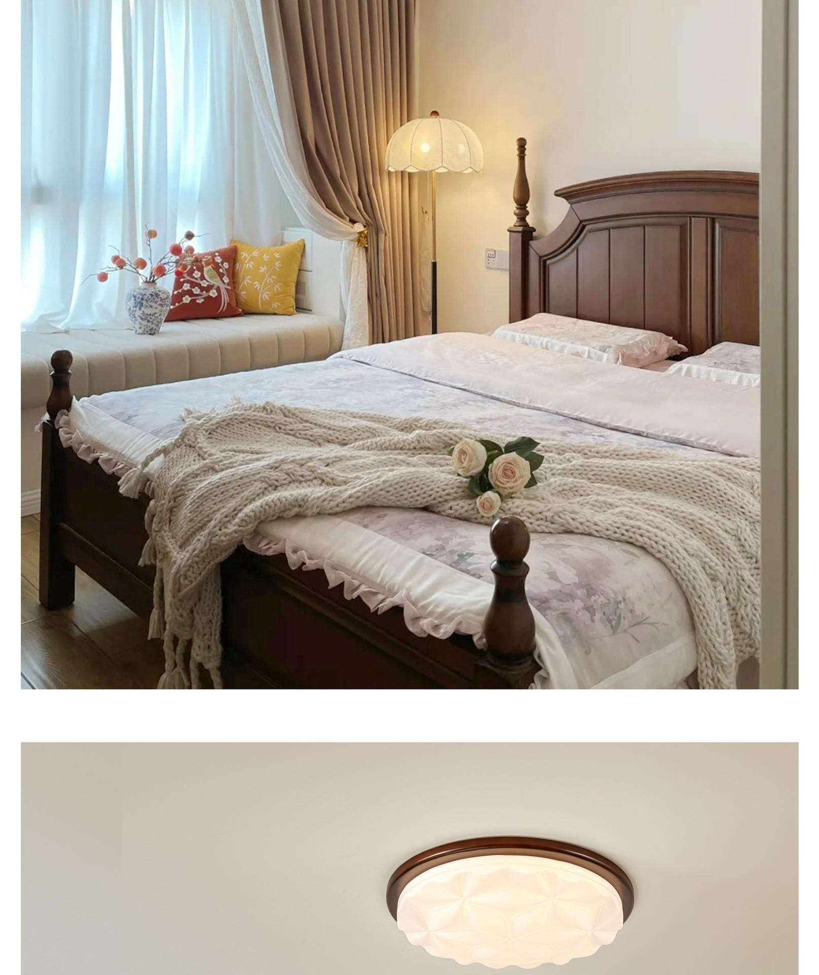 Lámpara de techo de espectro completo para dormitorio, estilo antiguo, color nogal, lámpara de alta gama, protección ocular, lámpara de estudio artística personalizada.