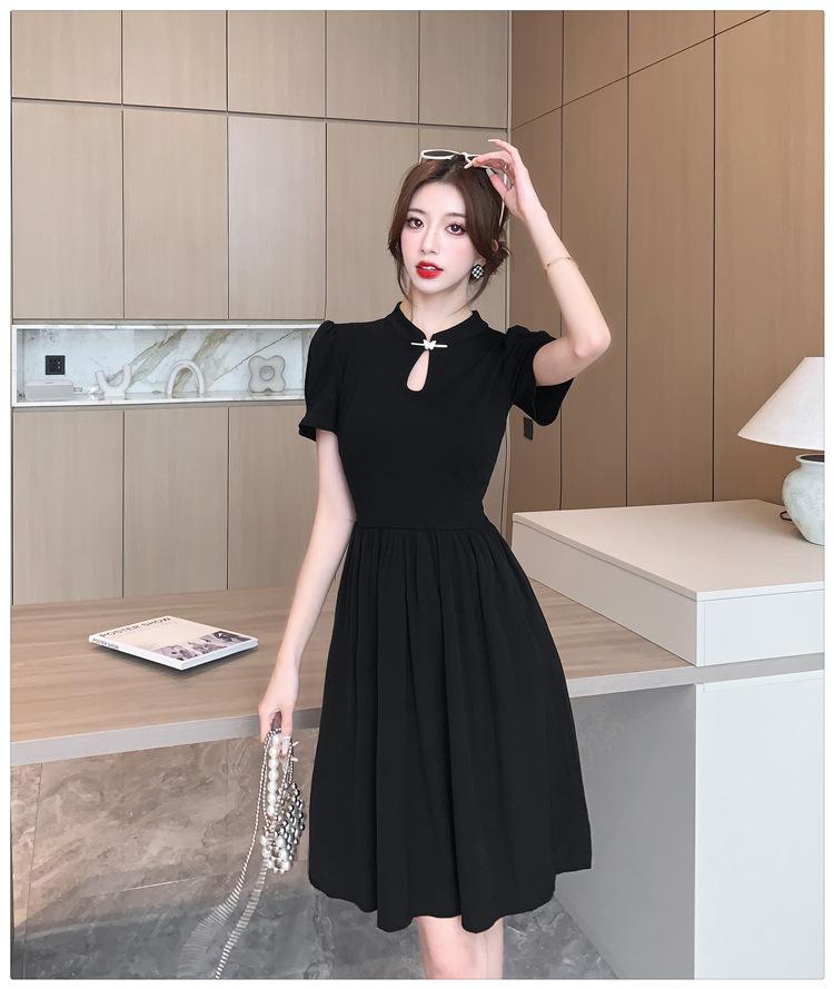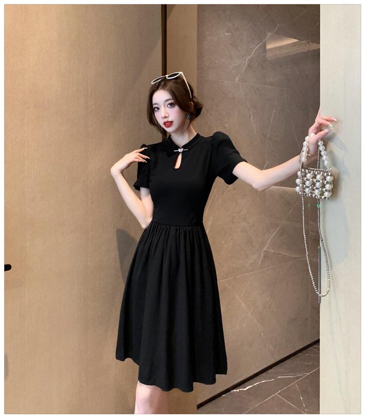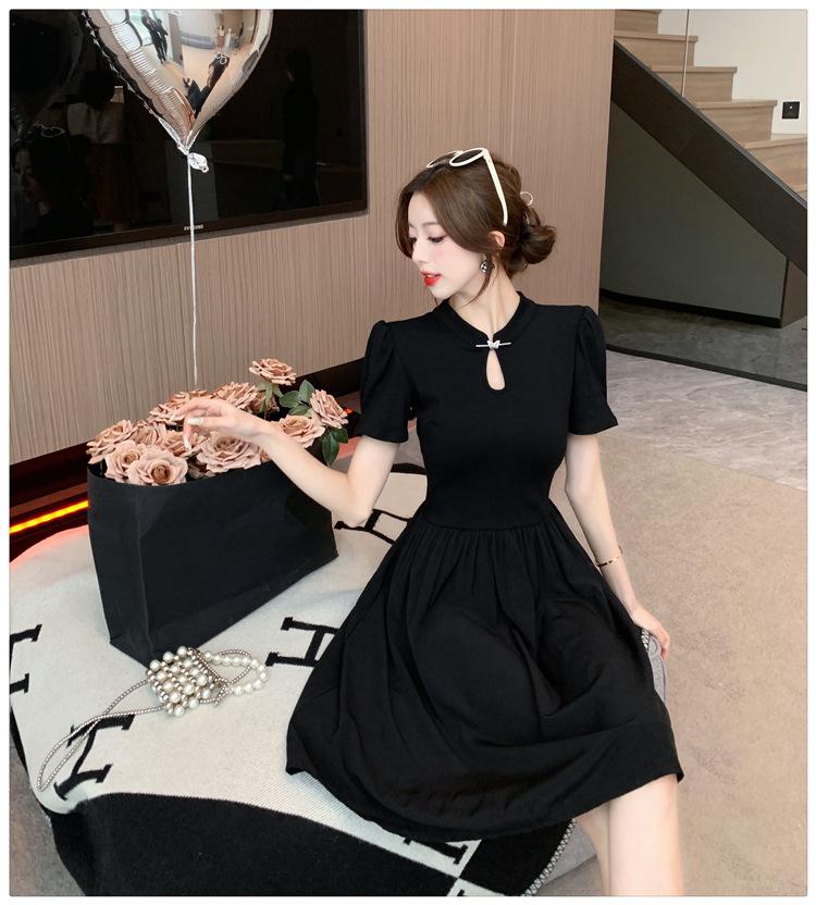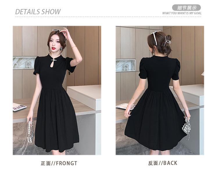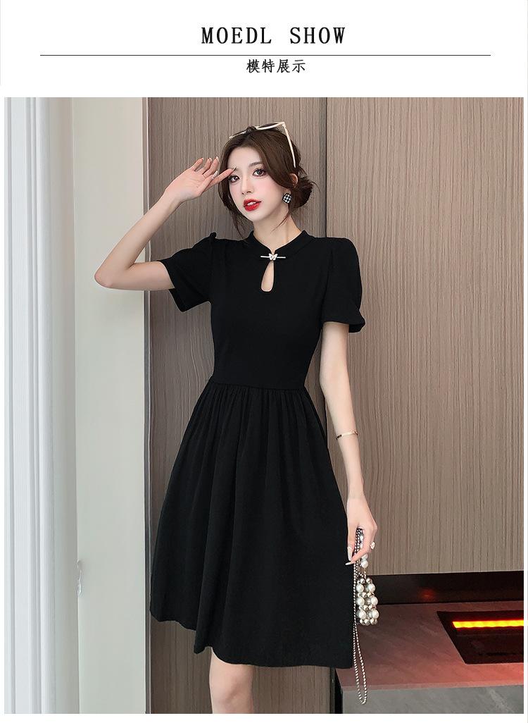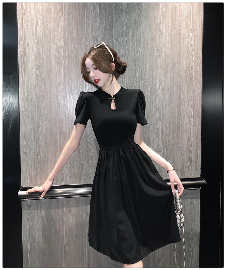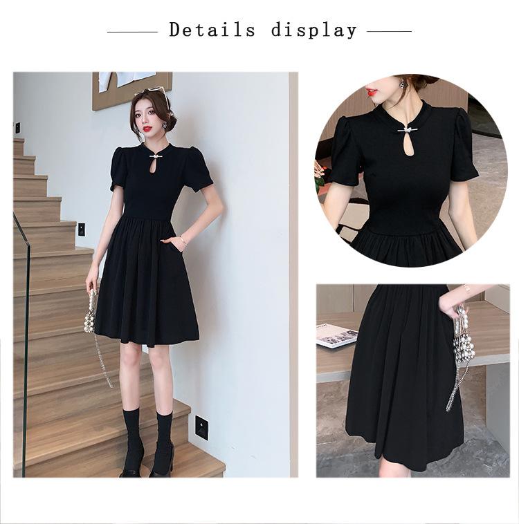 Nuevo estilo chino mejorado, vestido cheongsam versátil, elegante, pequeño vestido negro, chica pequeña y sexy, estilo francés Hepburn, mujer, verano nuevo