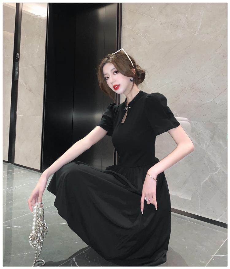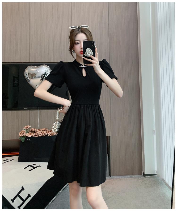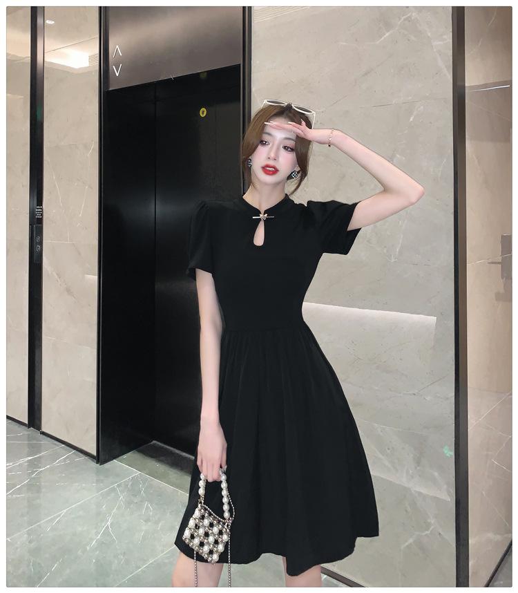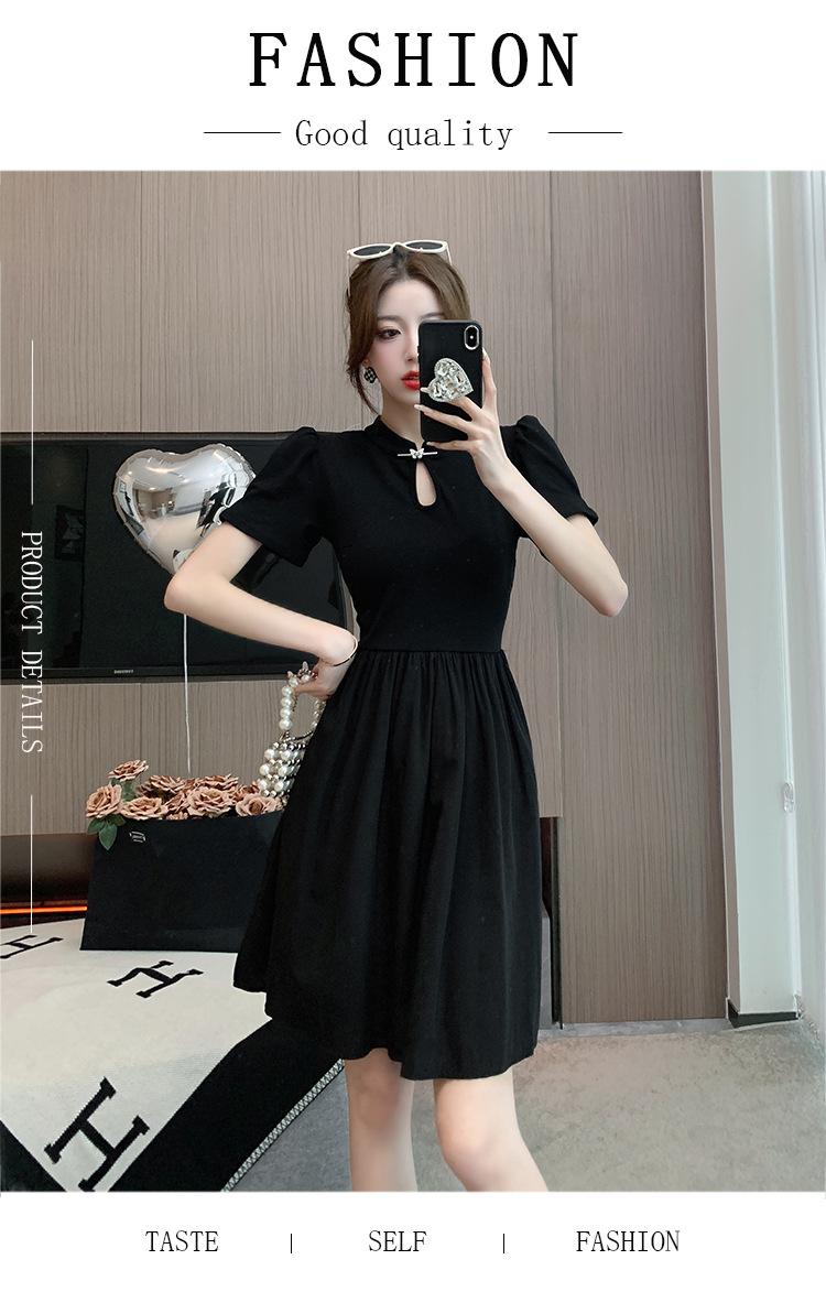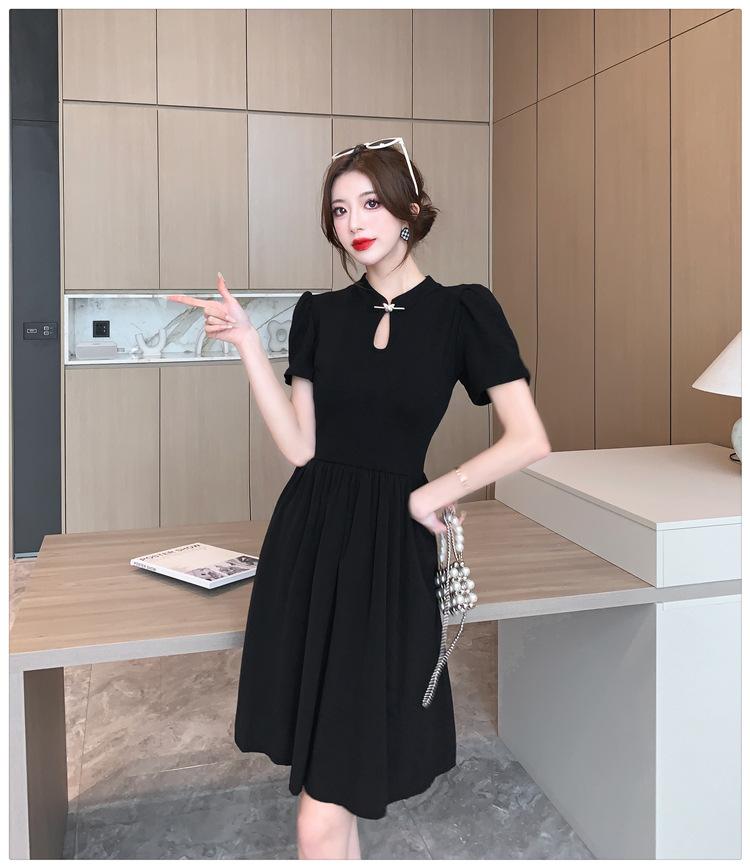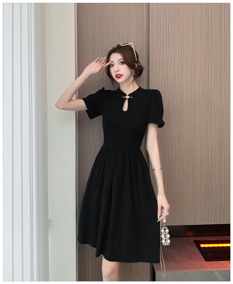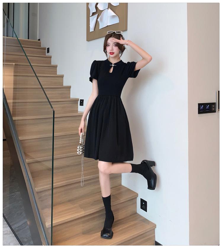 Nuevo estilo chino mejorado, vestido cheongsam versátil, elegante, pequeño vestido negro, chica pequeña y sexy, estilo francés Hepburn, mujer, verano nuevo
