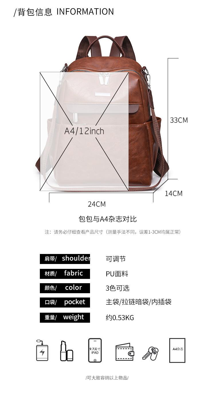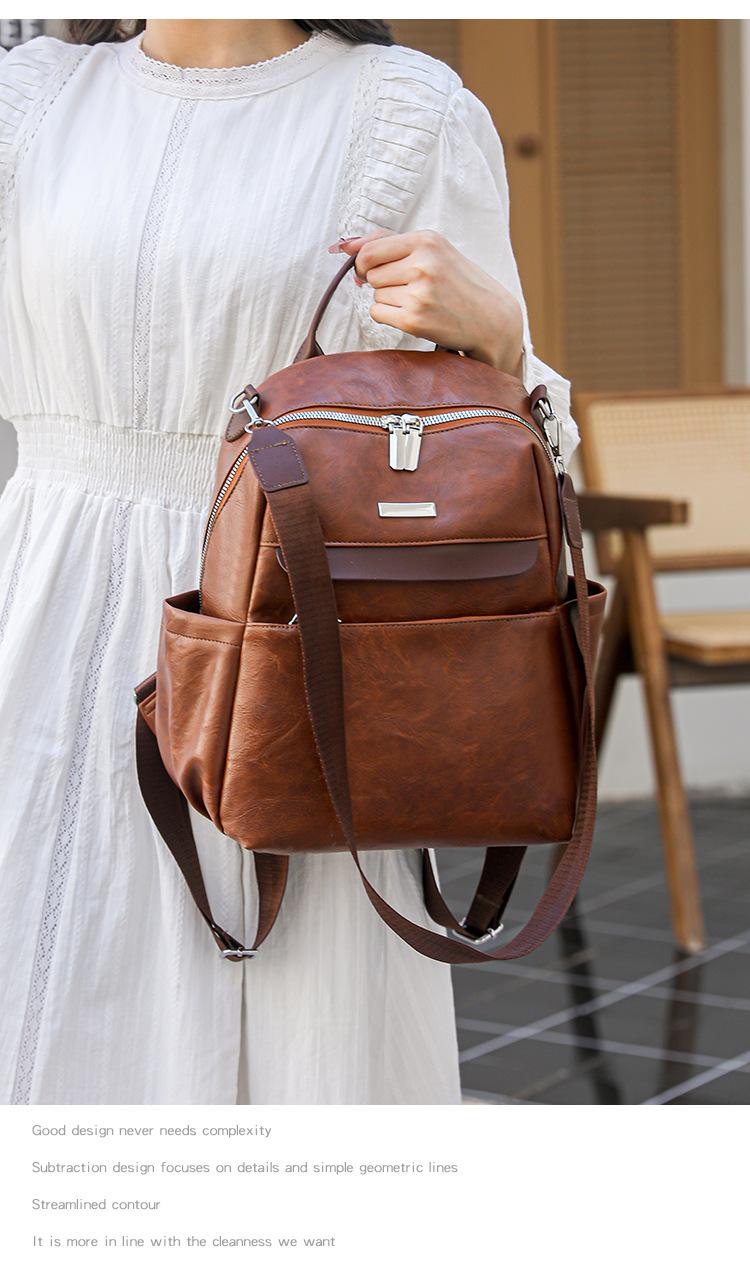 Mochila nueva para mujer, ligera, de cuero suave, para uso diario, de gran capacidad, para estudiantes, bolso cruzado sencillo, bolso de viaje informal.