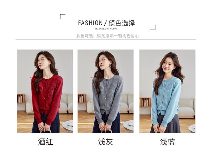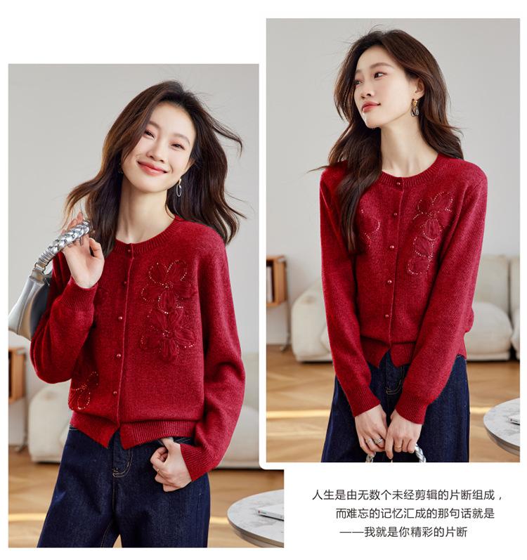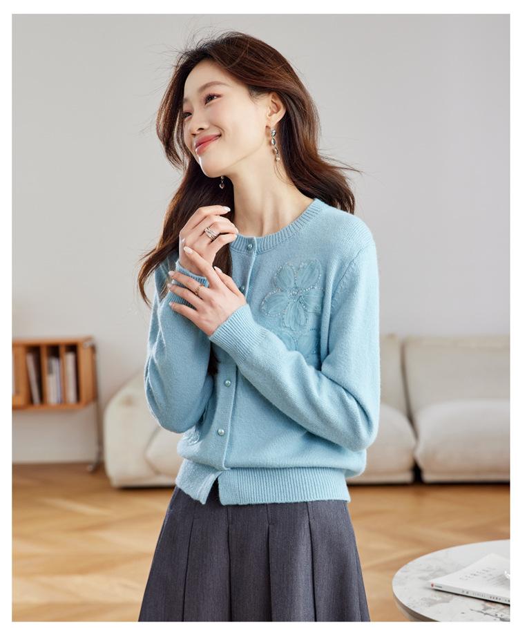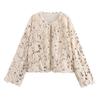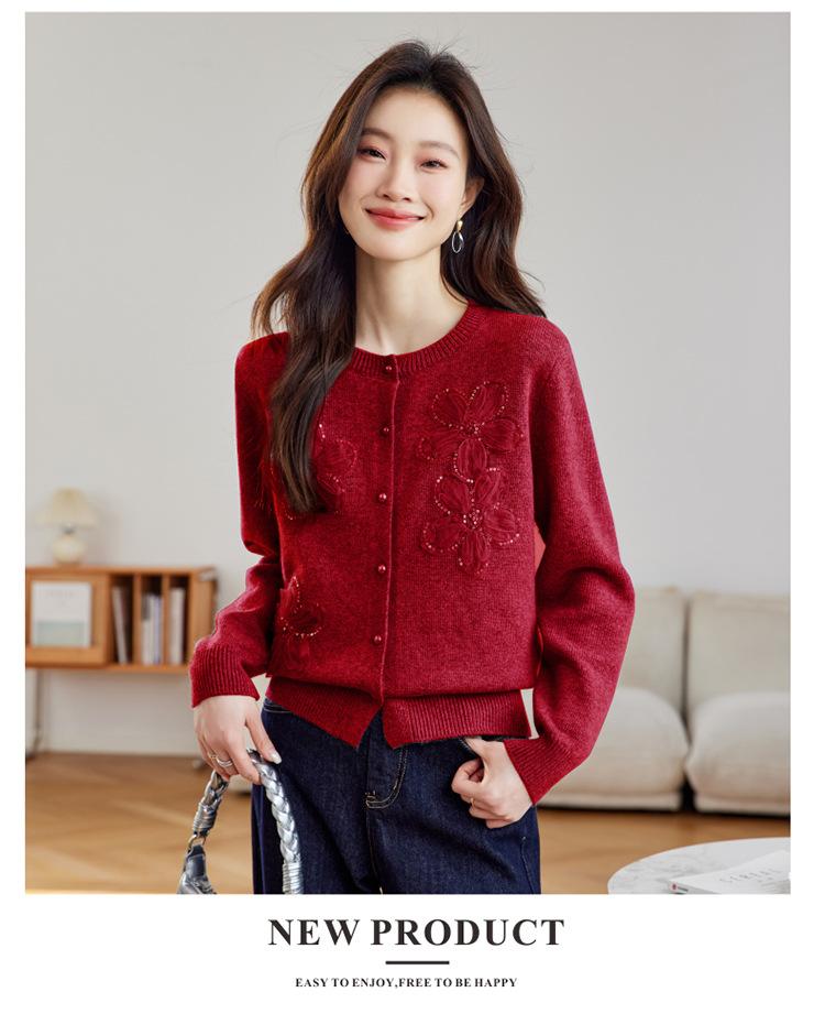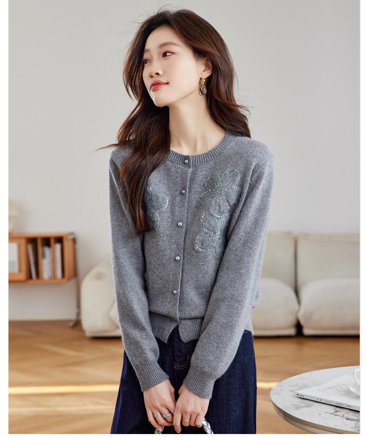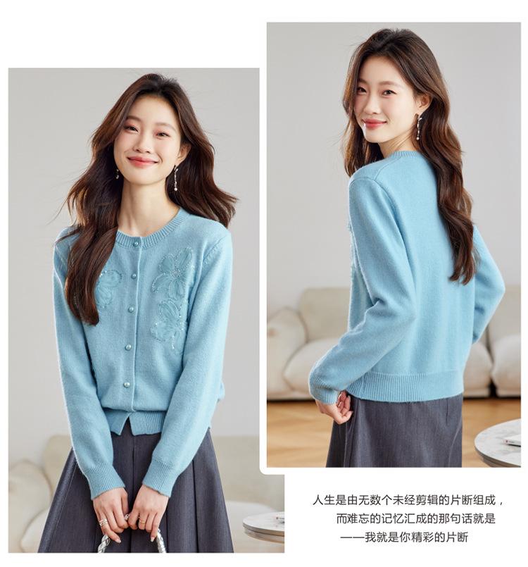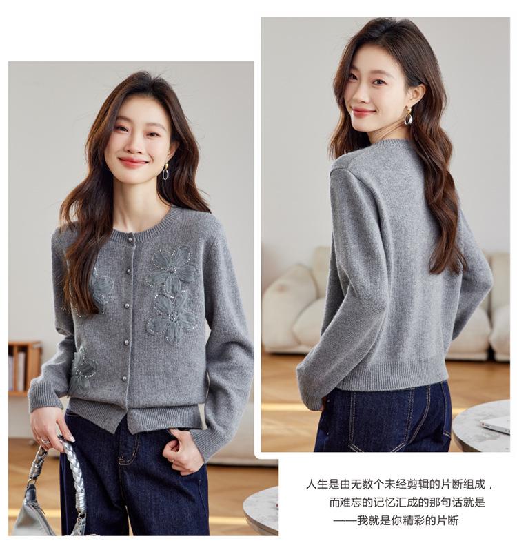 Cárdigan de Punto de Cuello Redondo con Encaje de Estilo Fragante Pequeño, Flor con Lentejuelas y Cuentas para Mujer 2025 Primavera y Verano Nuevo Estilo Chaqueta Suéter Exterior