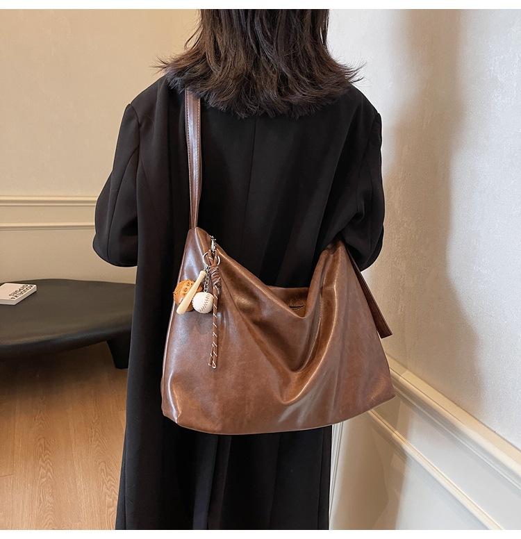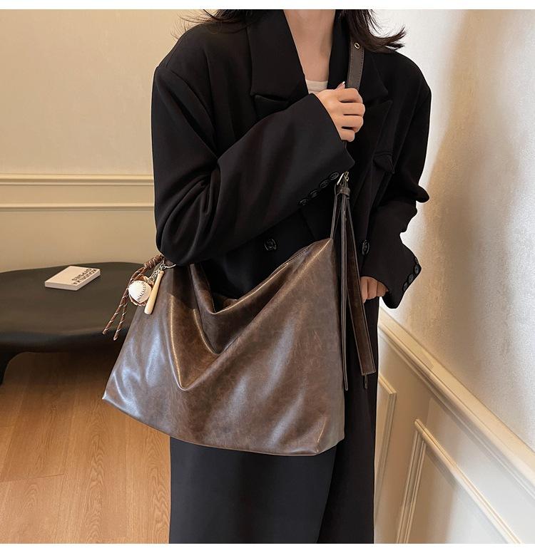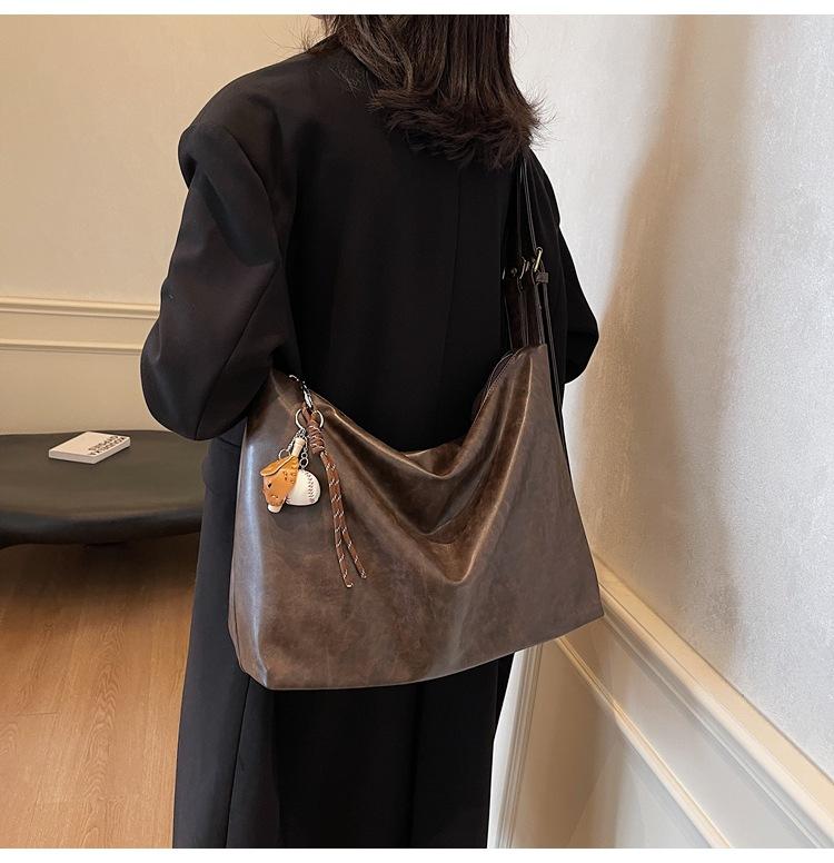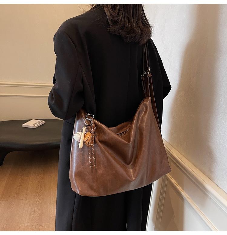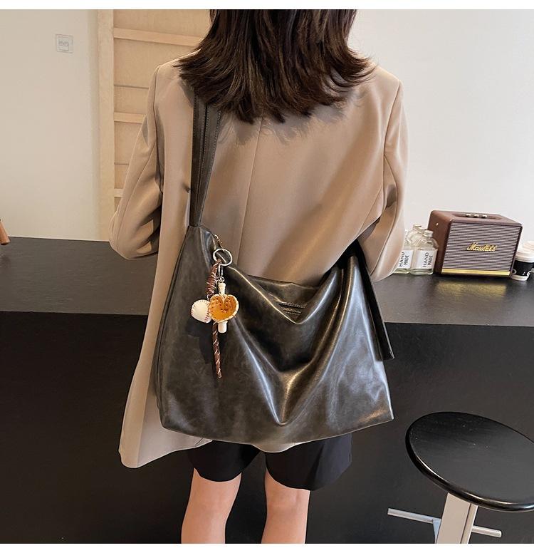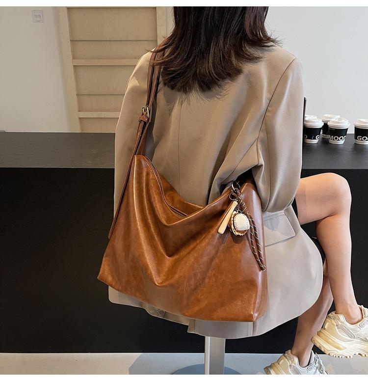 Bolso de mano de ocio para mujer, de color liso, de gran capacidad, 2025, nueva mochila cruzada suave de alta textura