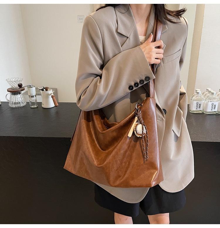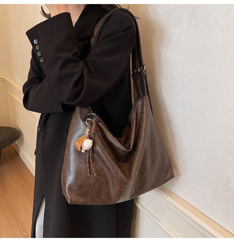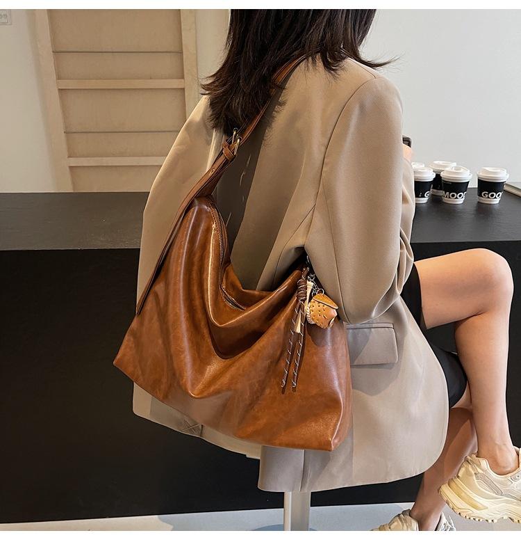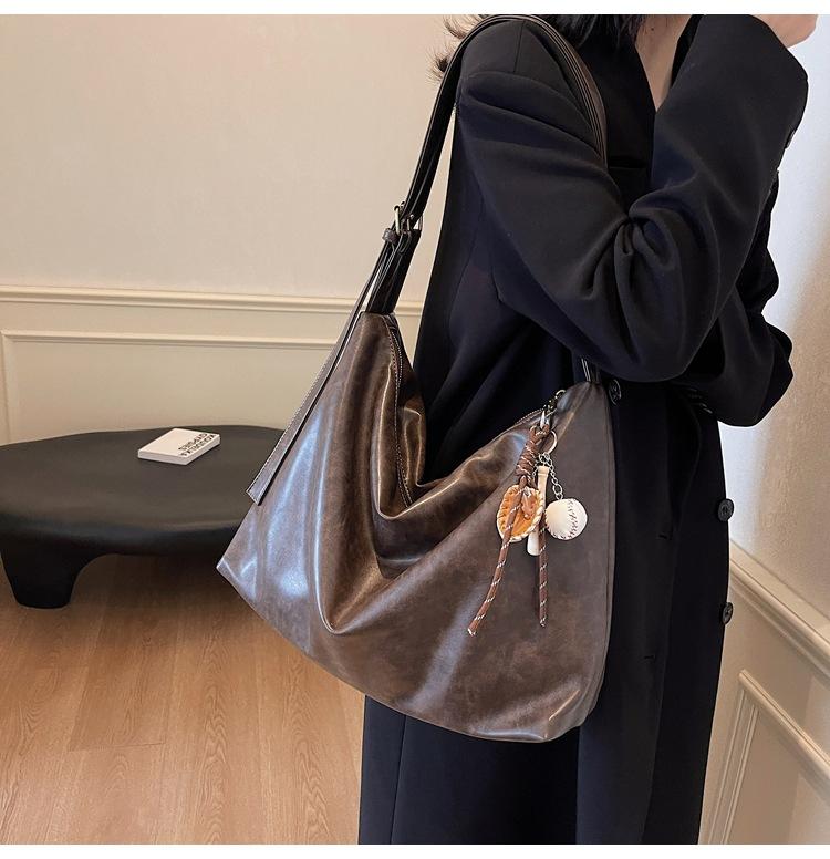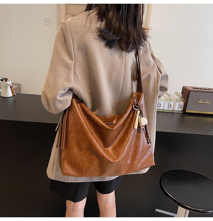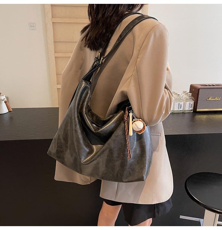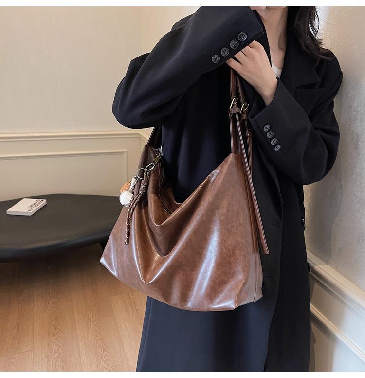Bolso de mano de ocio para mujer, de color liso, de gran capacidad, 2025, nueva mochila cruzada suave de alta textura