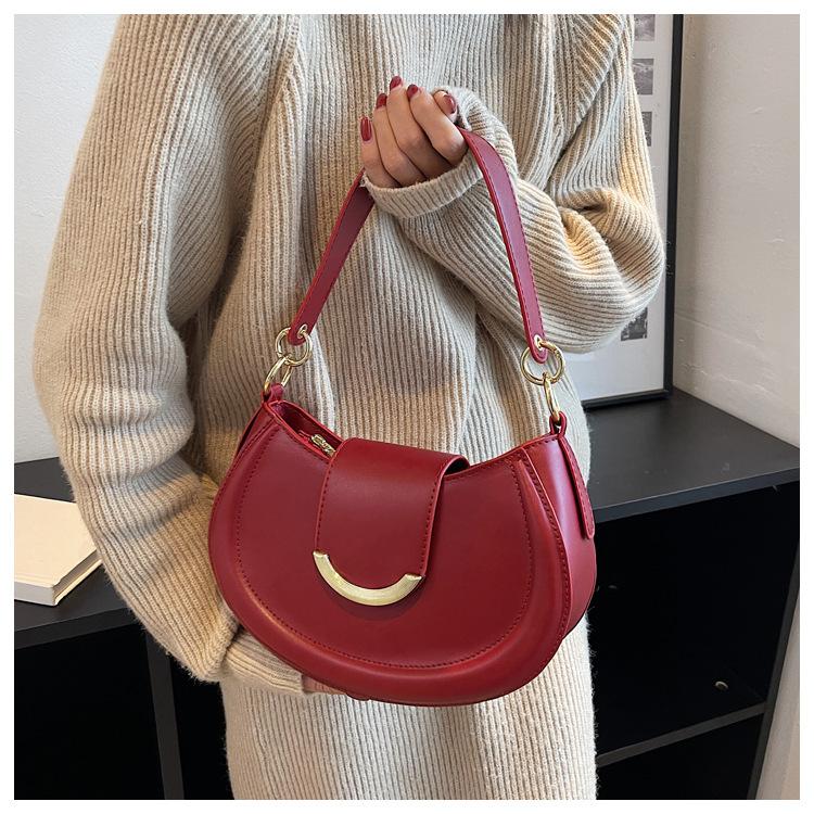 Bolso de mano semicircular de diseño liso, popular, de nicho, para llevar debajo del brazo, 2025. ¡Nueva tendencia! Bolso bandolera de hombro combinable, de color liso.