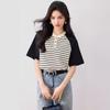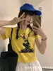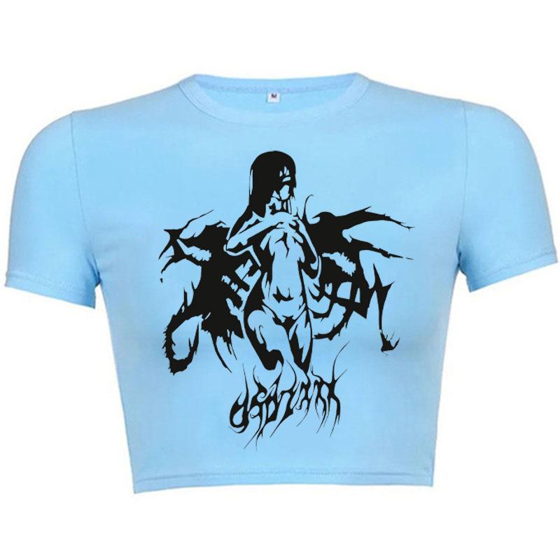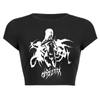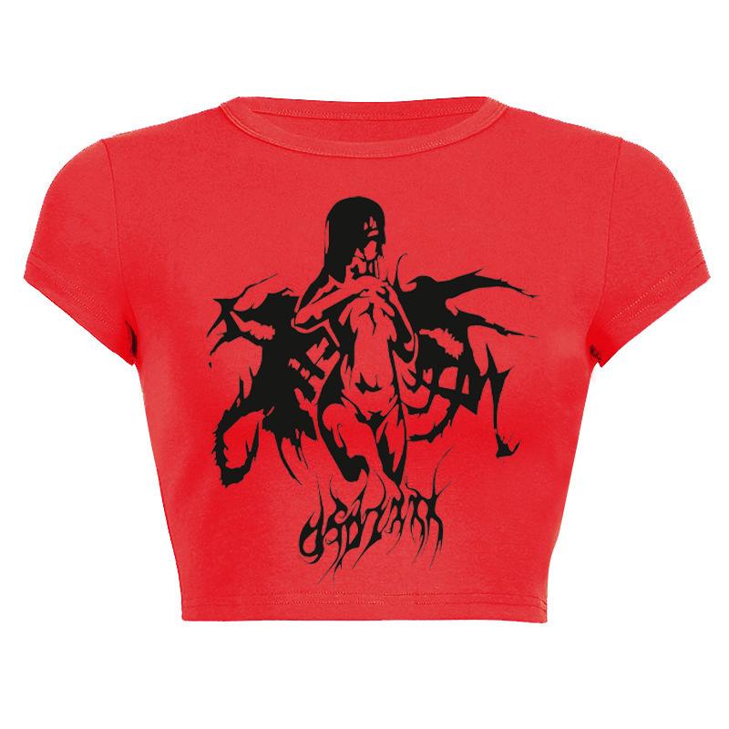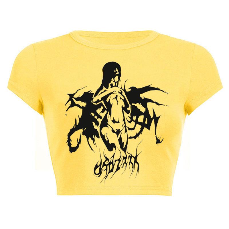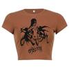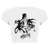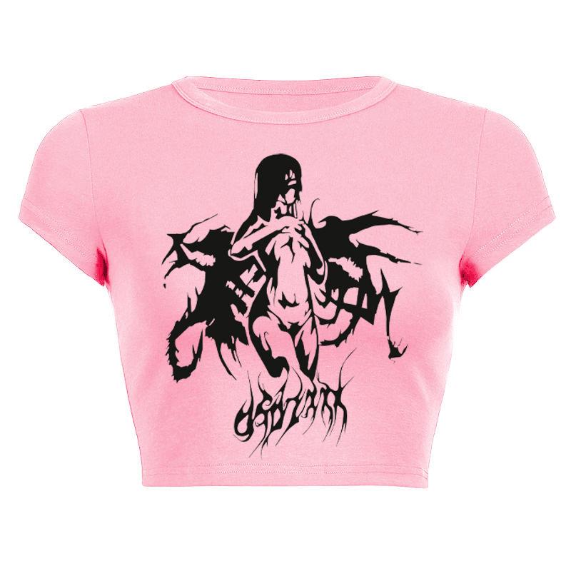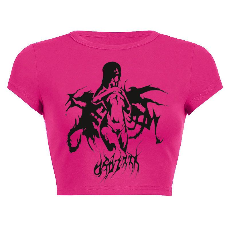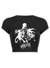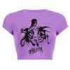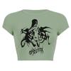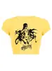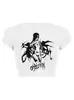 2025 Nuevo Top corto ajustado de manga corta con estampado de estilo vintage europeo y americano de estilo Spice Girl