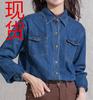 Chaqueta de mezclilla retro azul primavera y otoño nueva moda coreana solapa suelta casual lavada chaqueta top