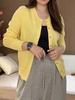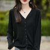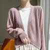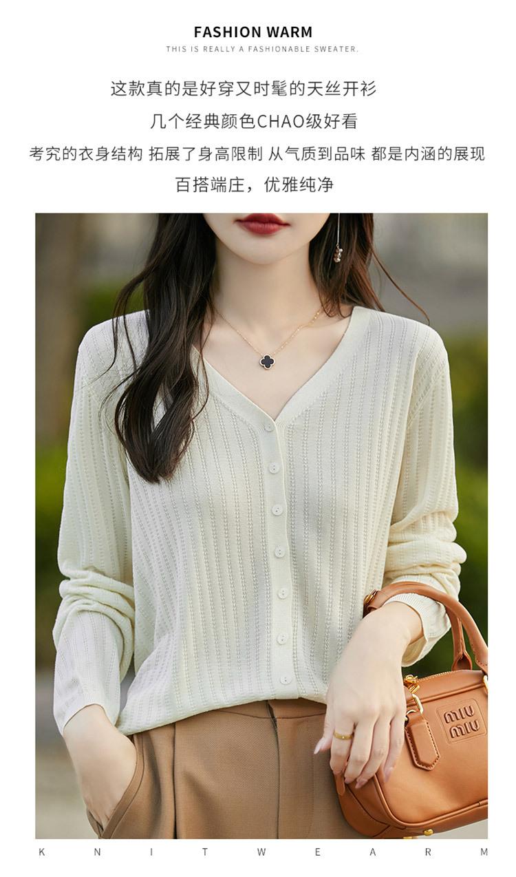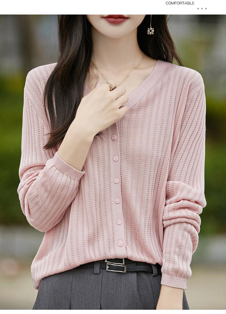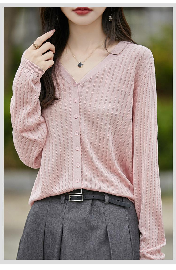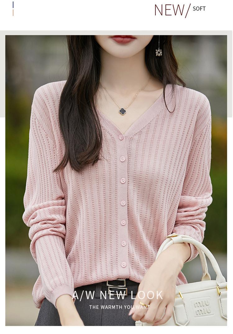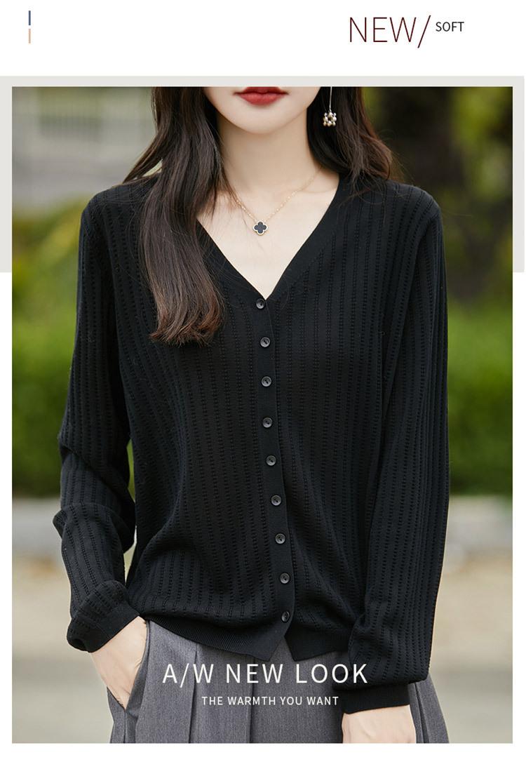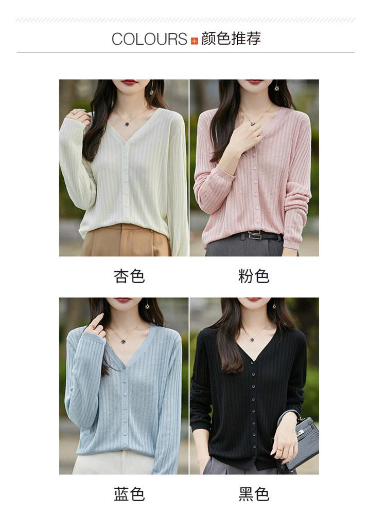 Cárdigan de Punto de Manga Larga de Seda Helada con Cuello en V para Mujer Transfronterizo Color Puro Calado Crochet Top Exterior Holgado Protección Solar
