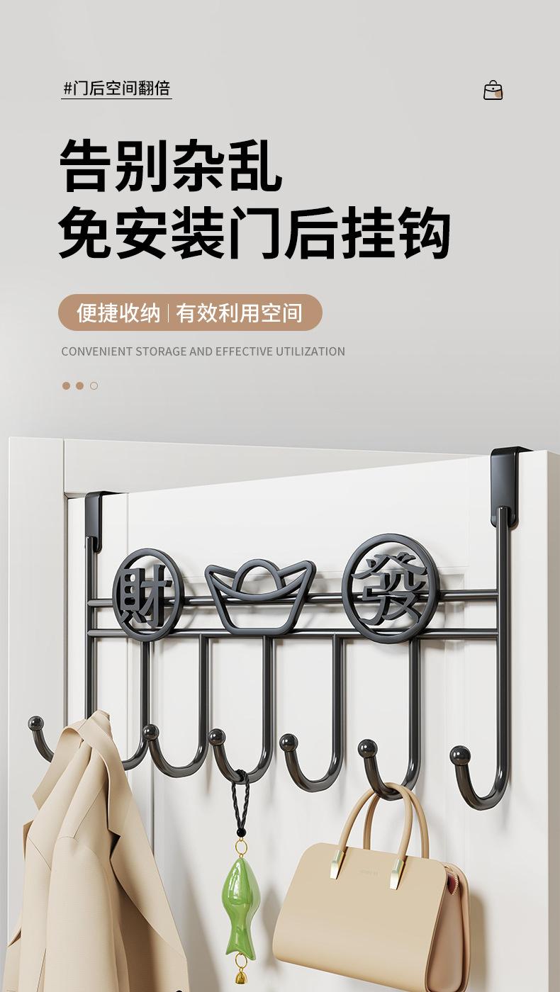 Fortune hanging door style seven hook black, Fortune hanging door style seven hook gold, Rich hanging door sty...