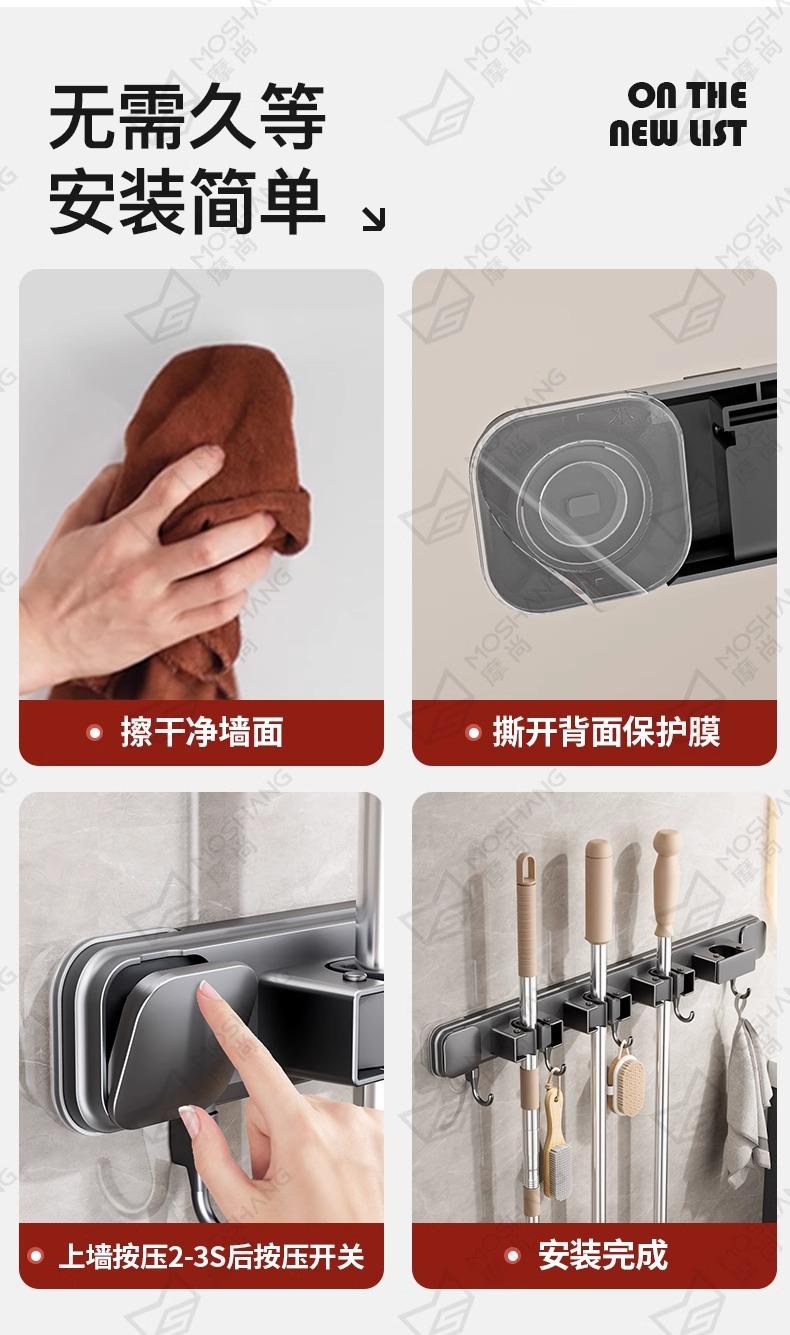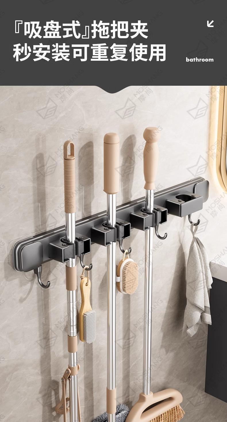 Trapeador con Ventosa para Inodoro, Clip para Colgar en la Pared, Gancho Sin Agujeros para Baño, Artefacto de Fijación con Hebilla, Colgador para Almacenamiento de Escoba
