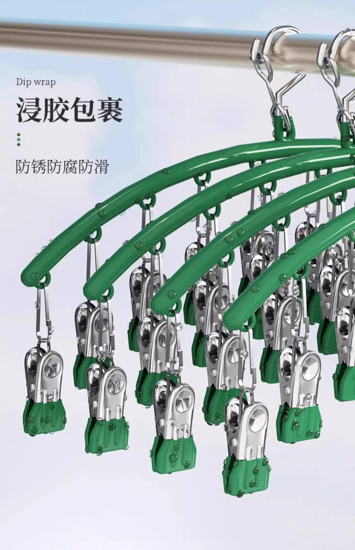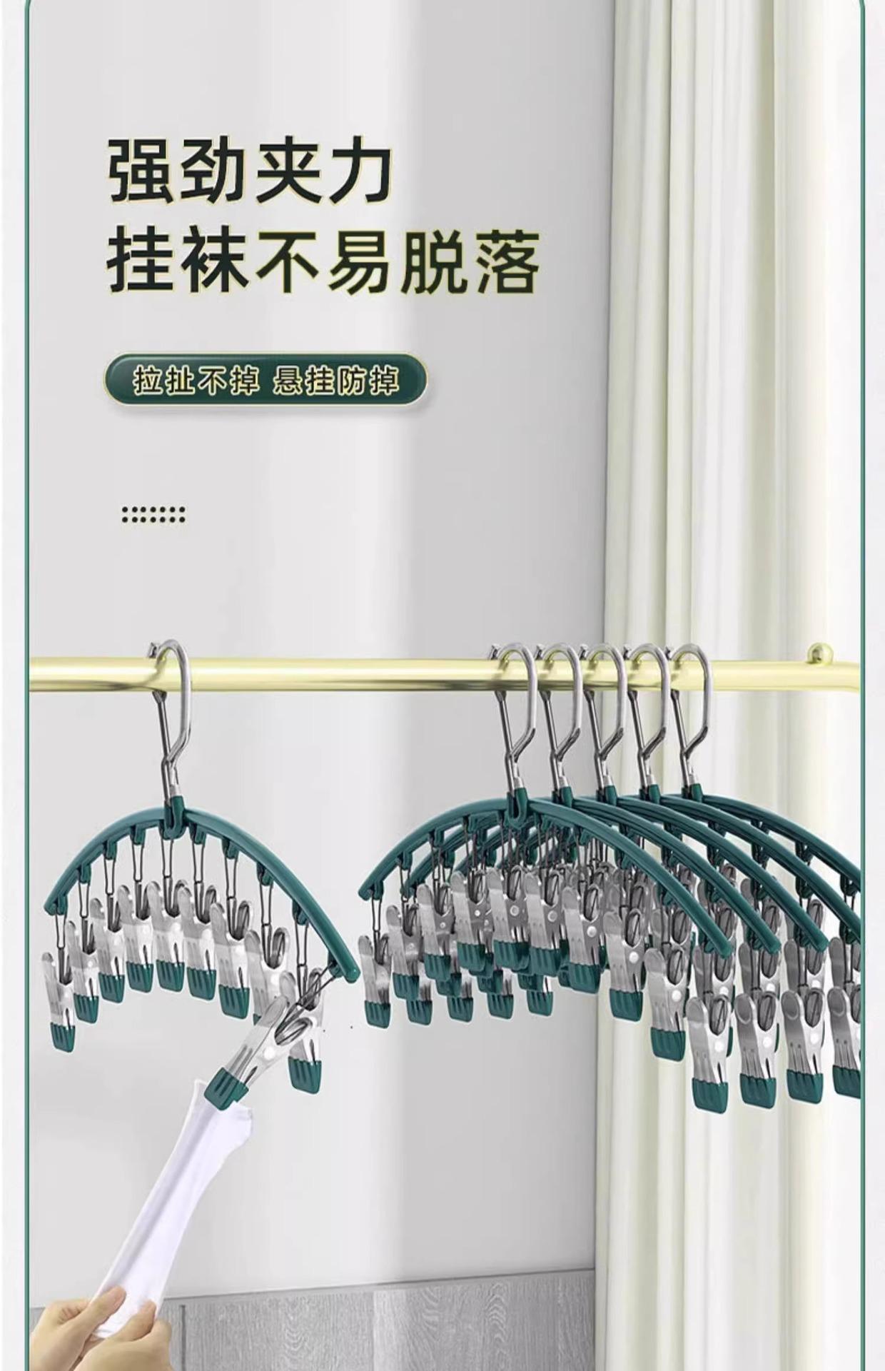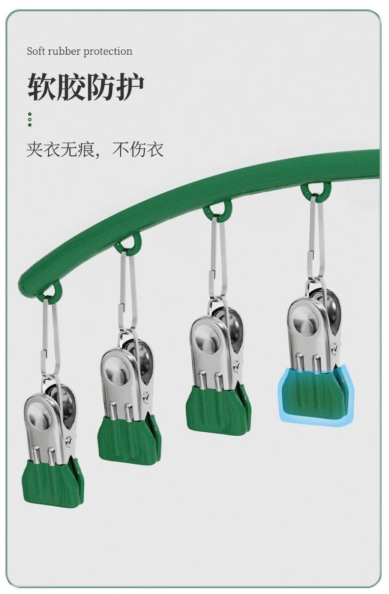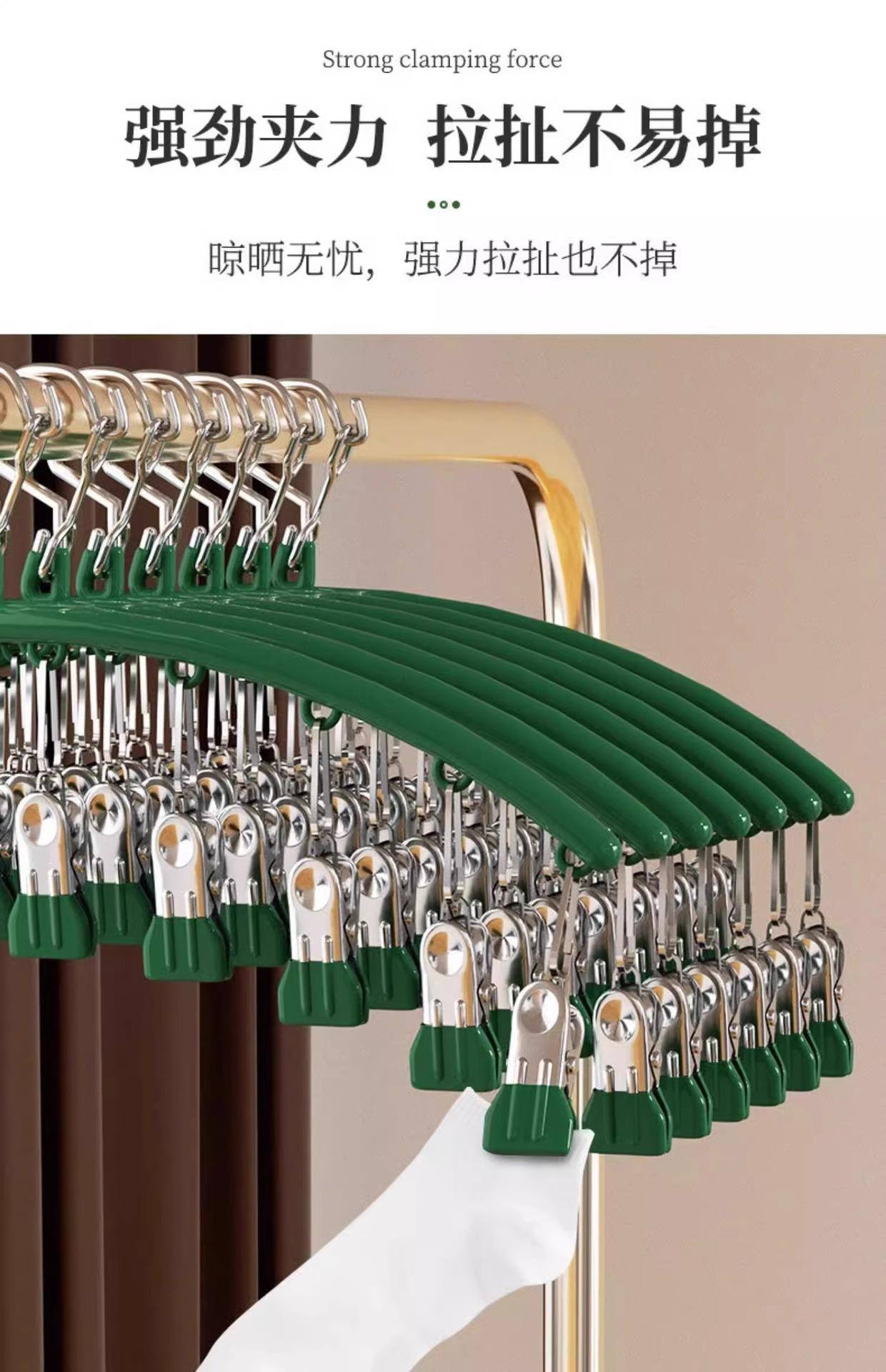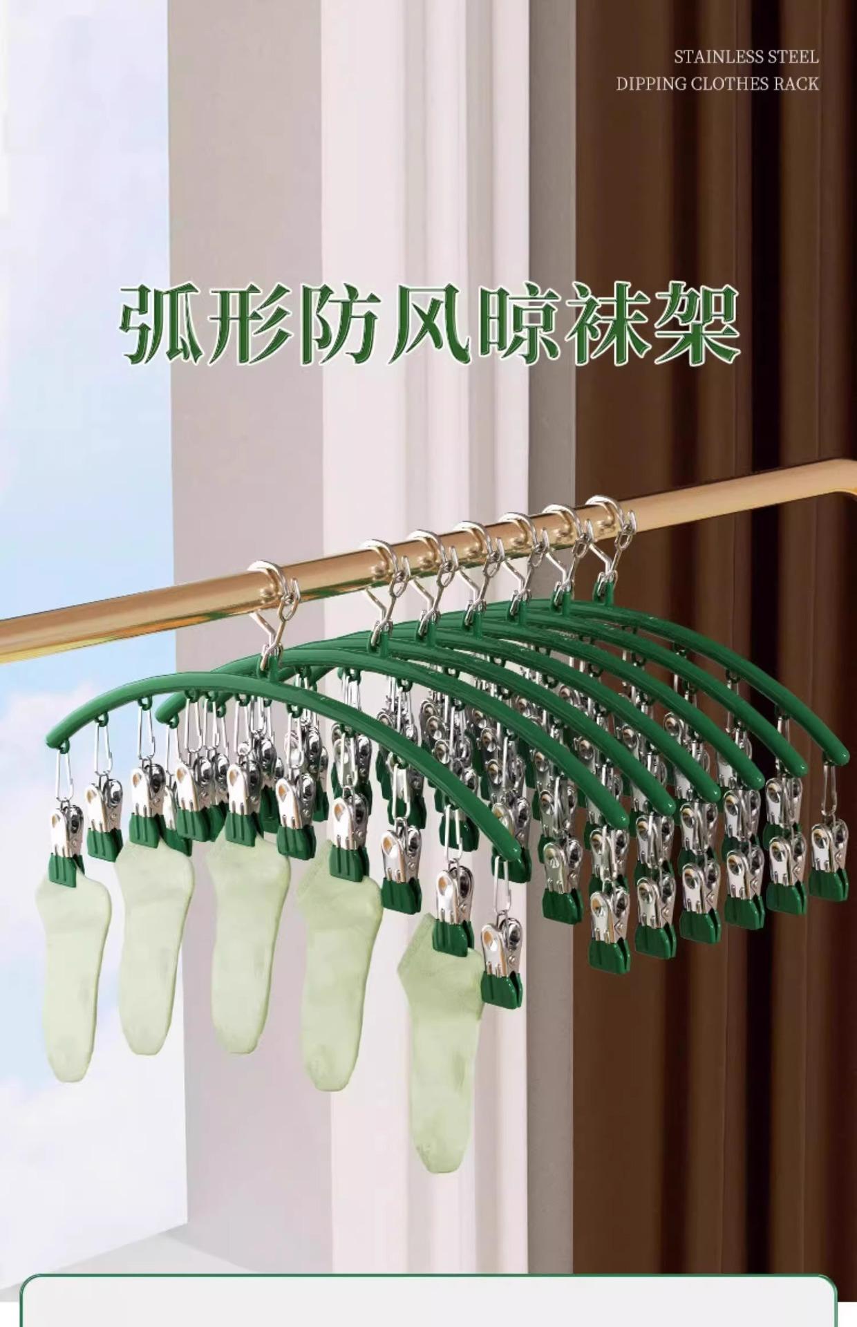Stainless steel curved ten-clip sock clip-light luxury green [1 pack]