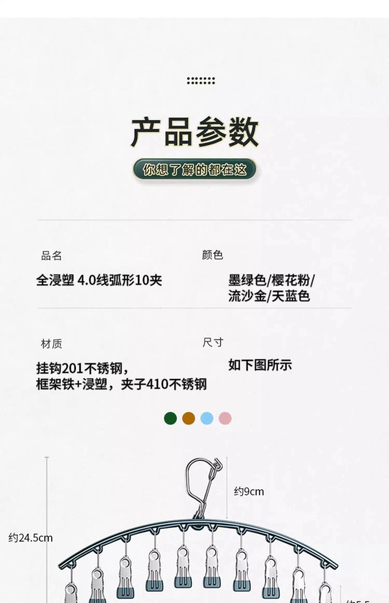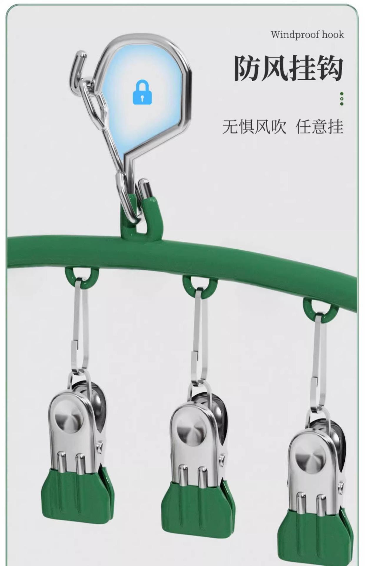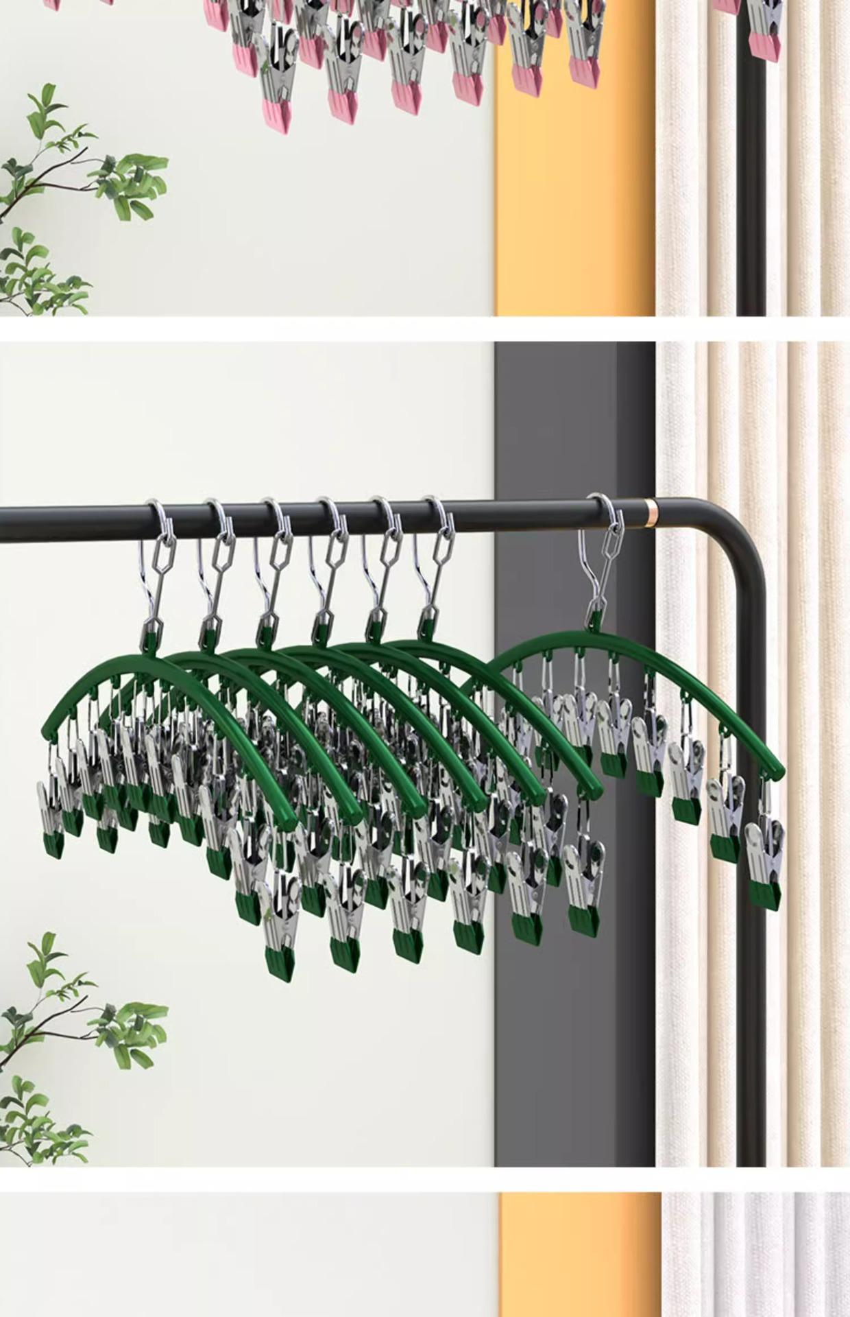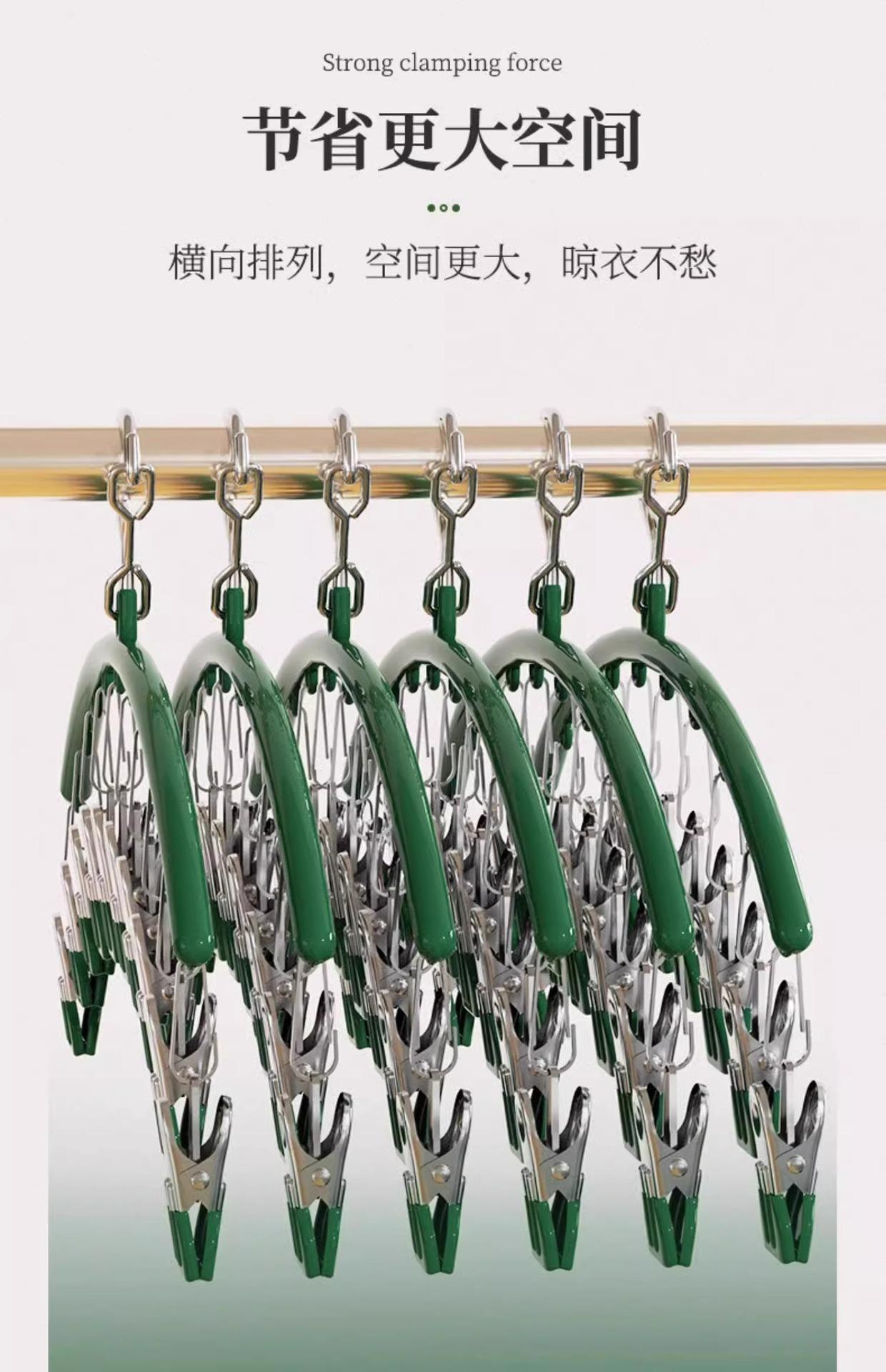 Stainless steel curved ten-clip sock clip-light luxury green [1 pack]
